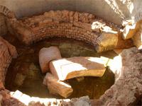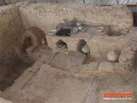 Nach Erläuterung des Hafentempels, besuchen wir eine wieder errichtete Herberge, das Amphitheater und die Handwerkerläden. Die Abwasserleitung und aktuelle Ausgrabungsschnitte werden ebenso angeschaut. Es ist Sturm und der Regen steht fast waagerecht in der Luft, was sehr schade ist.