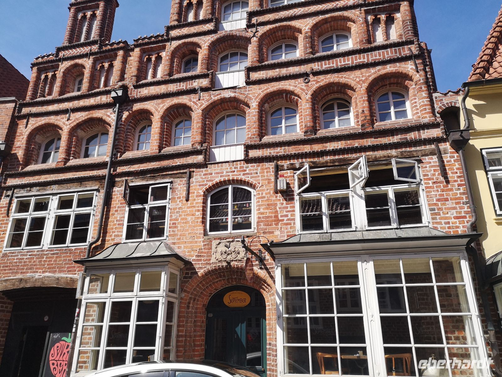 Gischa hat viel Anekdoten und interessante Fakten zu ihrer Stadt berichtet und führte uns an dem schwangeren Haus vorbei mit der rund ausgebeulten Seitenwand, erklärte uns wie es kam das das Rathaus eine neue Fassade bekam, obwohl die Stadtkasse leer war und weshalb der Baumeister der Johanneskirche sich freiwillig vom Kirchturm stürzte. Später lernte in dieser Kirche Sebastian Bach das Orgelspiel