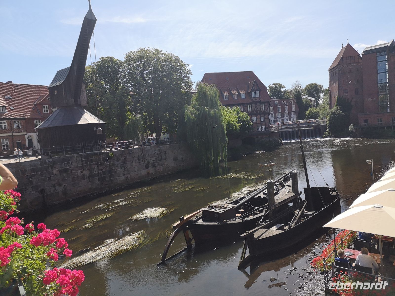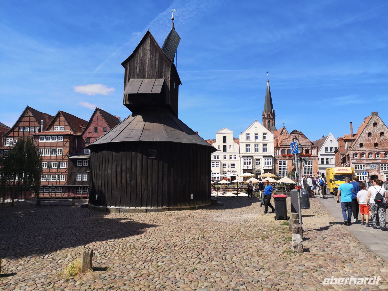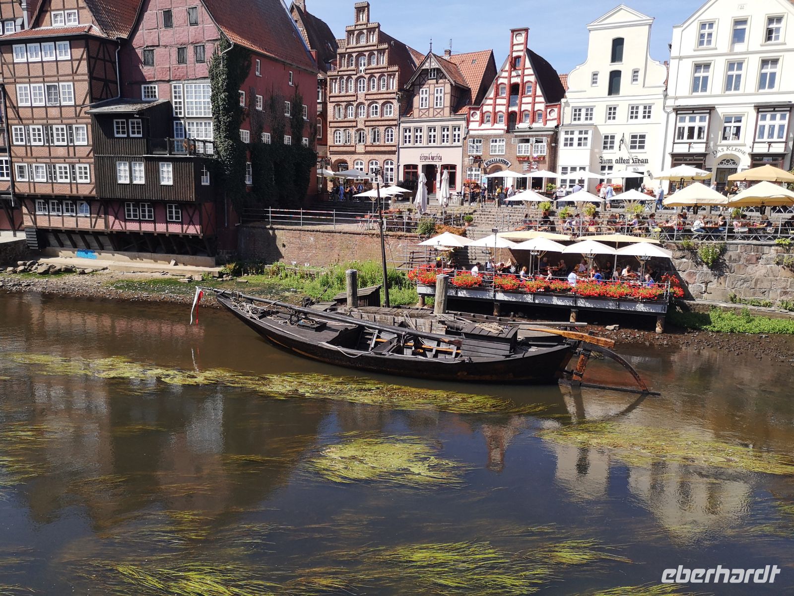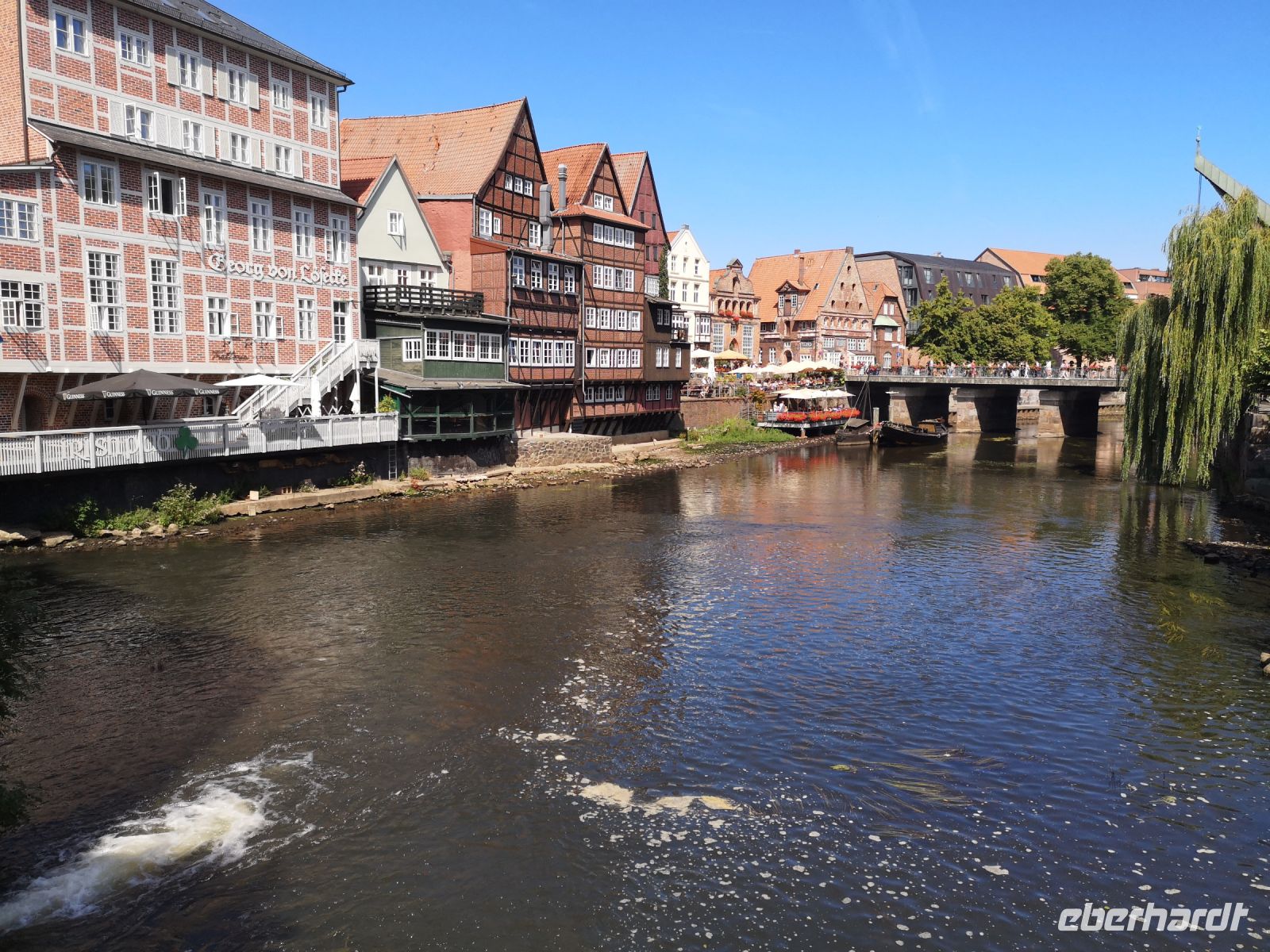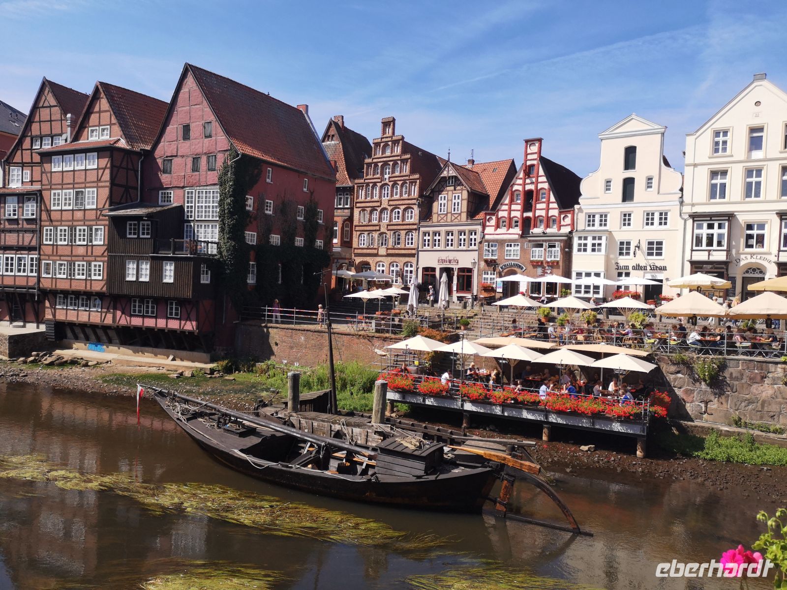 Der ursprüngliche Reichtum der Stadt, entstanden durch die große Salzsaline unter der Altstadt gelegen, kann man sehr gut an der Architektur der Häuser erkennen. Sehr viele haben einen Speicherraum oben in Dach, wohin sie die Waren mit Hilfe eines angebauten Seilzugs beförderten. Im Zentrum befindet sich noch der alte Hafen, von hier aus wurde das Salz mit wendigen Salzkähnen über die Ilmenau verschifft. Hier liegt auch der ehemalige Fischmarkt, der Stintmarkt. Ähnlich den Lachsen, schwimmen die Stinte Ende Februar in die Flussläufe, um im Sandboden zu laichen. Am Stintmarkt wurden sie gefangen und gehandelt.