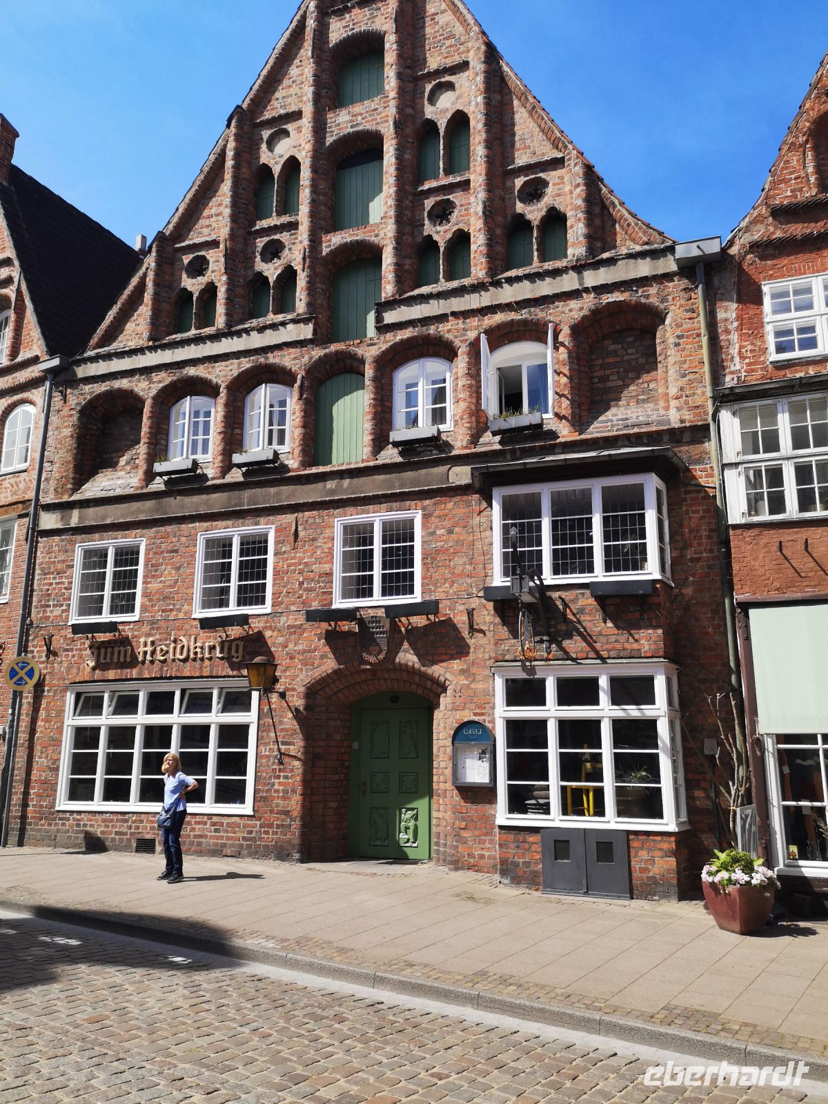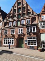 Zum Ende unserer Stadttour kommen wir an den alten Marktplatz, Am Sande. Hier wurden früher, vor der Stadt, auf sandigem Untergrund, die Waren der durchreisenden Händler „aufgestapelt“ und zum Verkauf angeboten. Heute ist der Platz umgeben von wunderschönen Treppengiebel Häusern und einer reichhaltigen Gastronomie. Nachdem der Stadtspaziergang doch anstrengend war, suchen wir uns einen schönen Biergarten mit schattigen Tischen und typisch norddeutschen Gerichten. Hier kann man endlich mal selber kosten wie den der Labskaus schmeckt.