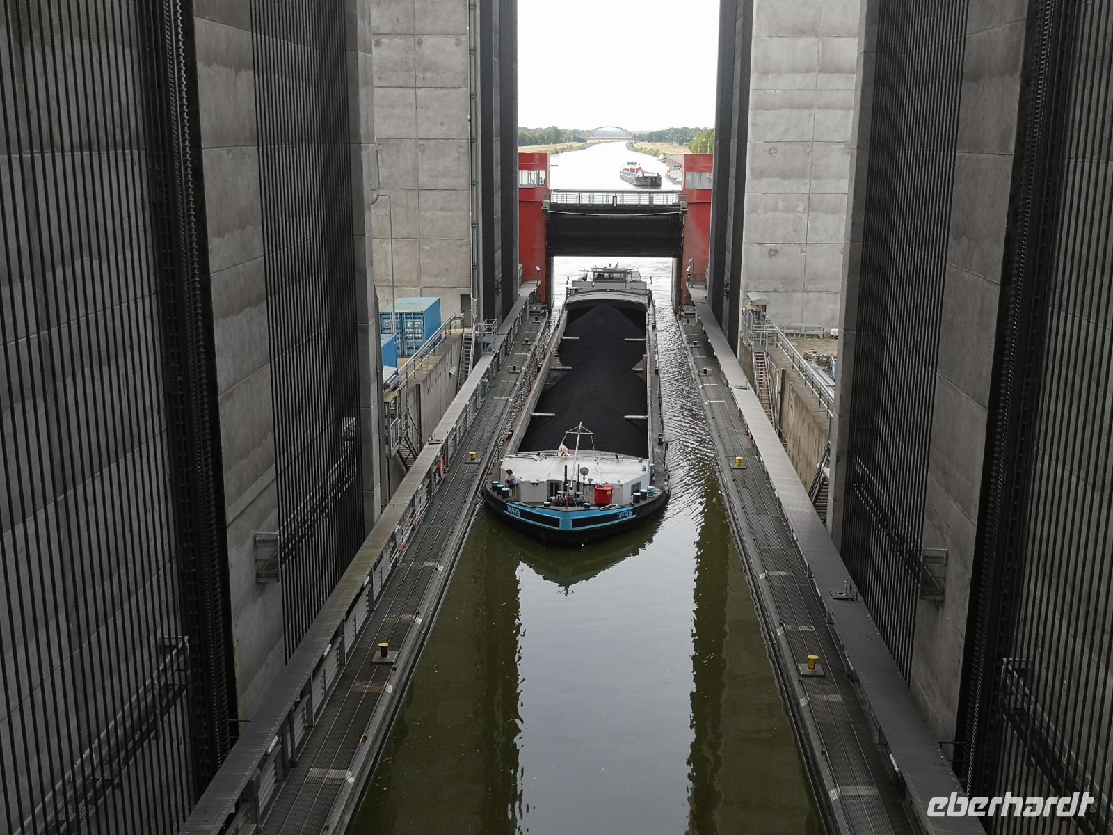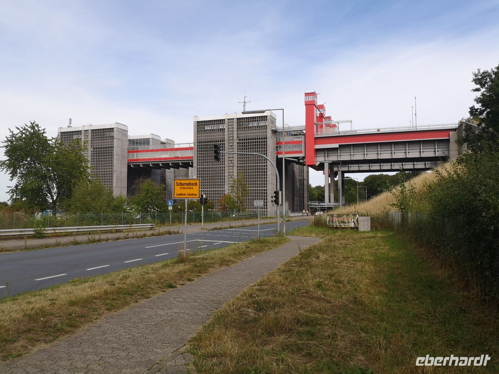 Nun noch einen weiteren kleinen Spaziergang zu unserem Bus der auf den Salzwiesen auf uns wartete. Auf dem Rückweg zu unserem Hotel machten wir noch einen kleinen Abstecher zu dem imposanten Schiffshebewerk in Scharnebeck, das selbst große Lastkähne um 38 m anhebt, um sie auf das Wasserniveau des Elb-Seitenkanals zu heben. Wir konnten mit dem Bus an die Hebewerke heranfahren, so dass wir schon vom Bus aus, einen schönen Einblick in die Anlage bekamen.
