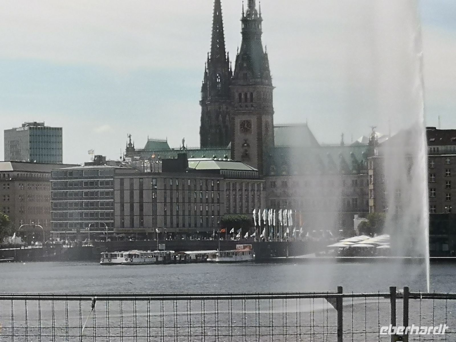 Erst ging es vorbei am Alsterpark mit schönem Blick über die Innenalster auf die Skyline von Hamburg mit den drei Kirchen, St.Jacobi-, St.Katherinen- und der St. Michaelis Kirche.