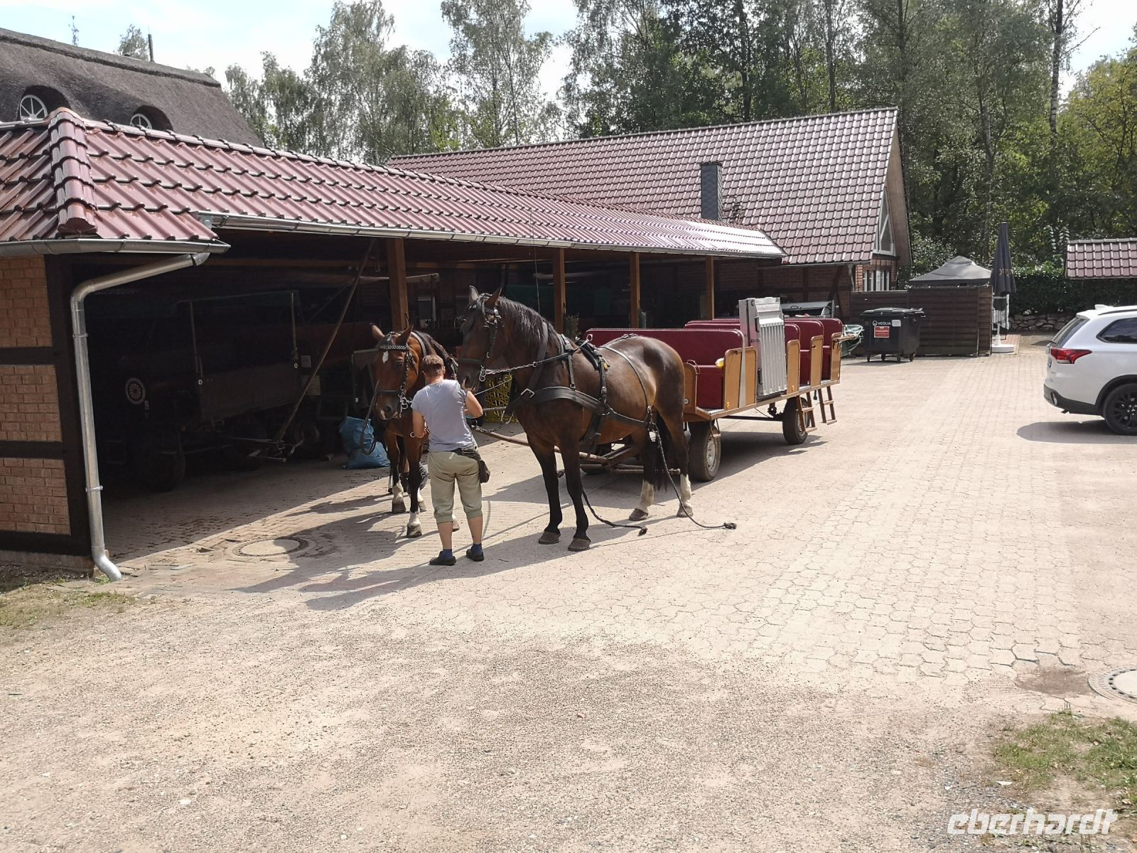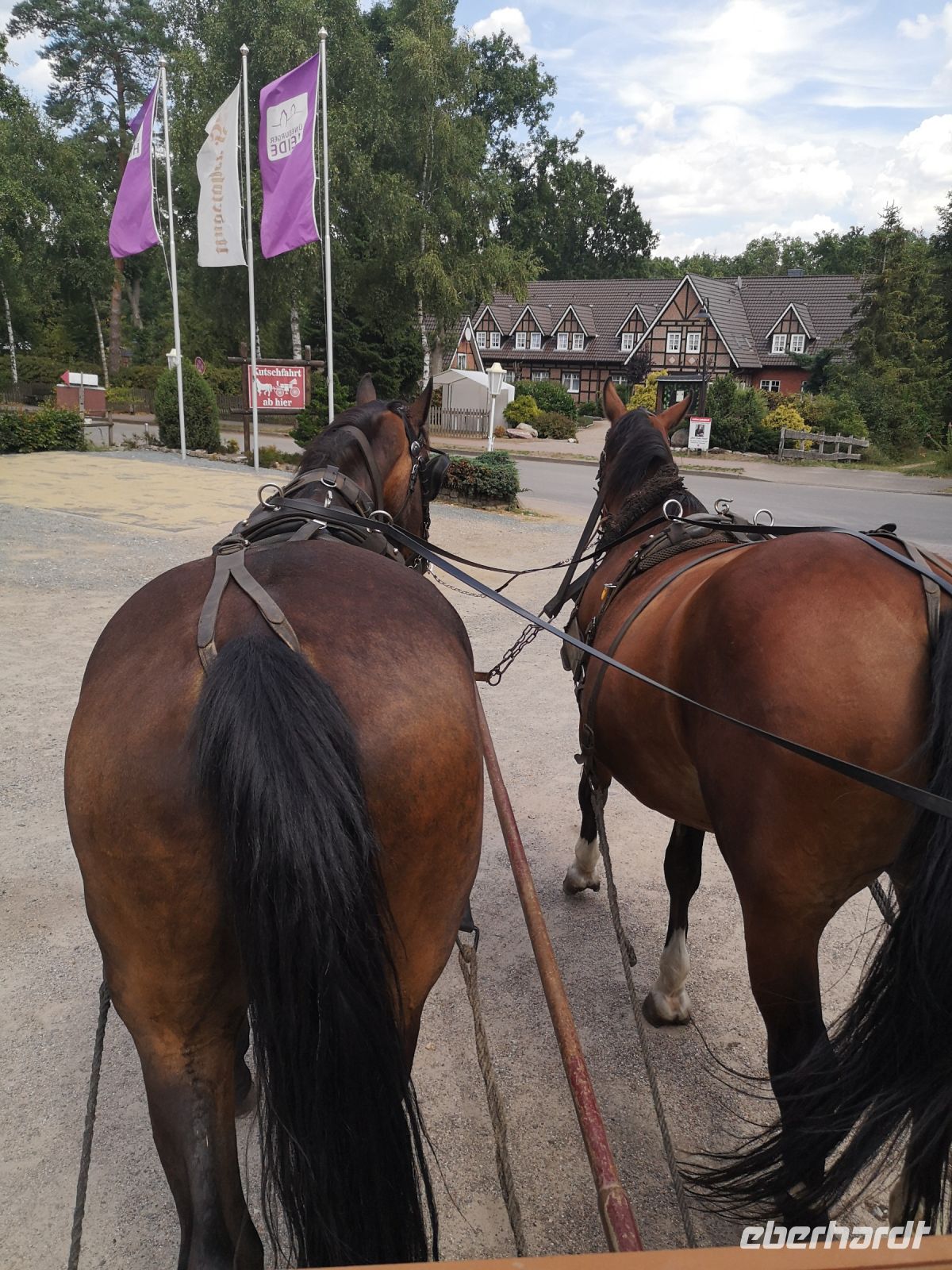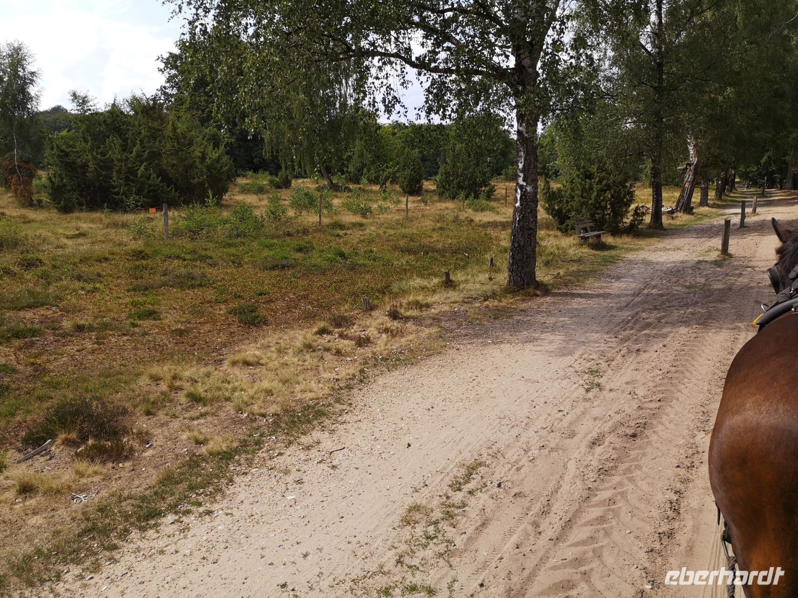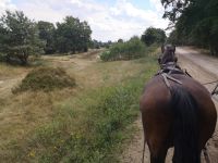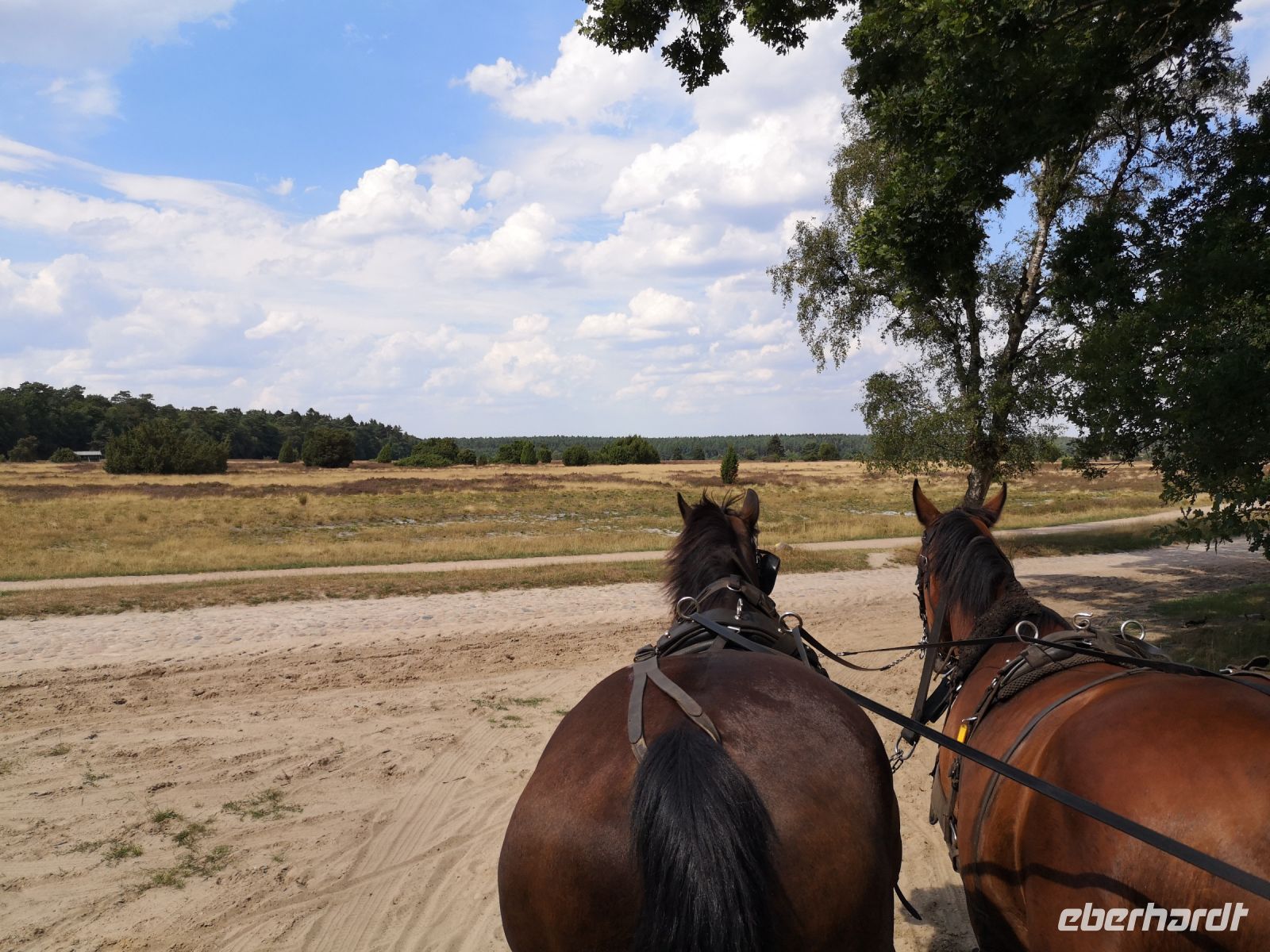 Die beiden Pferde hatten noch viel Kraft und wollten uns gern im Galopp über die sandigen Wege der Heide ziehen. Unser freundlicher Kutscher Ohle hatte die Rösser aber fest im Griff und zügelte ihr Temperament erfolgreich.