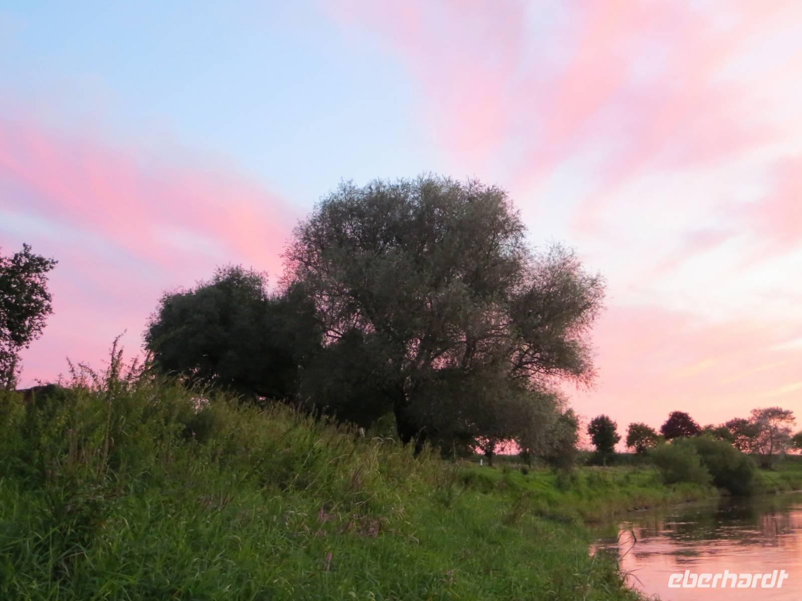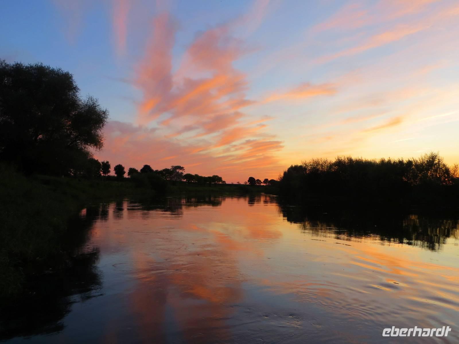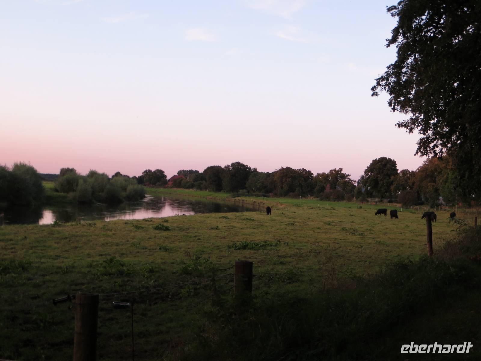 Pünktlich 8.00 Uhr starten wir unsere Reise im strömenden Regen in Dresden. Auch am Flughafen Leipzig sieht es trübe aus. Die Zusteiger warten unter dem Dach der Empfangshalle, keiner wird nass. Nach kurzem Stopp geht es weiter, vorbei an Leipzig, Halle und Magdeburg erreichen wir Irxleben, wo uns noch zwei Gäste erwarten. Wir nutzen die Pause für einen kleinen Snack am Bus, und siehe da, unglaublich, die Sonne kommt hinter den Wolken hervor, fortan bleibt sie unsere Begleiterin. Wir verlassen nach Helmstedt die Autobahn und fahren an Wolfsburg vorbei über Gifhorn nach Celle. So bekommen wir einen ersten Eindruck von der Heide, denn Gifhorn ist das Tor zur Südheide. In Celle haben wir einen Aufenthalt zum Bummel durch die schöne Altstadt mit ihren historischen Fachwerkbauten aus dem 15. und 16. Jahrhundert. Einige Gäste spazieren bis zur Synagoge, andere wollen lieber bei Kaffee und Kuchen in der Sonne sitzen. Am Spätnachmittag fahren wir ins liebliche Allertal. Das Land-gut-Hotel Allerhof soll für die nächsten Tage unsere Heimstatt sein. Neugierig erkunden wir die schöne Umgebung. Das Hotel ist direkt an der Aller gelegen, ein schöner Park mit Springbrunnen und alten Bäumen lädt zum Spazieren oder Ausruhen ein. Die Abendstimmung am Fluß ist an Romantik nicht zu überbieten! Die untergehende Sonne bietet ein letztes prächtiges Farbenspiel, bevor sich die Nacht über die ruhige Landschaft senkt.