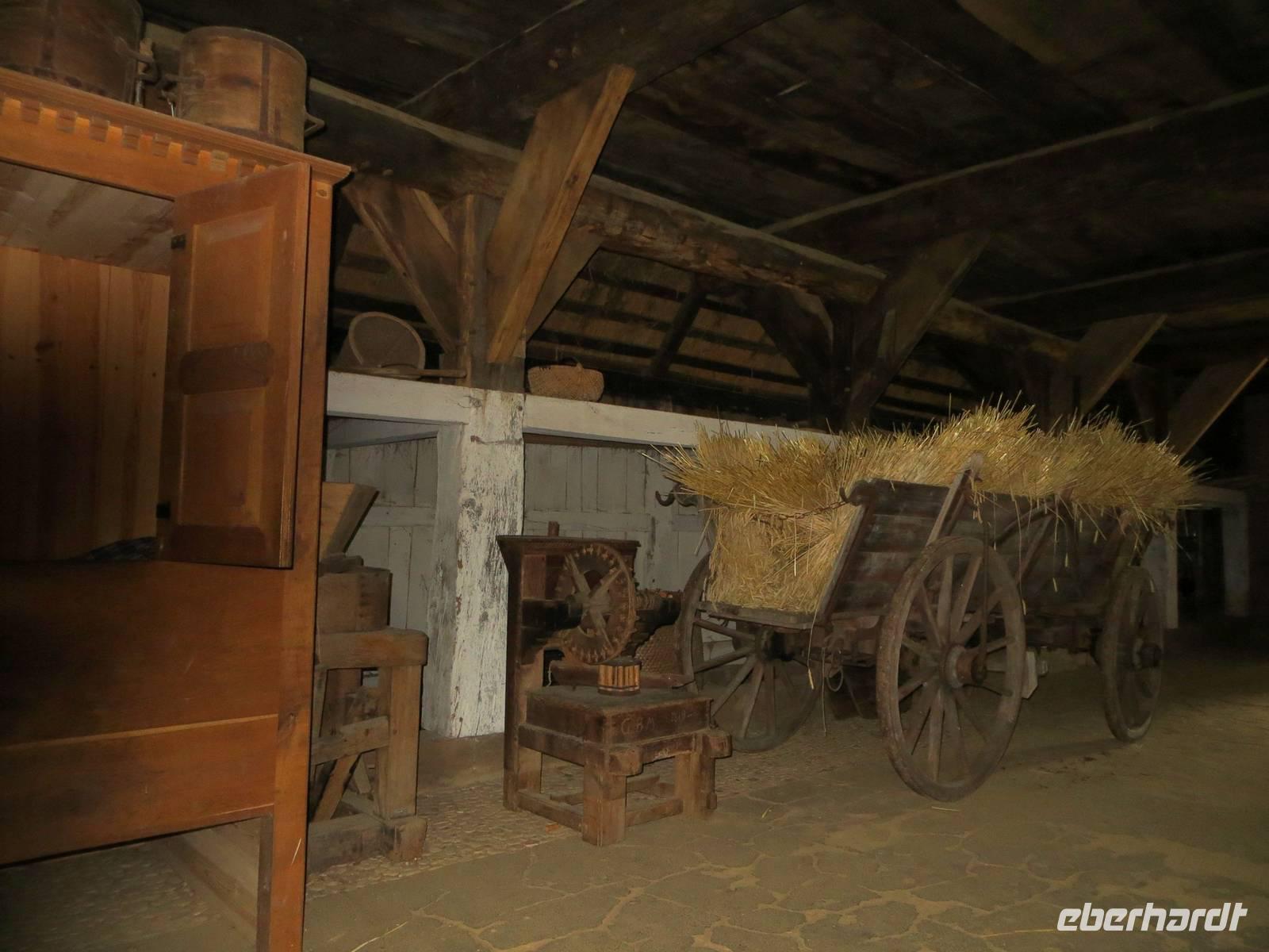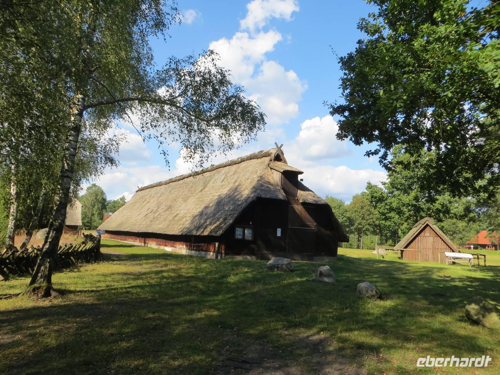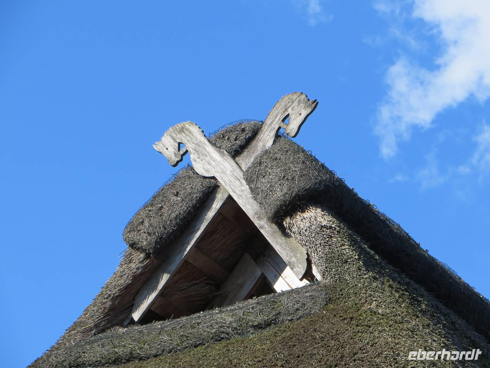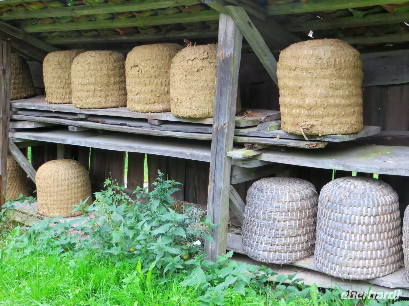 Nochmals wollen wir Einblick nehmen in die Geschichte und Kultur der Lüneburger Heide. Nirgendwo besser geht das, als in einem Museumsdorf. Hösseringen bietet zwischen Wäldern und Wiesen im Tal des Heideflüsschen Hardau eine Idylle vergangener Zeiten In ruhiger abgeschiedener Lage, wo heute noch die Straßen enden, liegt das Haufendorf mit Bauerngehöft, Schmiede, Ställen und Bauerngärten. Beim Rundgang durch das Freilichtmuseum unter fachkundiger Führung wird schnell klar, dass das Bauernleben keine Idylle war, sondern harte Arbeit und karges Auskommen. Die Heide zeigt heute ein trübes Gesicht, Nieselregen begleitet unseren Rundgang, gutes Pilzwetter, wir finden gleich drei, lassen sie aber für die nächsten Besucher stehen.