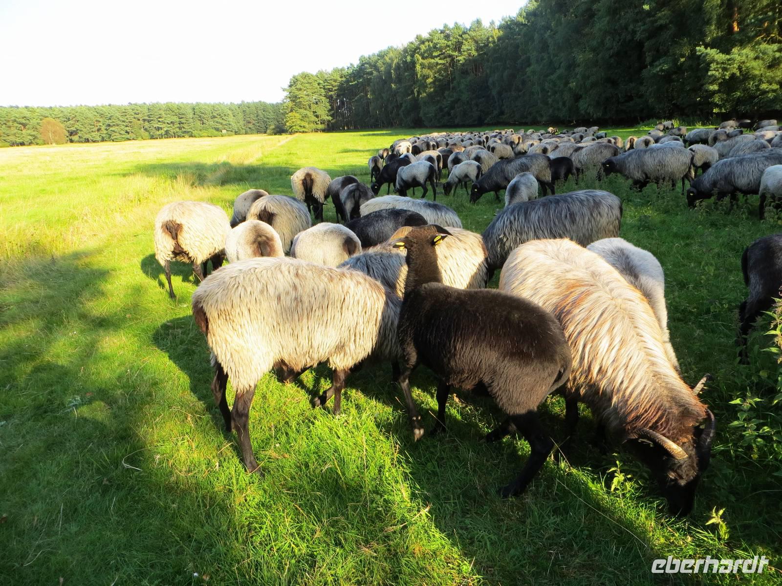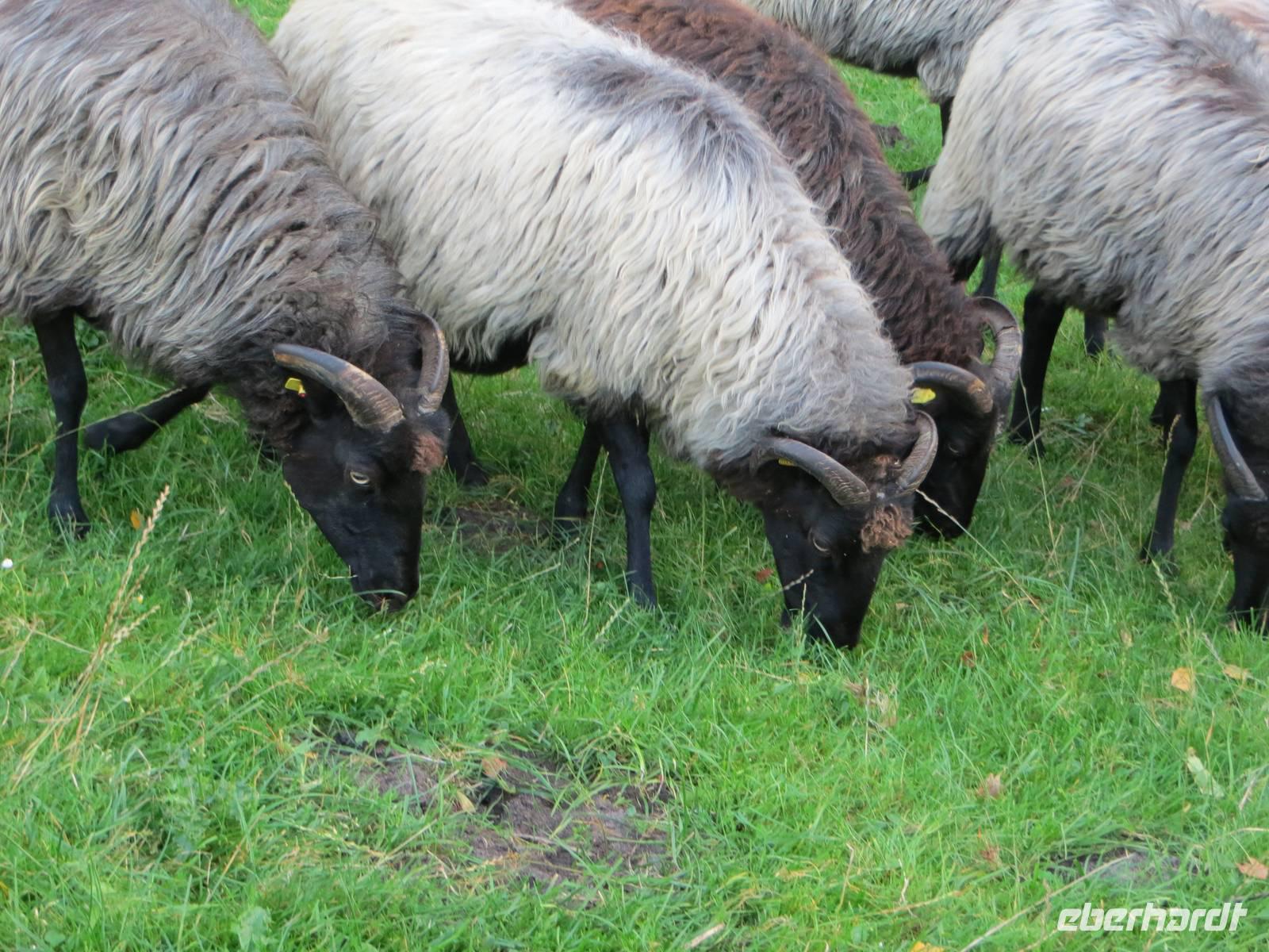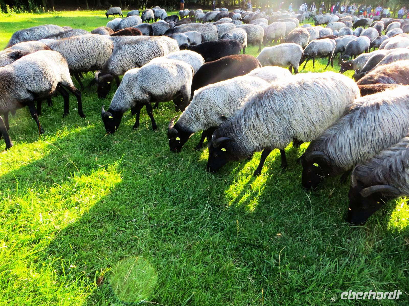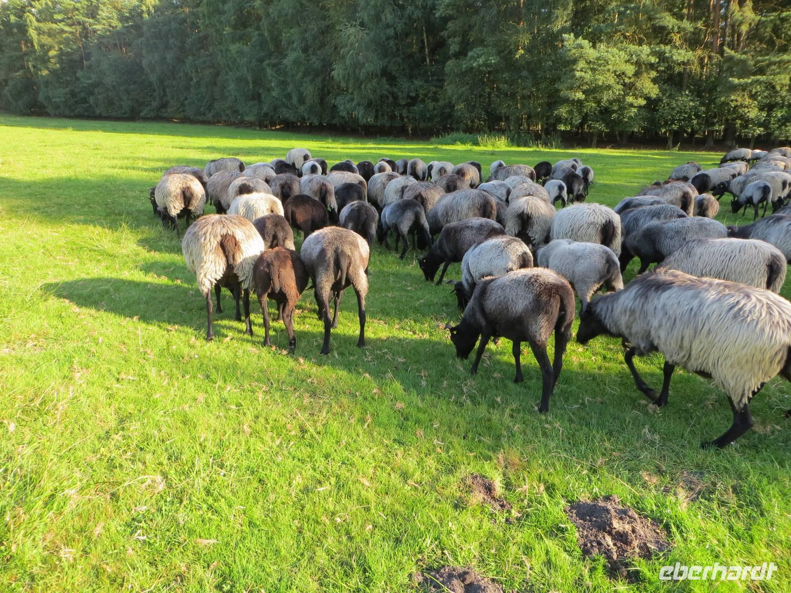 Nach einer kurzen "Siesta" haben wir noch einen Höhepunkt auf dem Programm. Wir wollen den Schäferhof e.V. bei Neuenkirchen besuchen. Der 1976 von Bürgern gegründete Verein Schäferhof bemüht sich um Maßnahmen des Naturschutzes und der Landschaftspflege auf Heide- und Moorflächen sowie der Schaffung von Rückzugsgebieten für bedrohte Tierarten. Zur Zeit werden ca. 400 Morgen Heide und 200 Morgen Grünland bewirtschaftet. Der Schäferhof unterhält eine Gebrauchsherde von etwa 350 Muttertieren mit Lämmern. Hinzu kommen ca. 170 Jährlinge. Unsere Gästeführerin Uschi Timm erzählt ausführlich über das Leben in der Heide damals und heute. Der Schäferhof versetzt uns in eine vergangene Zeit und ist doch gegenwartsbezogen. Wir erfahren viel über ökologische Zusammenhänge, vor allem in der Erlebnis-Sonderaustellung über Ameisen. Ein lebendiger Ameisenhaufen zum Reinschauen ist Mittelpunkt der Ausstellung. Uschi Timm ist es eine Herzensangelegenheit, ihre Gäste in die Welt der Ameisen mitzunehmen und Vorurteile abzubauen und so zum Schutz der Winzlinge beizutragen. Eine Eselfamilie ist sehr zutraulich. Aber endlich ist es so weit! Die Heidschnuckenherde kehrt zum Stall zurück. Wir begegnen ihr auf einer Lichtung im Wald und begleiten sie ein Stück. Schnell vergeht die Zeit mit dem Schäfer, seinen zwei Hütehunden und den Schnucken. Schließlich sind alle Schafe im Stall, es gibt noch Spezialitäten zu kaufen oder eine Heidschnucken-Grillwurst zu kosten, aber nun heißt es Abschiednehmen, es ist schon spät. Zurück im Hotel Allerhof freuen sich alle auf das gute Abendbuffet, wir werden bereits erwartet, es ist bereits halb acht. Ein ereignisreicher Urlaubstag neigt sich dem Ende zu.