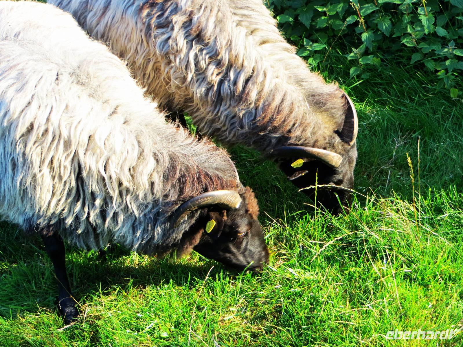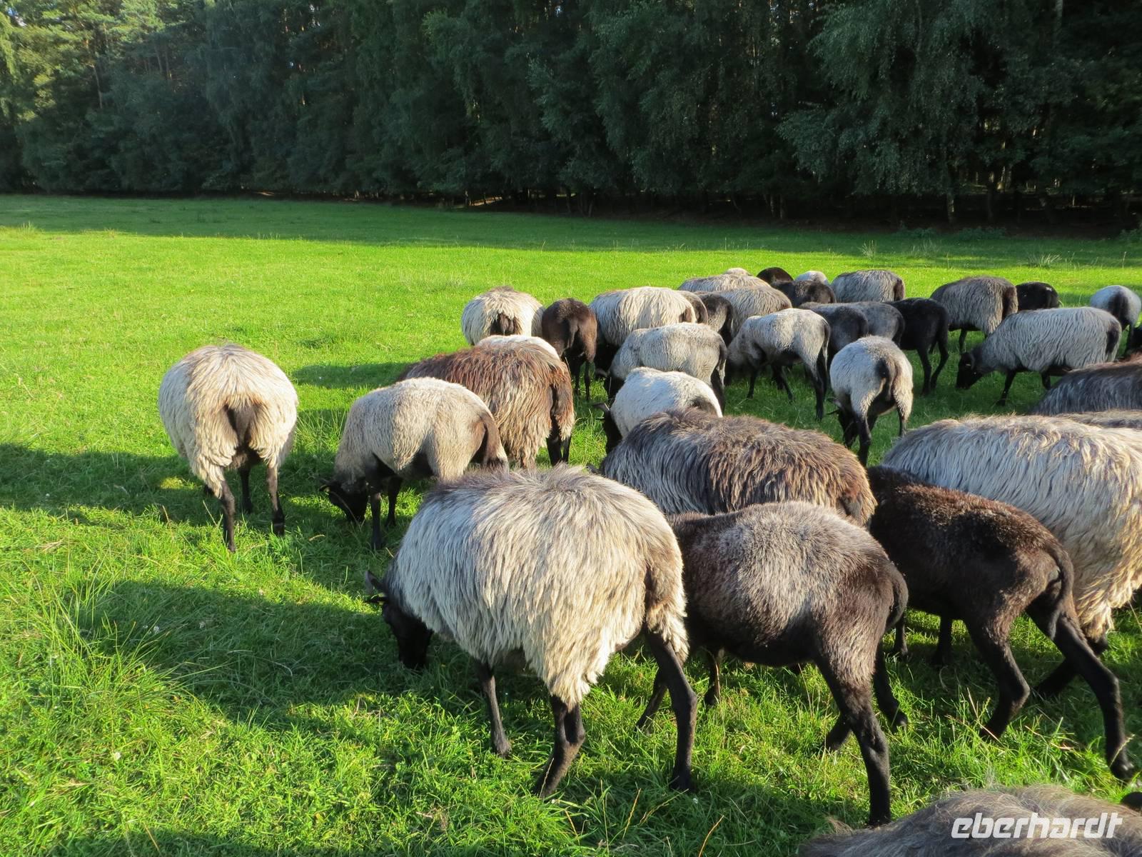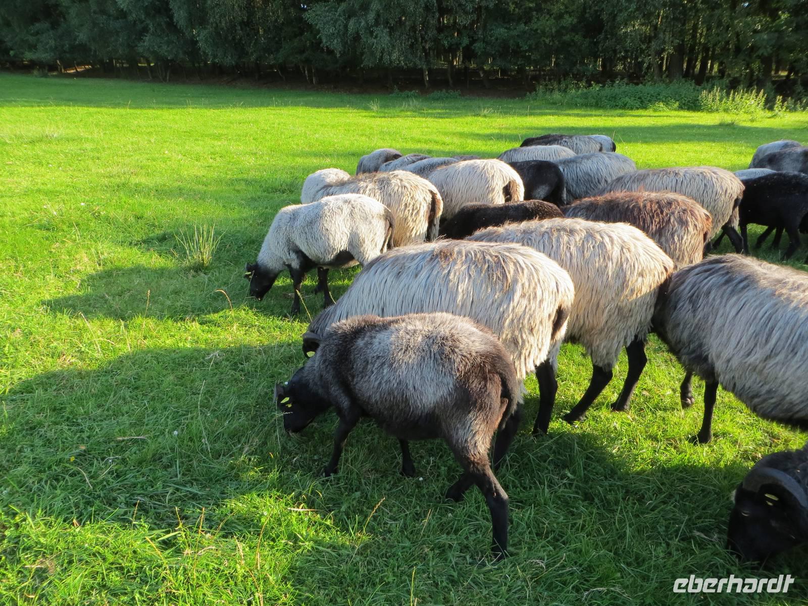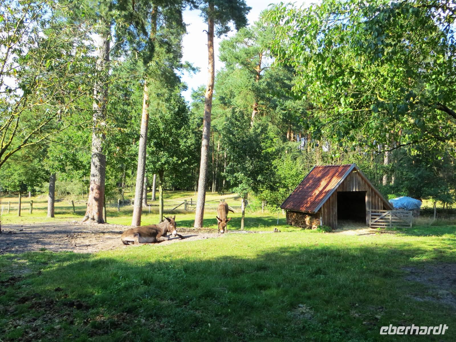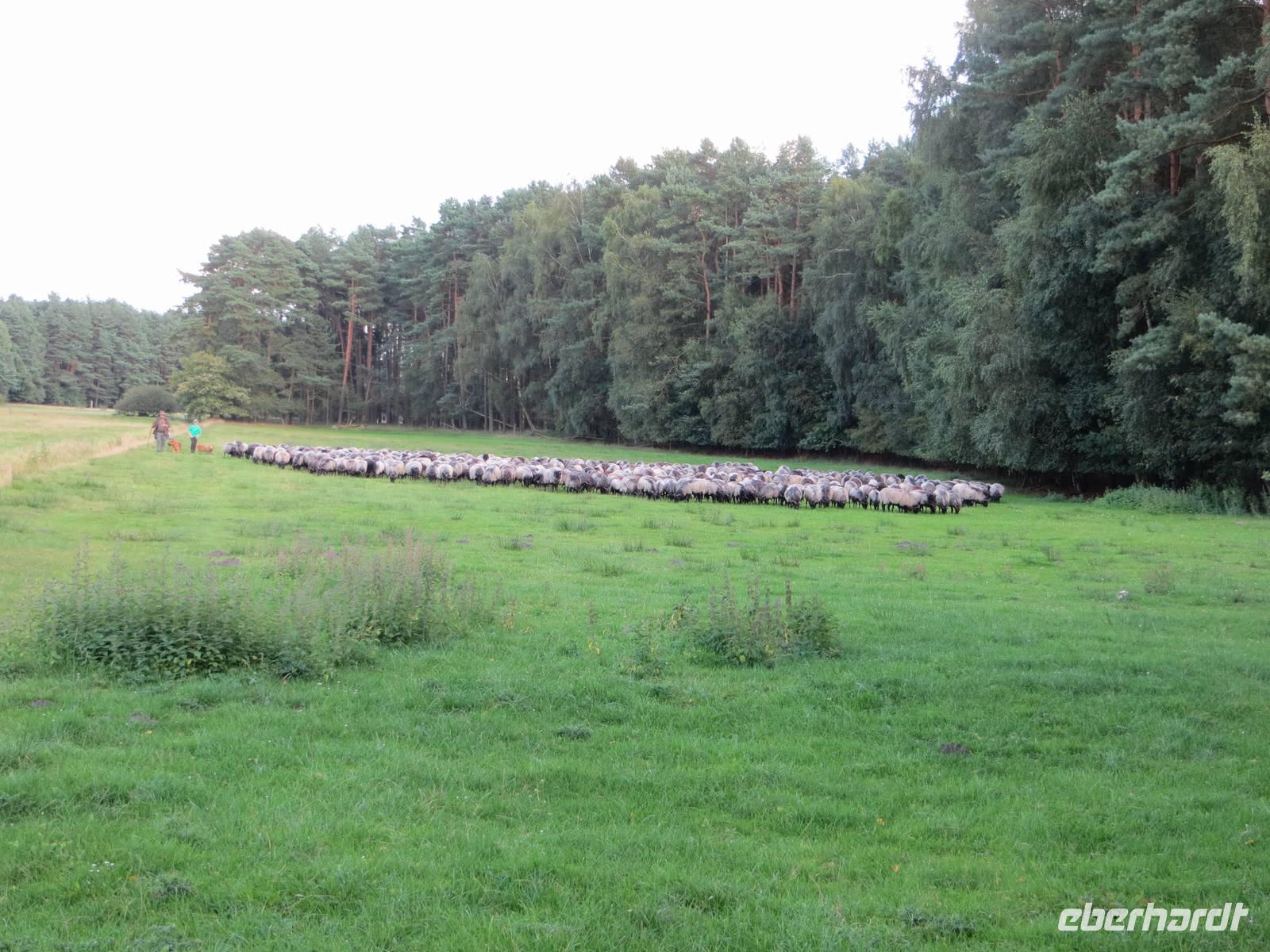 Nach einer kurzen "Siesta" haben wir noch einen Höhepunkt auf dem Programm. Wir wollen den Schäferhof e.V. bei Neuenkirchen besuchen. Der 1976 von Bürgern gegründete Verein Schäferhof bemüht sich um Maßnahmen des Naturschutzes und der Landschaftspflege auf Heide- und Moorflächen sowie der Schaffung von Rückzugsgebieten für bedrohte Tierarten. Zur Zeit werden ca. 400 Morgen Heide und 200 Morgen Grünland bewirtschaftet. Der Schäferhof unterhält eine Gebrauchsherde von etwa 350 Muttertieren mit Lämmern. Hinzu kommen ca. 170 Jährlinge. Unsere Gästeführerin Uschi Timm erzählt ausführlich über das Leben in der Heide damals und heute. Der Schäferhof versetzt uns in eine vergangene Zeit und ist doch gegenwartsbezogen. Wir erfahren viel über ökologische Zusammenhänge, vor allem in der Erlebnis-Sonderaustellung über Ameisen. Ein lebendiger Ameisenhaufen zum Reinschauen ist Mittelpunkt der Ausstellung. Uschi Timm ist es eine Herzensangelegenheit, ihre Gäste in die Welt der Ameisen mitzunehmen und Vorurteile abzubauen und so zum Schutz der Winzlinge beizutragen. Eine Eselfamilie ist sehr zutraulich. Aber endlich ist es so weit! Die Heidschnuckenherde kehrt zum Stall zurück. Wir begegnen ihr auf einer Lichtung im Wald und begleiten sie ein Stück. Schnell vergeht die Zeit mit dem Schäfer, seinen zwei Hütehunden und den Schnucken. Schließlich sind alle Schafe im Stall, es gibt noch Spezialitäten zu kaufen oder eine Heidschnucken-Grillwurst zu kosten, aber nun heißt es Abschiednehmen, es ist schon spät. Zurück im Hotel Allerhof freuen sich alle auf das gute Abendbuffet, wir werden bereits erwartet, es ist bereits halb acht. Ein ereignisreicher Urlaubstag neigt sich dem Ende zu.