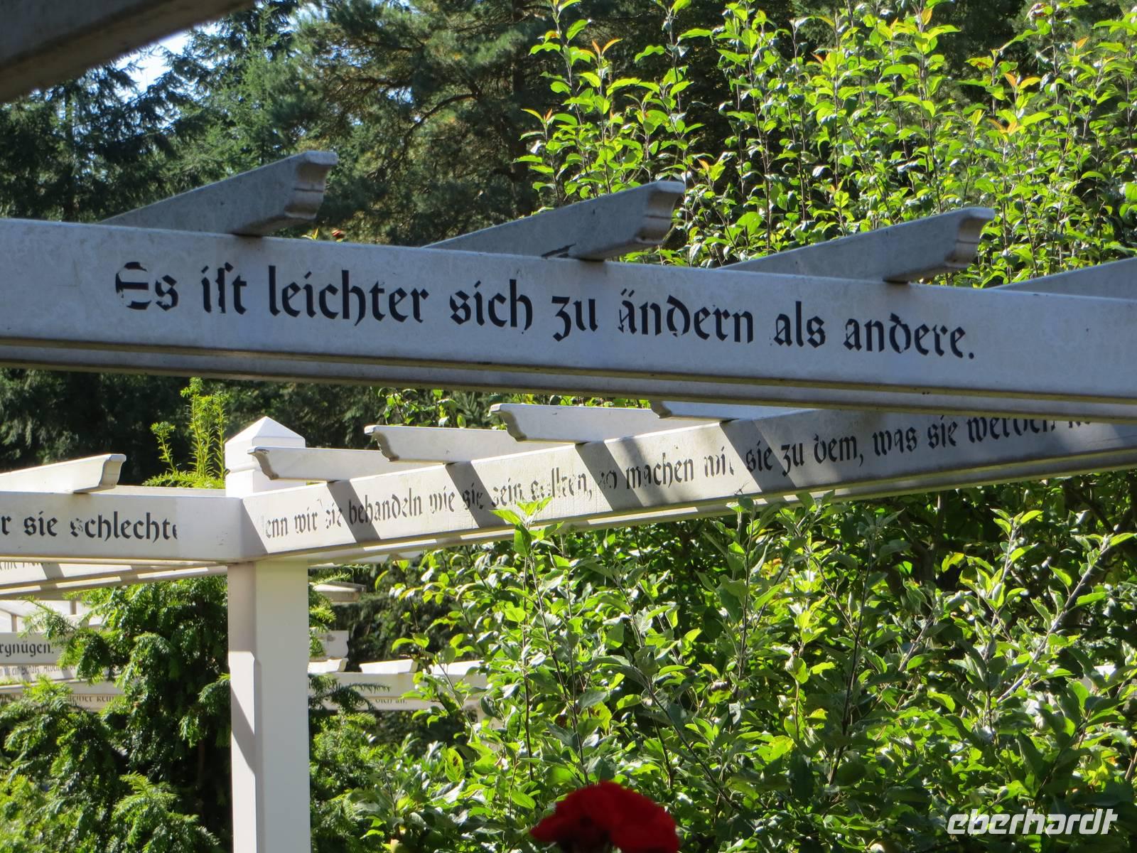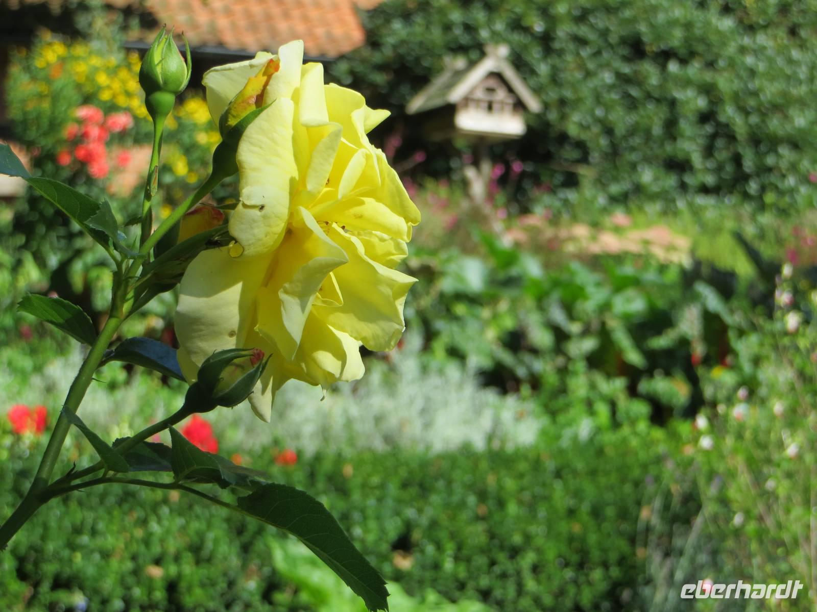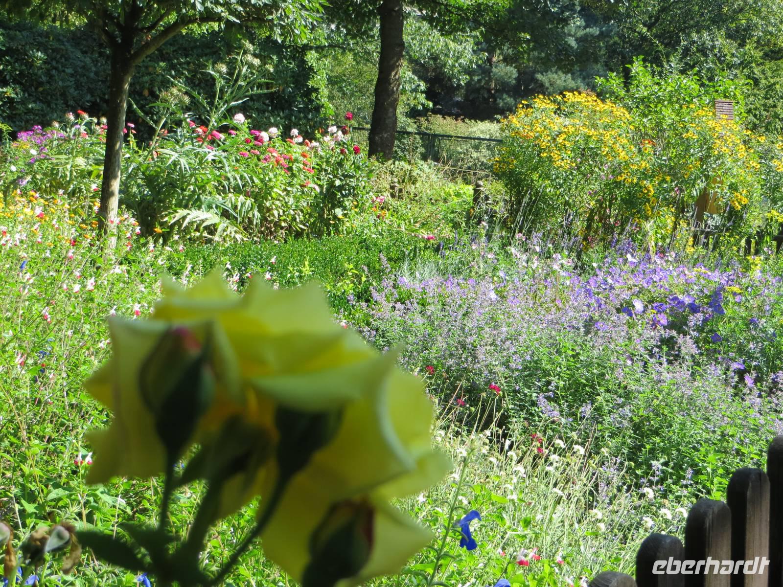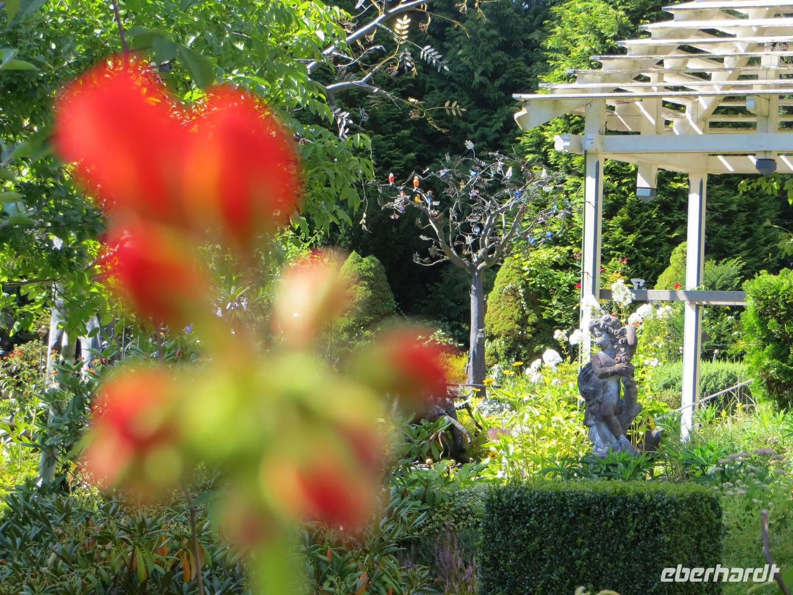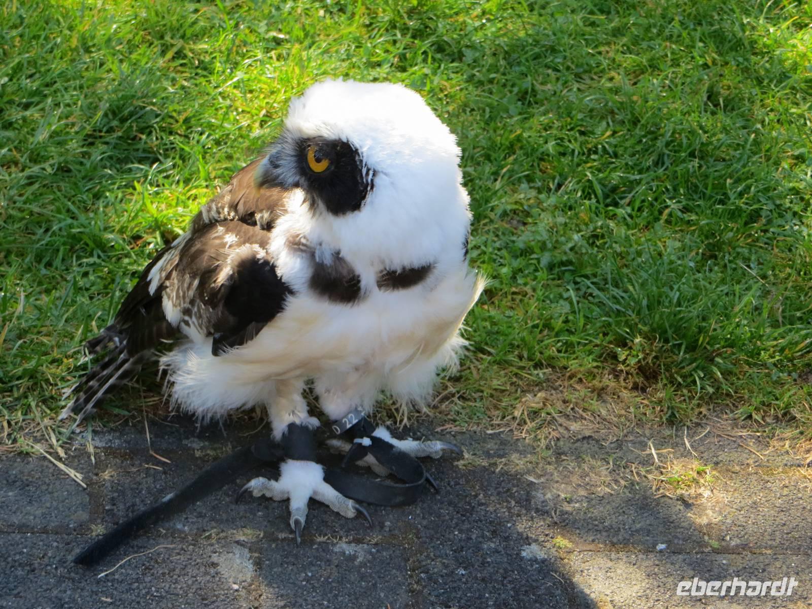 Keiner will die unterhaltsame und informationsreiche Vogelshow versäumen, alle finden sich rechtzeitig auf der Flugschau-Wiese ein. Auch wilde Kanadagänse und ein Storch auf der Durchreise mischen sich unter die gefiederten Stars. Und haben keine Angst vor dem tieffliegenden Condor! Dabei ziehen sogar wir manchmal unwillkürlich den Kopf ein! Der Sekretär "Socke" fängt Schlangen und ärgert die Tiertrainer und am Schluss fliegen über 70 Vögel über unsere Köpfe. Wir haben viel Spaß an der 30-ig minütigen Vorstellung und sind uns einig: wunderschön! Der Park mit seinen Rosenbeeten und Wasserspielen bildet die perfekte Kulisse für die Show. Am Nachmittag gibt es ein Kontrastprogramm: Iserhatsche