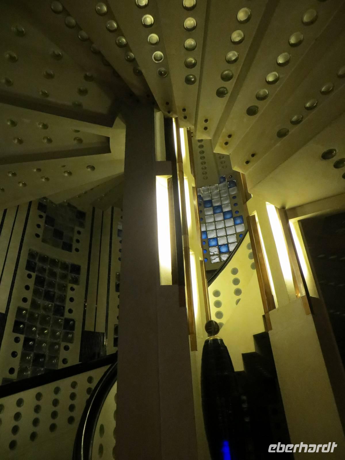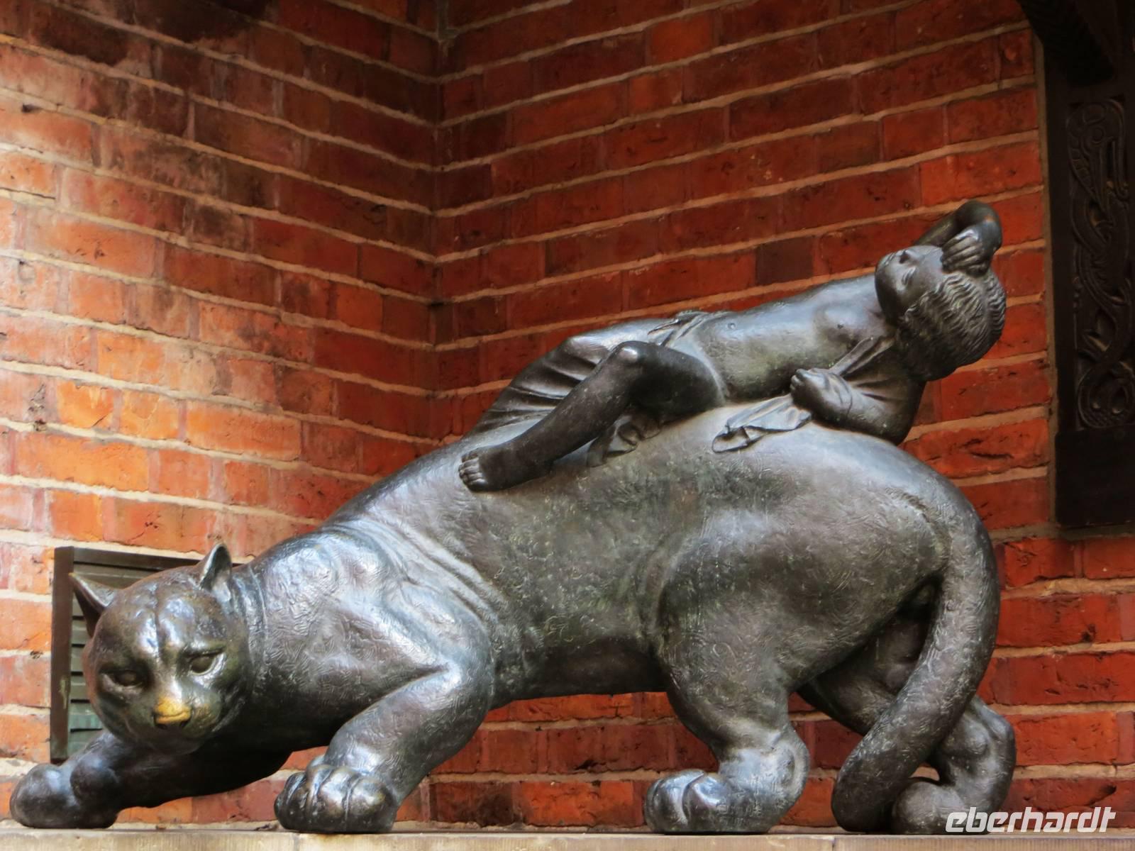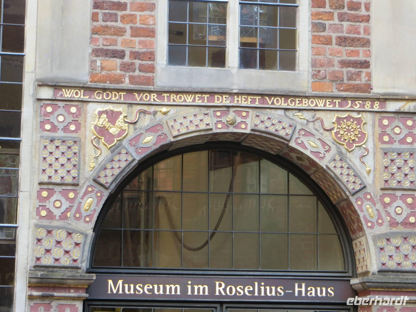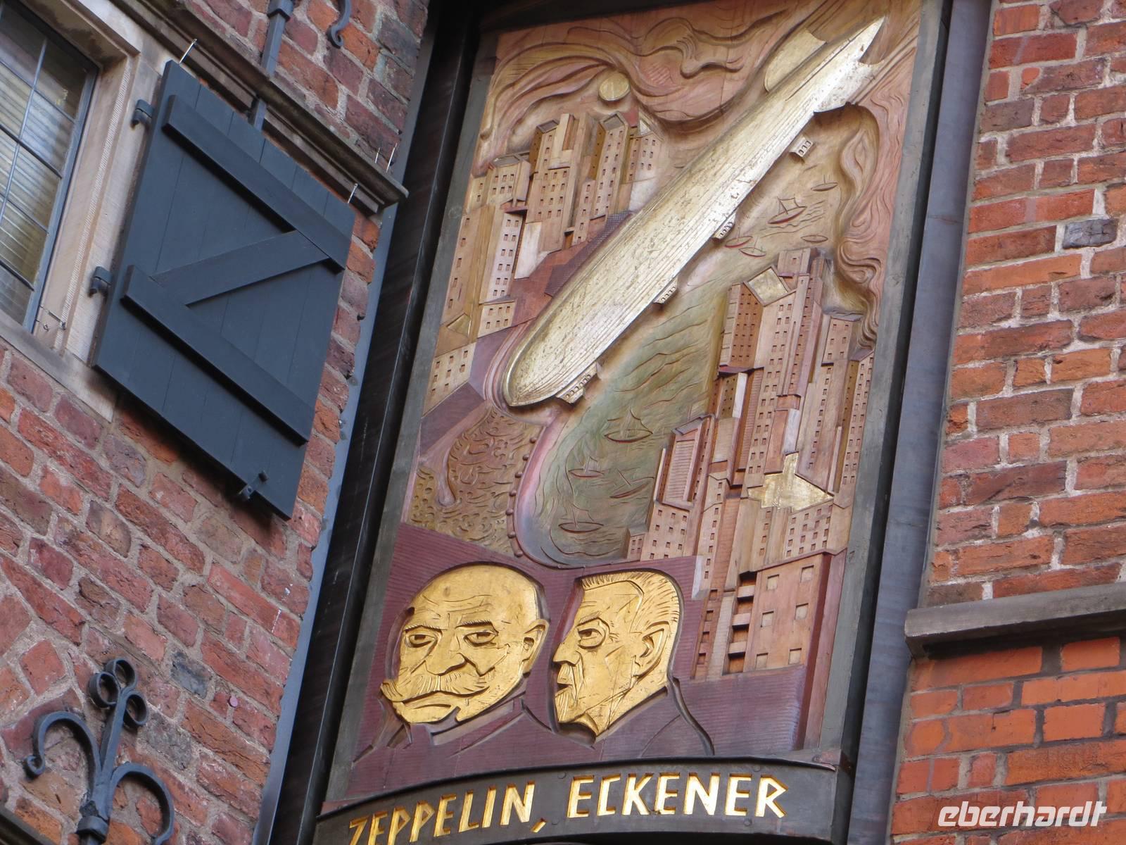 Wir fanden uns wieder pünktlich 15.00 Uhr zum Glockenspiel auf der Böttcherstraße ein. Sieben Minuten lang erklingen Melodien auf 30 Meißner Porzellanglocken, dazu drehen sich zeitgleich 10 Bildtafeln, die den Entdeckern und Abenteurern gewidmet sind, die den Ozean überquerten, sei es mit dem Schiff oder auch zu Luft.