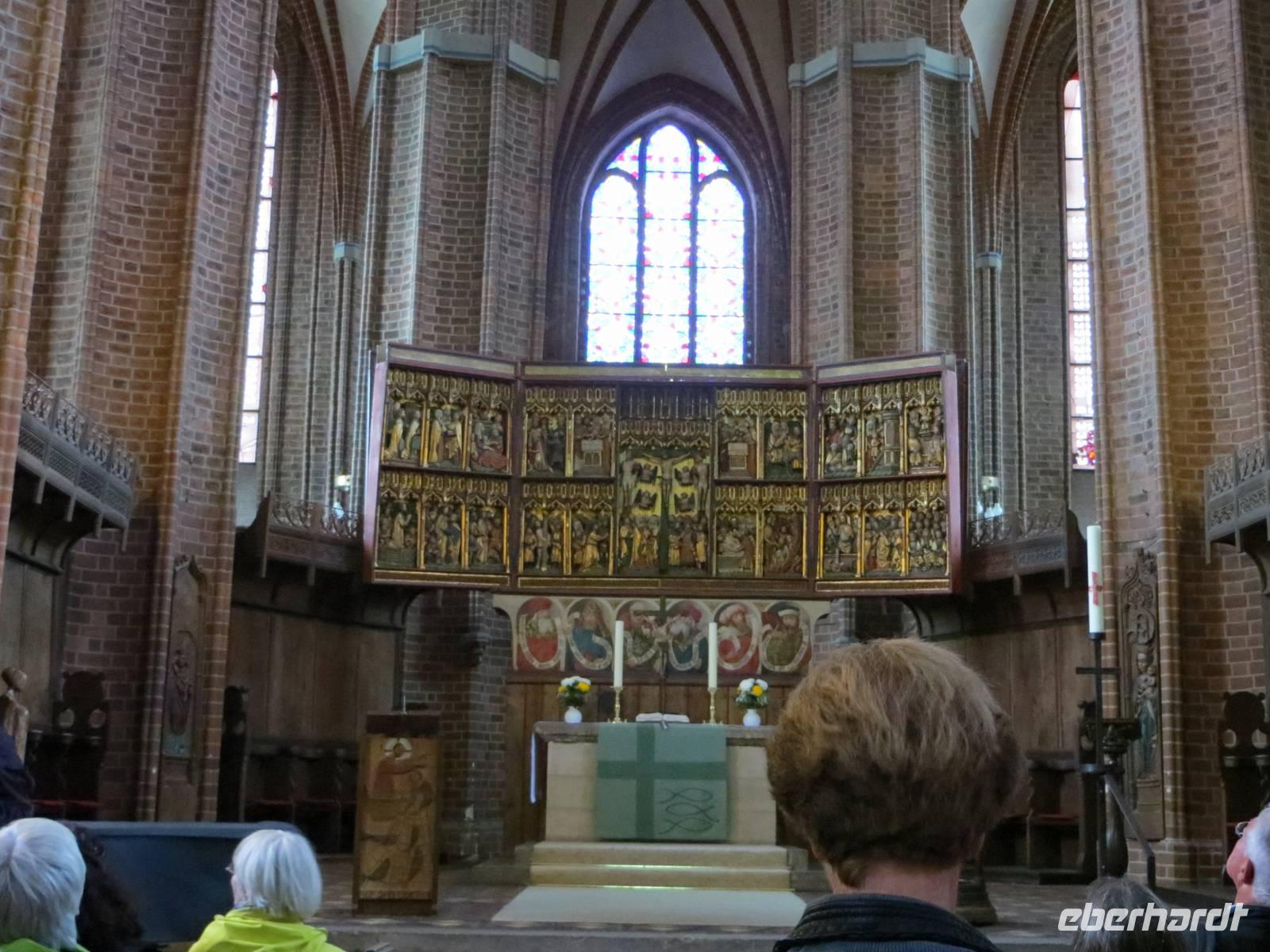 Weiter geht es nach Lüneburg, der alten Salzstadt mit seiner backsteingotischen Häusern und Treppengiebeln, dem 800 jährigen alten Rathaus und dem Hafenviertel an der Ilmenau. Im Bereich des alten Hafens steht noch die Barockfassade des Alten Kaufhauses, und der Alte Kran, eine bis heute funktionsfähige mittelalterliche Holzkonstruktion, in deren Inneren zwei große Laufräder das Heben und Senken des Kranseils ermöglichen. Besonders hervorzuhebende Gebäude sind die drei verbliebenen Stadtkirchen St. Johannis am Sande, die Kirche St. Michaelis, in der Johann Sebastian Bach von 1700 bis 1702 Chorknabe war, und die fast modern wirkende Stadtkirche St. Nicolai, die ab 1407 erbaut wurde. Wir merken, die Zeit vergeht viel zu schnell, es gibt einfach viel zu sehen und zu entdecken. Liebhaber der Fernsehserie "Rote Rosen" haben manches Gebäude erkannt, das im Film als Drehkulisse diente. Manch einer wäre gerne länger geblieben....
