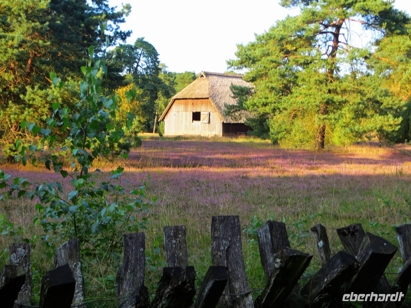 Um diese Jahreszeit ist die Lüneburger Heide am Schönsten. Ein zart-violetter Farbschleier überzieht die Landschaft. Der Schäfer führt seine Heidschnucken über die Weide. Die Kutsche steht zur Ausfahr