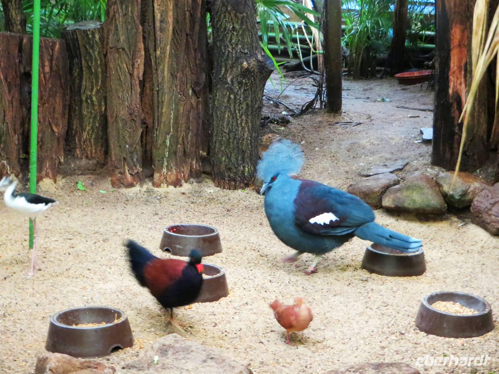 Die Farbenpracht und Artenvielfalt der Vögel ist kaum in Worte zu fassen - das muss man einfach erlebt haben. Bei über 4000 Vögeln aus 675 Arten fällt es schwer, eine Auswahl zu treffen, denn jeder Vogel ist auf seine Weise einzigartig und sehenswert! Besonders erfreuen die zahmen lustigen Loris, die hungrigen Pinguine und der blaue Hyazinth-Ara.