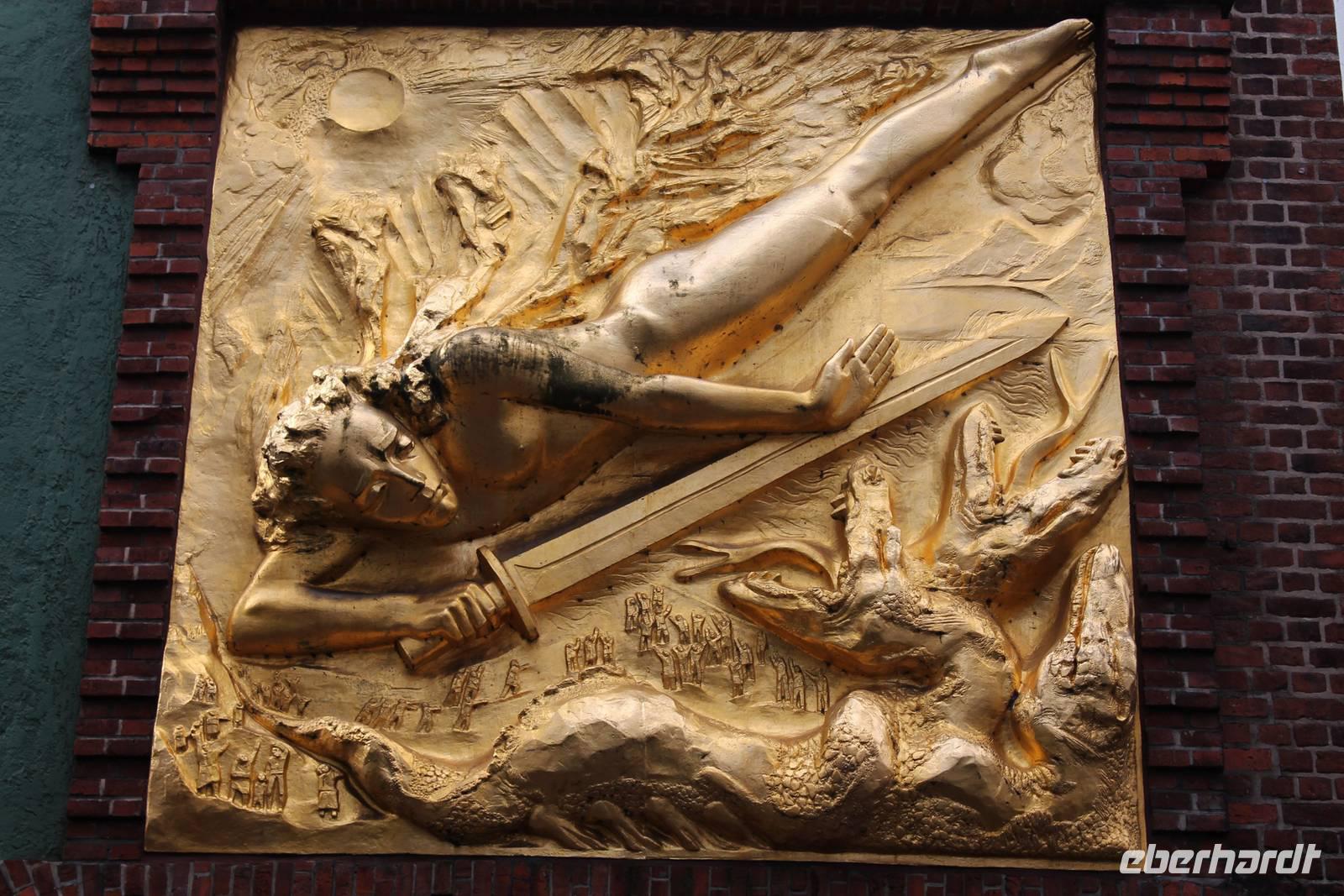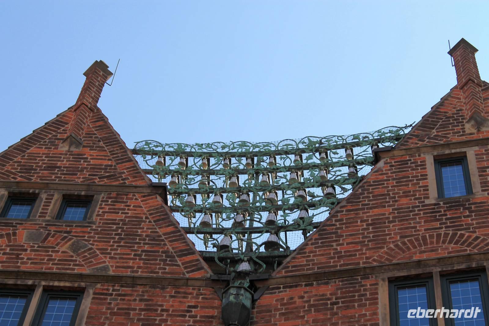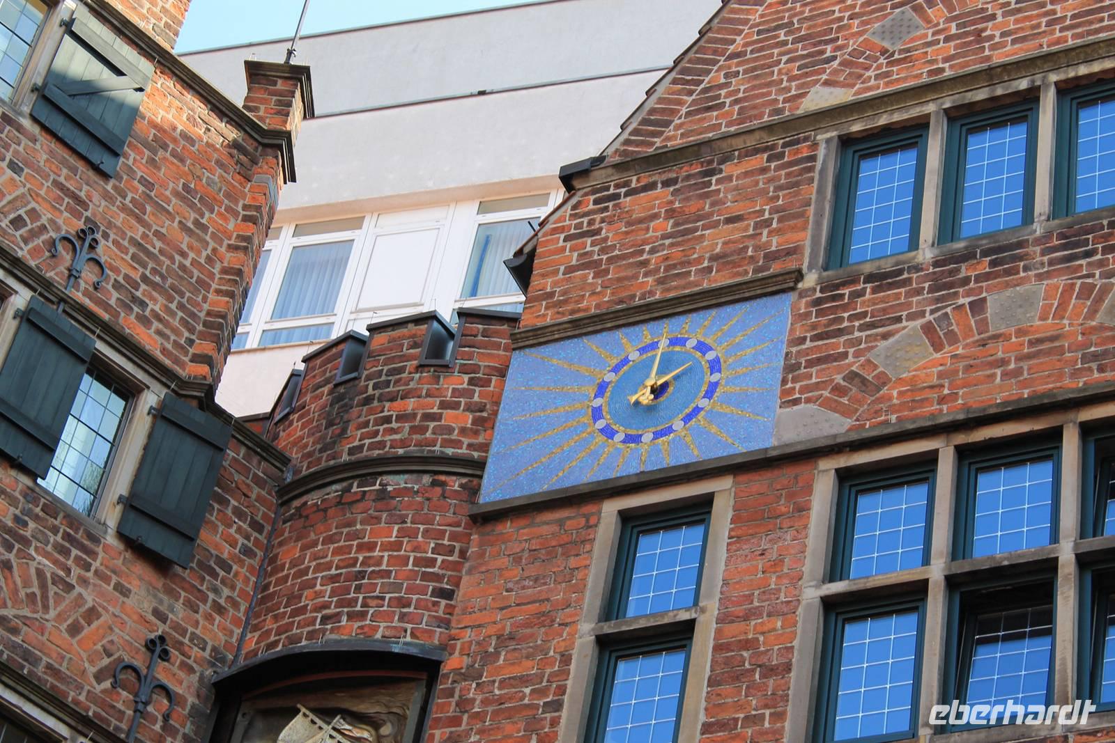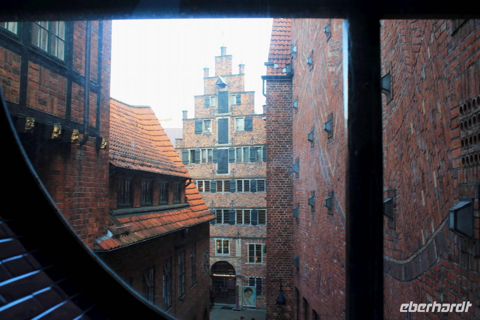 Wir fanden uns wieder pünktlich 15.00 Uhr zum Glockenspiel auf der Böttcherstraße ein. Sieben Minuten lang erklingen Melodien auf 30 Meißner Porzellanglocken, dazu drehen sich zeitgleich 10 Bildtafeln, die den Entdeckern und Abenteurern gewidmet sind, die den Ozean überquerten, sei es mit dem Schiff oder auch zu Luft.