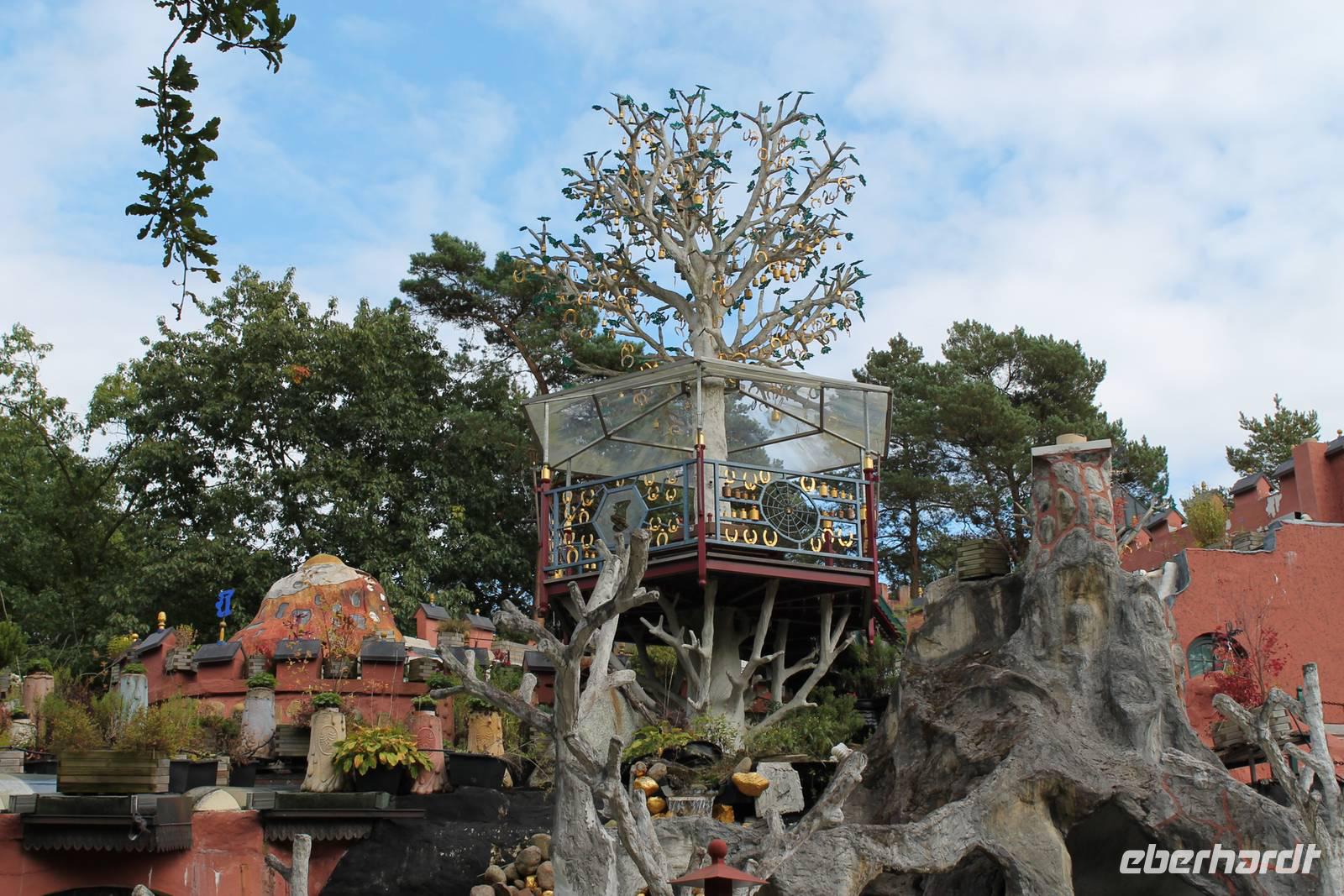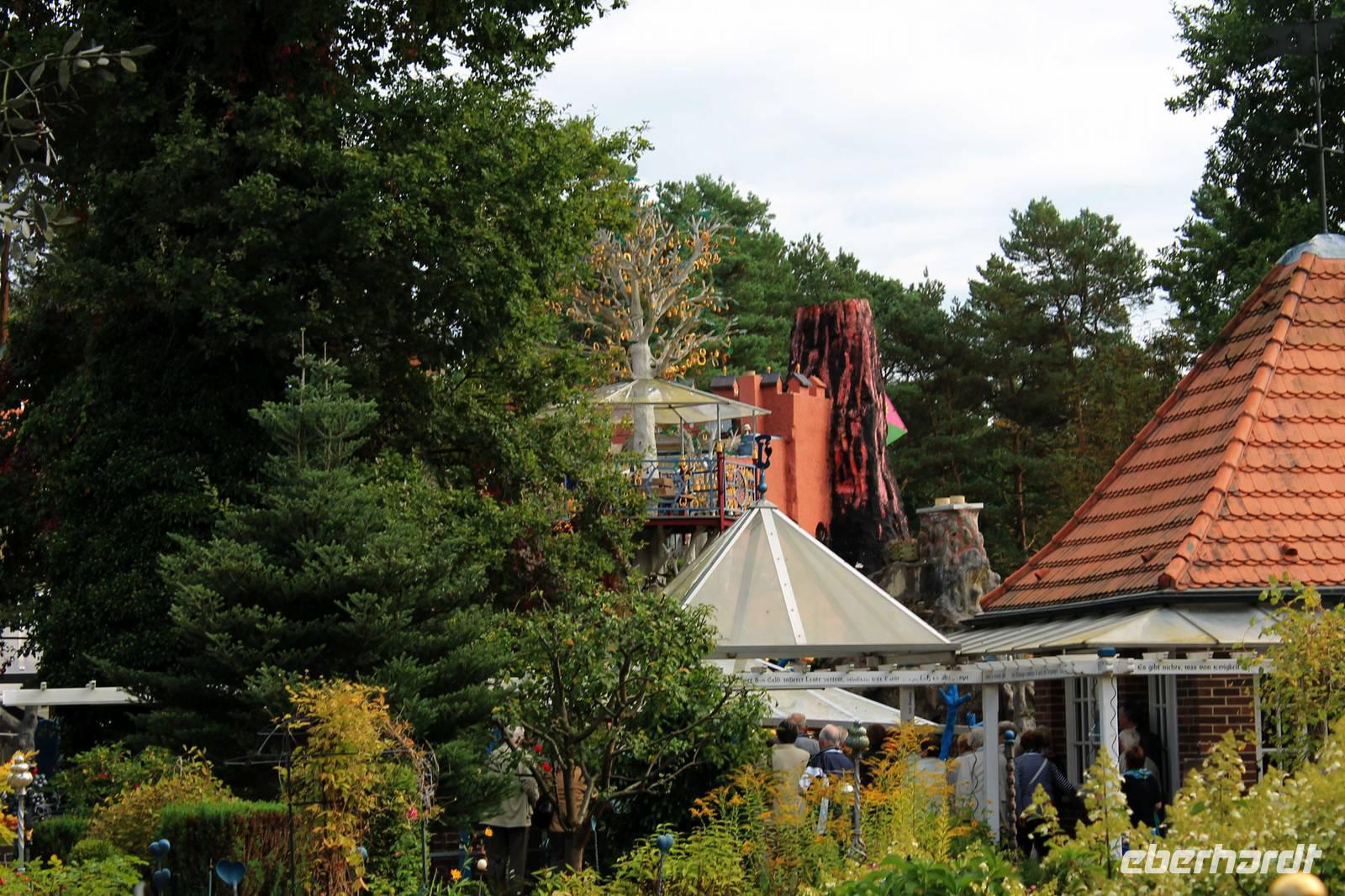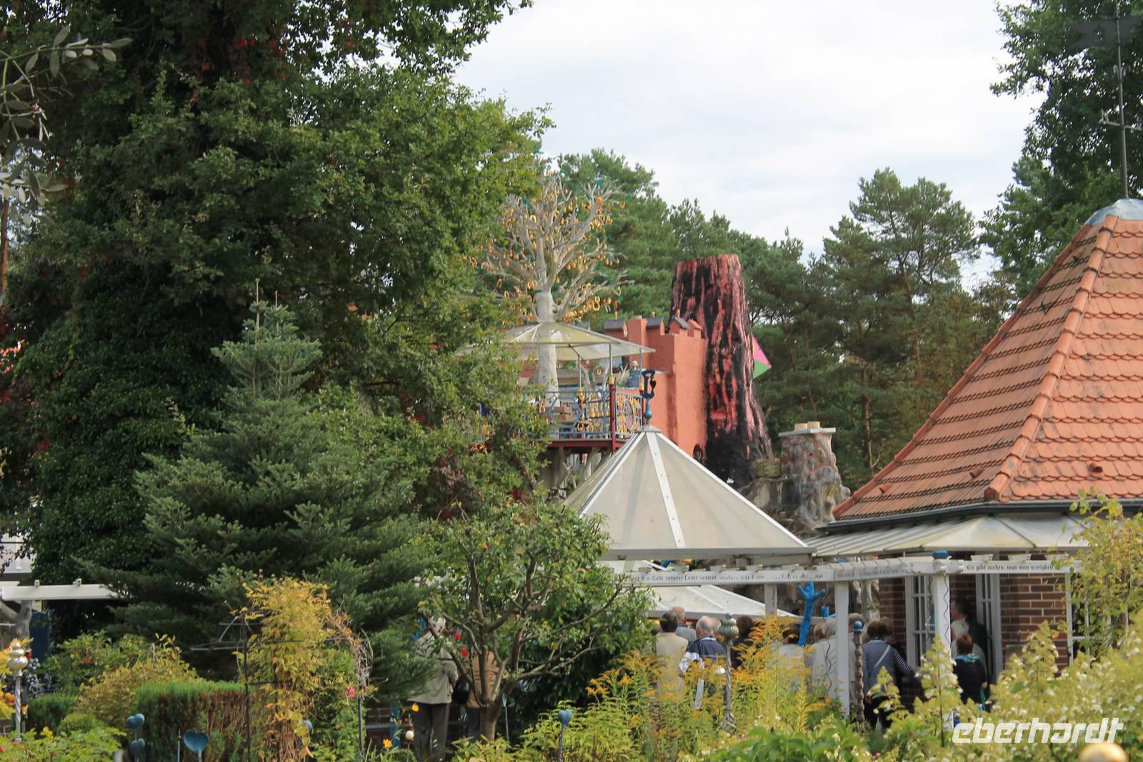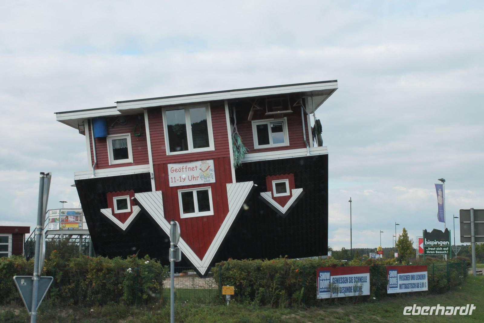 Am Ende der Führung bleibt Zeit für einen ruhigen Spaziergang durch den Park oder ein Stück Kuchen zum Kaffee, und in der Ferne spielt der eiserne mechanische Glockenbaum "Muss i denn, muss i denn zum Städtele hinaus". Eigentlich ist das nicht zu toppen, aber doch: in Bispingen an der Autobahnauffahrt steht ein Wohnhaus auf dem Kopf!
