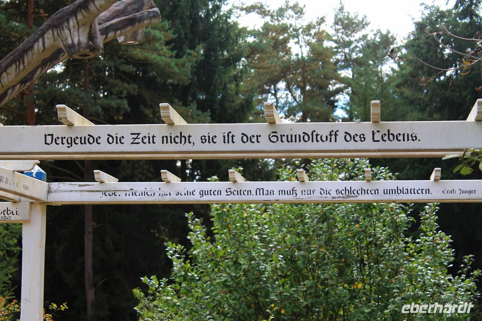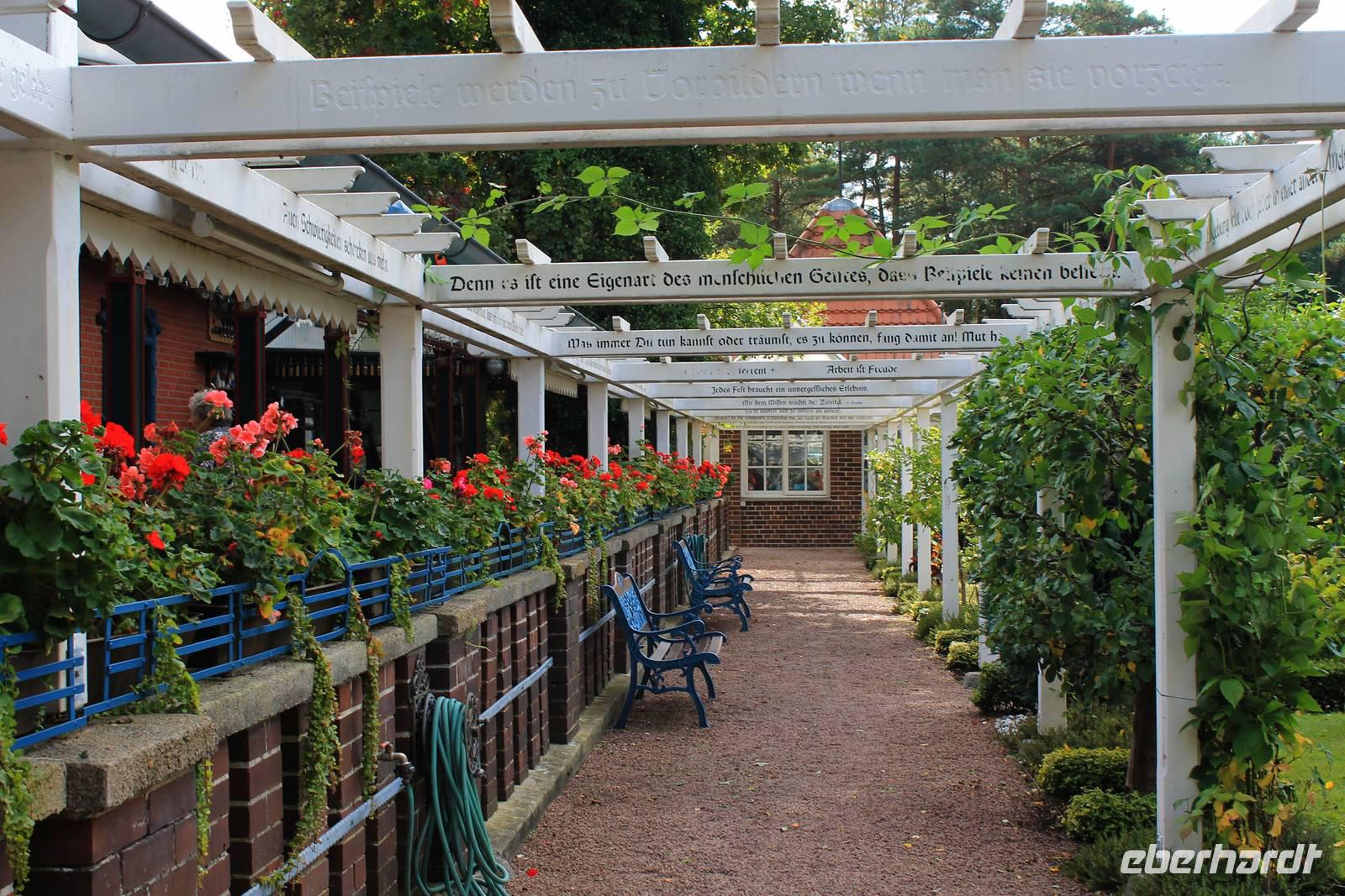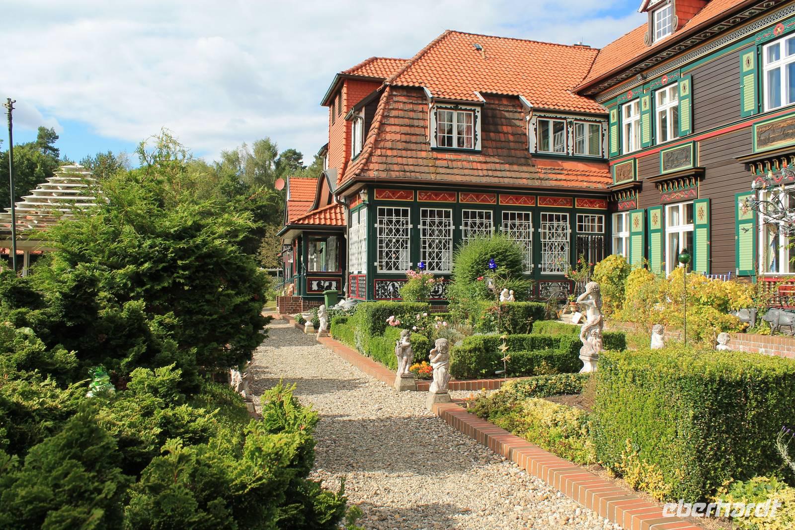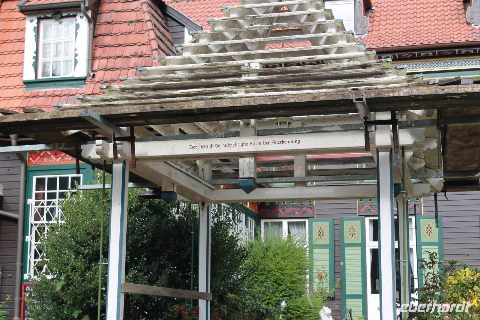 Am Ende der Führung bleibt Zeit für einen ruhigen Spaziergang durch den Park oder ein Stück Kuchen zum Kaffee, und in der Ferne spielt der eiserne mechanische Glockenbaum "Muss i denn, muss i denn zum Städtele hinaus". Eigentlich ist das nicht zu toppen, aber doch: in Bispingen an der Autobahnauffahrt steht ein Wohnhaus auf dem Kopf!