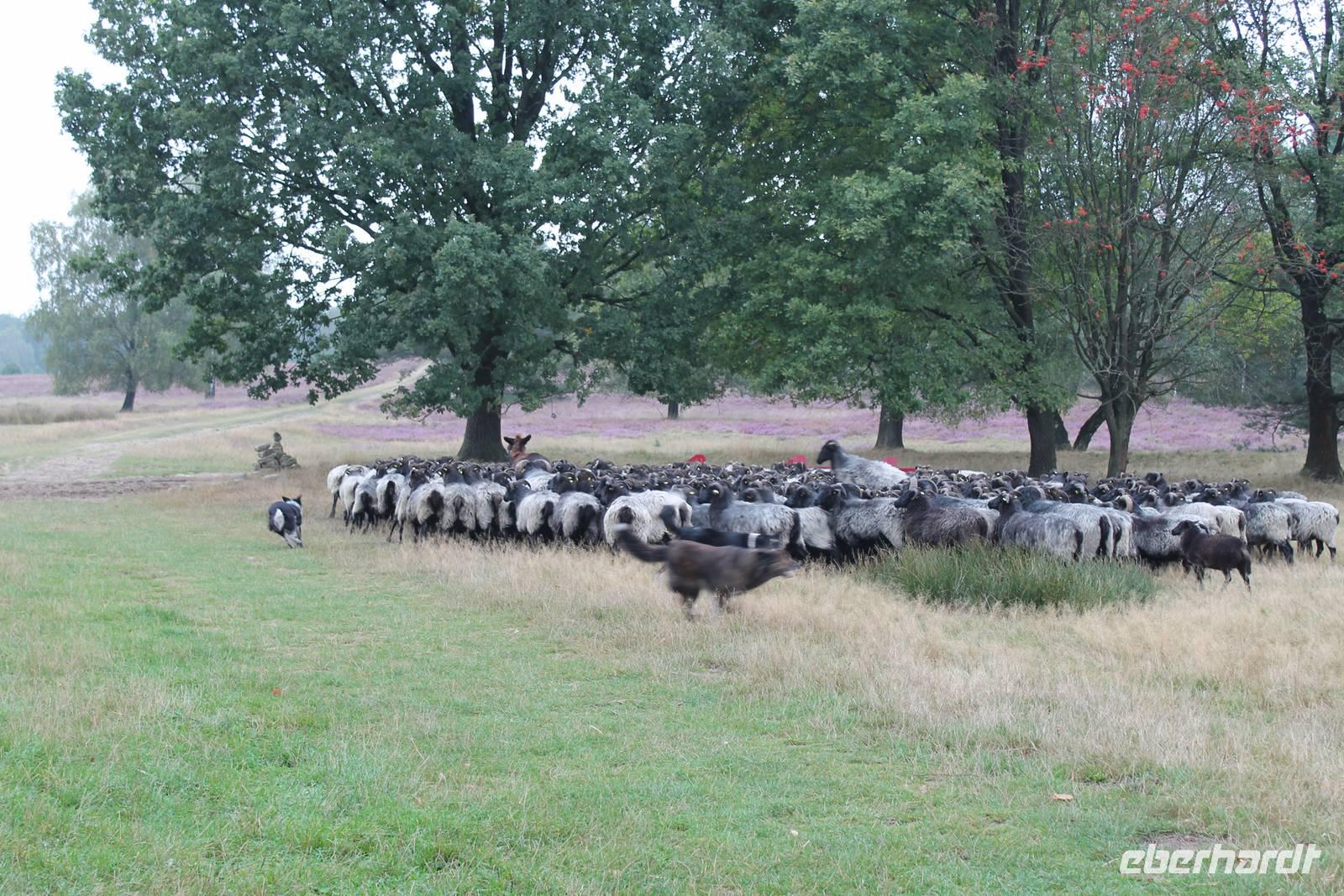 Nach einer kurzen "Siesta" haben wir noch einen Höhepunkt auf dem Programm. Wir wollen den Schäferhof e.V. bei Neuenkirchen besuchen. Der 1976 von Bürgern gegründete Verein Schäferhof bemüht sich um Maßnahmen des Naturschutzes und der Landschaftspflege auf Heide- und Moorflächen sowie der Schaffung von Rückzugsgebieten für bedrohte Tierarten. Derzeit werden ca. 400 Morgen Heide und 200 Morgen Grünland bewirtschaftet. Der Schäferhof unterhält eine Gebrauchsherde von etwa 350 Muttertieren mit Lämmern. Hinzu kommen ca. 170 Jährlinge. Unsere Gästeführerin Uschi Timm erzählt ausführlich über das Leben in der Heide damals und heute. Der Schäferhof versetzt uns in eine vergangene Zeit und ist doch gegenwartsbezogen. Wir erfahren viel über ökologische Zusammenhänge, vor allem in der Erlebnis-Sonderaustellung über Ameisen. Ein lebendiger Ameisenhaufen zum Reinschauen ist Mittelpunkt der Ausstellung. Uschi Timm ist es eine Herzensangelegenheit, ihre Gäste in die Welt der Ameisen mitzunehmen und Vorurteile abzubauen und so zum Schutz der Winzlinge beizutragen. Endlich ist es so weit! Die Heidschnuckenherde kehrt zum Stall zurück. Wir begegnen ihr auf einer Lichtung im Wald und begleiten sie ein Stück. Schnell vergeht die Zeit mit dem Schäfer, seinen zwei Hütehunden und den Schnucken. Schließlich sind alle Schafe im Stall, es gibt noch Spezialitäten zu kaufen oder eine Heidschnucken-Grillwurst zu kosten, aber nun heißt es Abschiednehmen, es ist schon spät. Zurück im Hotel Allerhof freuen sich alle auf das gute Abendbuffet. Ein ereignisreicher Urlaubstag neigt sich dem Ende zu.