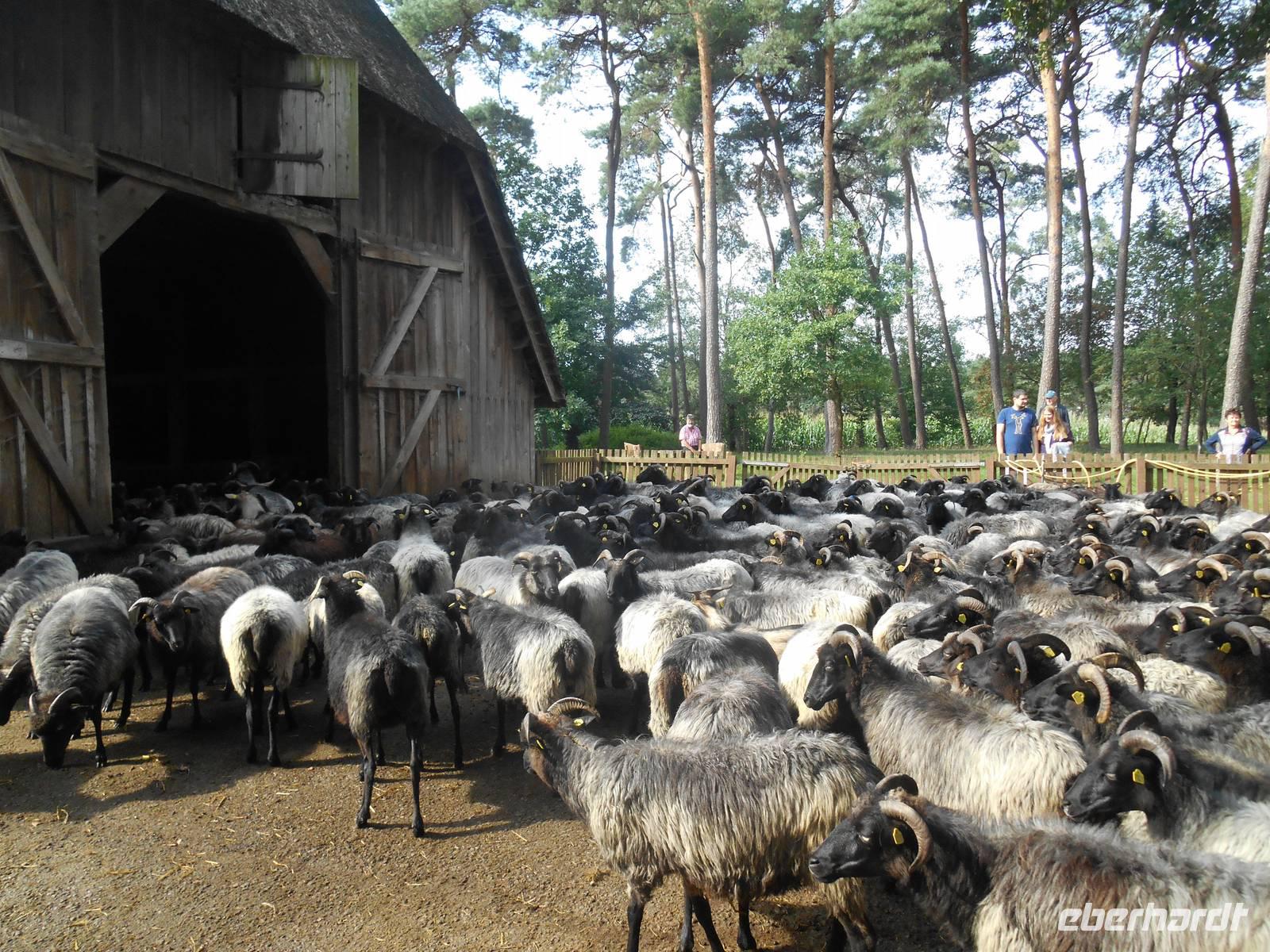 Gut gestärkt vom reichhaltigen Frühstücksbuffet und bei bester Laune fuhren wir am Vormittag in Richtung Schneverdingen. Dort befindet sich das Landschaftsschutzgebiet „Höpen", ein nettes Areal für Wald- und Heidespaziergänge. Am unteren Schafstall erlebten wir zuerst einen sogenannten „Heidschnucken-Austrieb", denn hier verbringt im Sommer eine Heidschnuckenherde die Nächte und der Schäfer treibt seine Herde somit täglich gegen 10.30 Uhr aus dem Übernachtungsquartier aus und gegen 17 Uhr wieder ein - dieses „Spektakel" muss man erlebt haben! Ein gemütlicher Heidespaziergang stand anschließend auf dem Programm! Vom oberen Schafstall gelangten wir innerhalb von nur etwa 20 Gehminuten zum berühmten Heidegarten. 120.000 Exemplare von mehr als 130 verschiedenen Heidesorten bilden hier auf dem Höpen ein eindrucksvolles Ziffernblatt und zeigen darin auch das Schneverdinger Wappen. Von einem niedrigen Aussichtsturm konnten wir die Heide-Uhr am besten überblicken, die Heide stand schließlich mit etwa 70% in der Blüte - eine Wohltat für unsere Augen und ein grandioser Farbteppich! Gegen Mittag erreichten wir Niederhaverbeck, wo wir zu einer entspannten Kutschfahrt rund um den Wilseder Berg erwartet wurden. Die Tour führte uns durch Wald und auch vorbei an ausgedehnten Heideflächen mit wilden Wacholderbüschen. In Wilsede, einem typischen kleinen Heidedorf des Naturschutzparks, legten wir einen Aufenthalt ein und ein Bummel durch den nur knapp 40 Einwohner zählenden Ort gewährte uns einen Einblick über das urig-rustikale Leben hier in der Heide. Wir waren uns alle einig - eine Kutschfahrt durch die Lüneburger Heide muss man erleben! Ach so, der Wettergott meinte es übrigens heute auch sehr gut mit uns! So einen sonnigen Tag mussten wir voll ausnutzen und somit ging es gleich weiter zum „Schäferhof" bei Neuenkirchen. In der historischen Hofanlage des Schäferhofs sind heute noch ein Schäfer, seine Herde und seine Hütehunde zu Hause. Betrieben wird der Hof von einem gemeinnützigen Verein und dieser finanziert sich wiederum u. a. durch den Verkauf von Schnuckenwurst, -fleisch und -schinken. Eine Mitarbeiterin führte uns über den Hof und erklärte uns einige interessante Dinge über die Heidschnucken - u. a. auch, dass den Kern der Herde etwa 400 Mutterschafe und einige Böcke bilden und dass mitsamt der schlachtreifen einjährigen Lämmer die Herdengröße bis zu 1.200 Köpfe erreicht! Der Höhepunkt war für uns allerdings der „Schnuckeneintrieb" am Abend. Ein erlebnisreicher, aber auch langer Tag endete mit einem wiederum sehr guten Abendessen im Hotel „Allerhof".