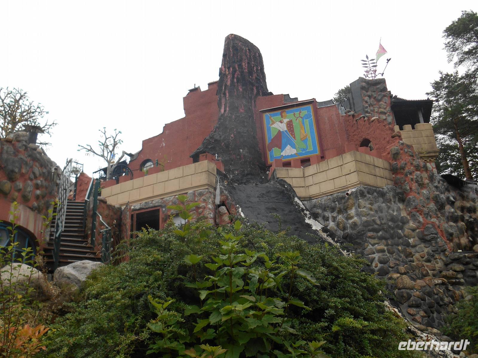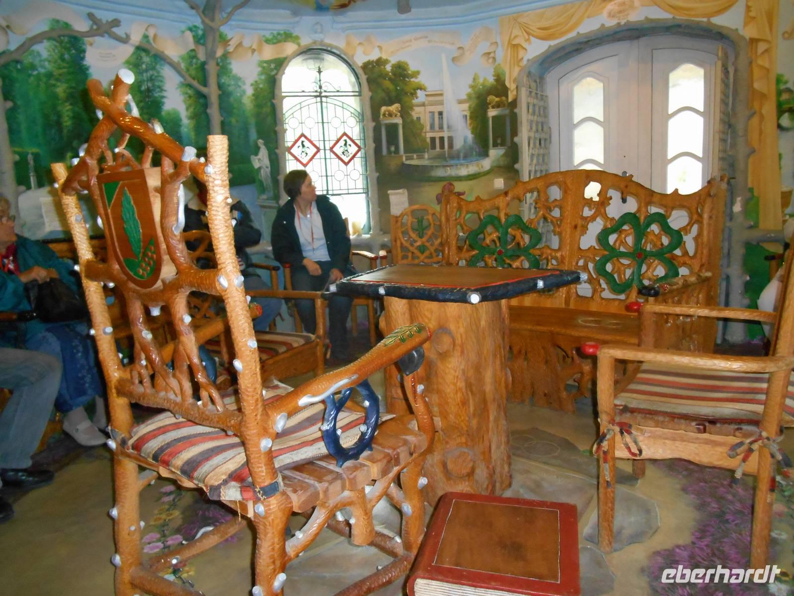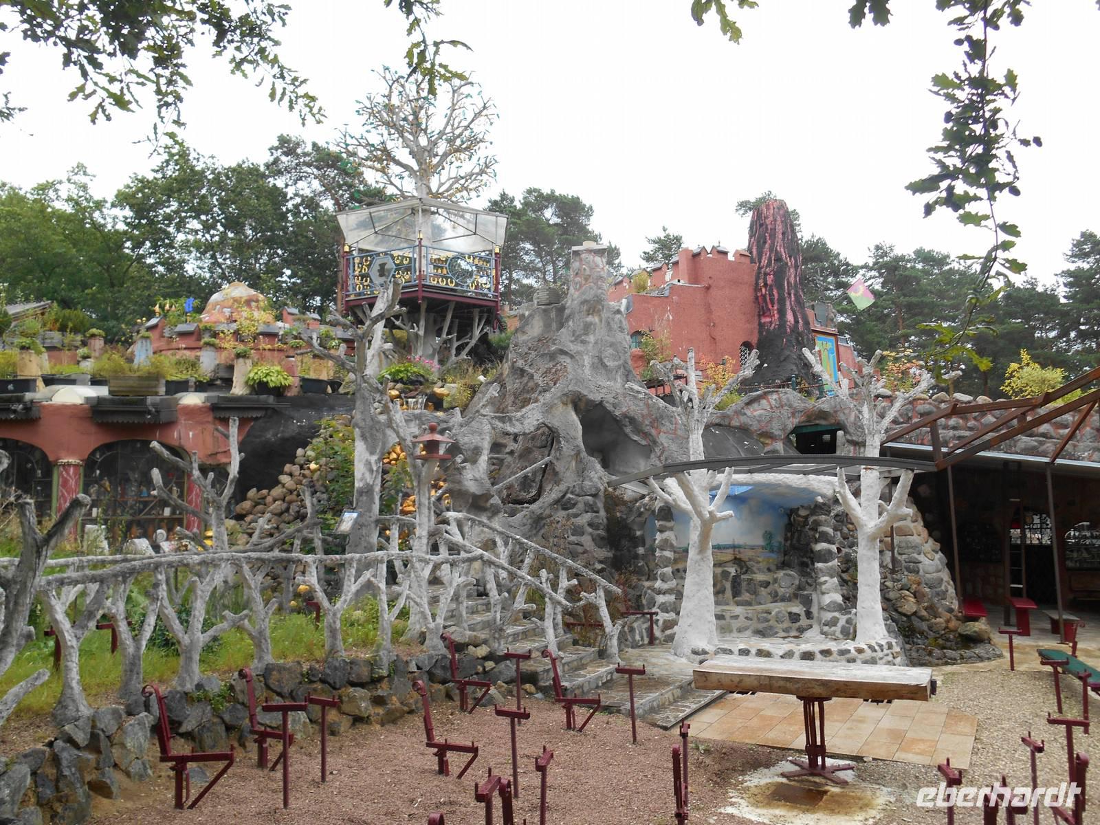 Kurz nach 9 Uhr starteten wir zum Weltvogelpark Walsrode, denn dieser öffnet leider erst um 10 Uhr! Der Park am Nordrand Walsrodes ist weit mehr als nur ein Vogelzoo! Er ist ein 24 Hektar großer, bestens gepflegter Park, in dem allein 120 Rhododendren- und 70 Rosenarten blühen! Hier leben über 4.000 Vögel 675 verschiedener Arten und auch im Artenschutz ist der Park sehr aktiv. Wasserläufe und Wasserfälle, ein Eulen- und Regenwaldhaus sorgen für ein abwechslungsreiches Ambiente. Nicht versäumen durften wir übrigens die täglichen Attraktionen bzw. Shows, zum Beispiel die Fütterung von Pinguinen bzw. Pelikanen und die größte Flughow Europas mit Greifvögeln, darunter auch dem Kondor! Der Park ist einzigartig und so manch einer hätte ganz sicher hier noch etwas mehr Zeit verbracht! Wir mussten jedoch weiter, denn am Nachmittag sollten wir eine Entdeckungstour durch das sog. „Heidekastell Iserhatsche" erleben. Keiner konnte sich so richtig etwas darunter vorstellen, unsere Neugier war geweckt... Verrückter geht es übrigens kaum, denn hier bei Bispingen huldigt ein Berliner Malermeister den Hohenzollern, lässt mehrmals täglich einen Vulkan ausbrechen und hat für sich vorausschauend schon einen Sitzsarg in der Bibliothek und eine Arche Noah im Garten stehen - unglaublich, aber wahr...! Wir wurden am Eingang höchstpersönlich von diesem Berliner Malermeister, Herrn Schulz-Ebschbach, empfangen. Dieser erzählte uns kurz aus seinem Leben und seinen Visionen. Zunächst einmal hat er das alte Jagdschloss, in dem er und seine Frau leben, innen vollständig zu einem Tempel des Preußentums, der Hohenzollern und seiner selbst umgestaltet. Hier hat er das Diana-Zimmer aus dem Schloss Sanssouci nachgebaut und mit kostbaren Biedermeiertapeten ausgeschmückt. Noch prunkvoller ist das königlich-preußische Esszimmer aus Sanssouci mit vergoldetem Gipsstuck und Muranoglas-Leuchtern. Von einer Tastatur am Kopfende der Tafel aus kann das Spiel der Glocken im eisernen Glockenbaum auf der Terrasse bedient werden. In der Bibliothek steht der Sitzsarg des heutigen Hausherrn, ins bereitliegende Totenhemd ist eine Handytasche eingenäht - für den Fall, dass der Tod doch ein Irrtum war! Probegesessen hat er schon und auch der Beisetzungszug mit Pferd und Wagen wurde bereits geprobt. Das Pendant zum Jagdschloss bildet das Heidekastell „Montagnetto". Es wirkt mit seinen Zinnen und Türmchen wie eine Burg am Fels mit Wasserfall, überragt von einem lavarot gestrichenen Vulkanschlot. Der spuckt nämlich auf Knopfdruck unter großem Getöse Feuer! Im Schlossinnern befindet sich auch ein Standesamt, das einzige mit Garantieschein - so wurde es uns zumindest erzählt...! Auch das aufnahmebereite Mausoleum des Visionärs fanden wir hier. Außerdem Sammlungen ohne Ende, unter anderem die weltgrößte Sammlung gefüllter Bierflaschen und eine Streichholzschachtelsammlung - der absolute Wahnsinn und ganz sicher nicht für jedermann nachvollziehbar! Fazit: Iserhatsche wurde von uns Allen sehr unterschiedlich aufgenommen - von schräg, skurril bis bewundernswert - auf alle Fälle unvergesslich im Positiven oder Negativen!