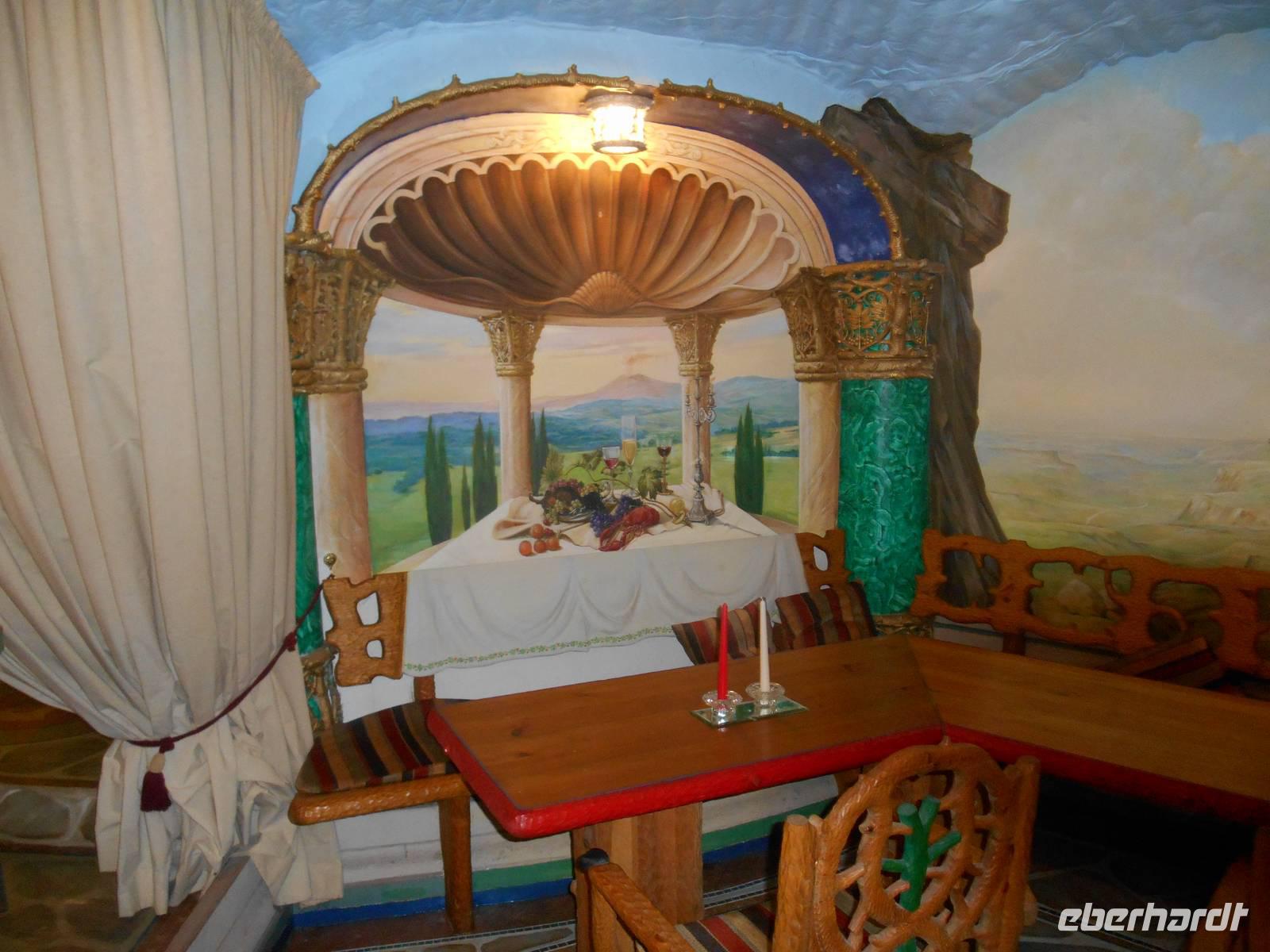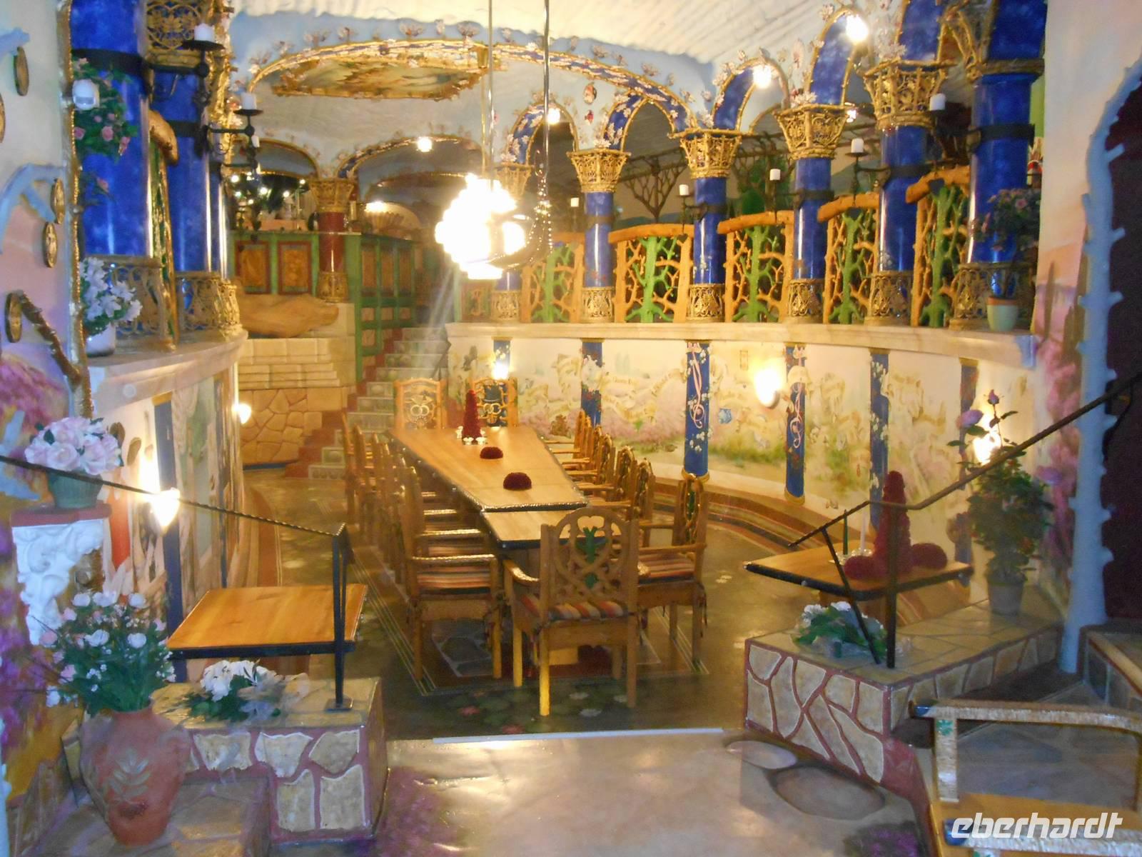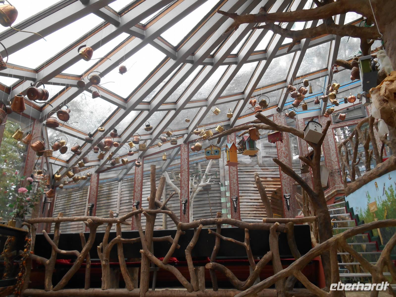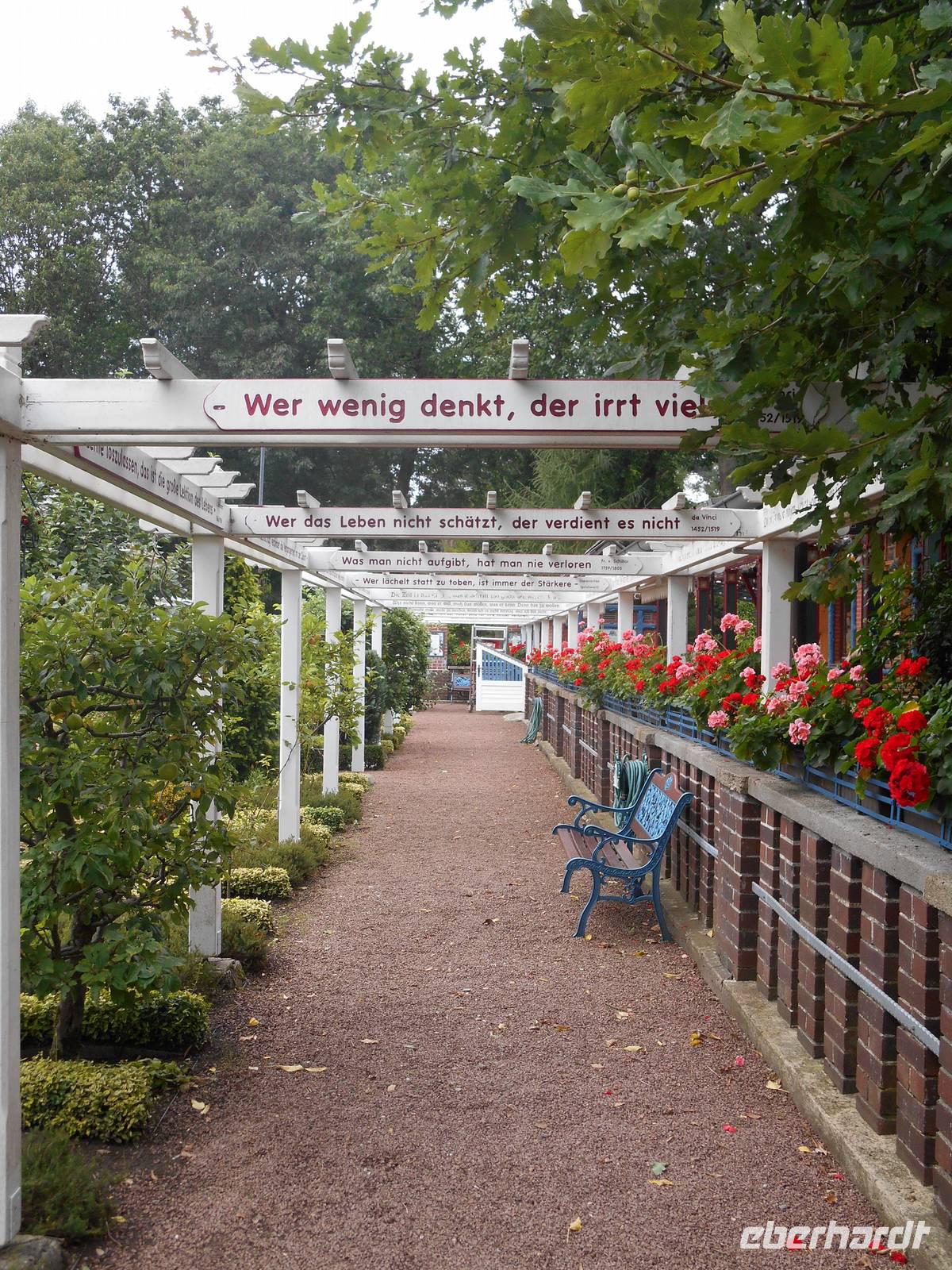 Kurz nach 9 Uhr starteten wir zum Weltvogelpark Walsrode, denn dieser öffnet leider erst um 10 Uhr! Der Park am Nordrand Walsrodes ist weit mehr als nur ein Vogelzoo! Er ist ein 24 Hektar großer, bestens gepflegter Park, in dem allein 120 Rhododendren- und 70 Rosenarten blühen! Hier leben über 4.000 Vögel 675 verschiedener Arten und auch im Artenschutz ist der Park sehr aktiv. Wasserläufe und Wasserfälle, ein Eulen- und Regenwaldhaus sorgen für ein abwechslungsreiches Ambiente. Nicht versäumen durften wir übrigens die täglichen Attraktionen bzw. Shows, zum Beispiel die Fütterung von Pinguinen bzw. Pelikanen und die größte Flughow Europas mit Greifvögeln, darunter auch dem Kondor! Der Park ist einzigartig und so manch einer hätte ganz sicher hier noch etwas mehr Zeit verbracht! Wir mussten jedoch weiter, denn am Nachmittag sollten wir eine Entdeckungstour durch das sog. „Heidekastell Iserhatsche" erleben. Keiner konnte sich so richtig etwas darunter vorstellen, unsere Neugier war geweckt... Verrückter geht es übrigens kaum, denn hier bei Bispingen huldigt ein Berliner Malermeister den Hohenzollern, lässt mehrmals täglich einen Vulkan ausbrechen und hat für sich vorausschauend schon einen Sitzsarg in der Bibliothek und eine Arche Noah im Garten stehen - unglaublich, aber wahr...! Wir wurden am Eingang höchstpersönlich von diesem Berliner Malermeister, Herrn Schulz-Ebschbach, empfangen. Dieser erzählte uns kurz aus seinem Leben und seinen Visionen. Zunächst einmal hat er das alte Jagdschloss, in dem er und seine Frau leben, innen vollständig zu einem Tempel des Preußentums, der Hohenzollern und seiner selbst umgestaltet. Hier hat er das Diana-Zimmer aus dem Schloss Sanssouci nachgebaut und mit kostbaren Biedermeiertapeten ausgeschmückt. Noch prunkvoller ist das königlich-preußische Esszimmer aus Sanssouci mit vergoldetem Gipsstuck und Muranoglas-Leuchtern. Von einer Tastatur am Kopfende der Tafel aus kann das Spiel der Glocken im eisernen Glockenbaum auf der Terrasse bedient werden. In der Bibliothek steht der Sitzsarg des heutigen Hausherrn, ins bereitliegende Totenhemd ist eine Handytasche eingenäht - für den Fall, dass der Tod doch ein Irrtum war! Probegesessen hat er schon und auch der Beisetzungszug mit Pferd und Wagen wurde bereits geprobt. Das Pendant zum Jagdschloss bildet das Heidekastell „Montagnetto". Es wirkt mit seinen Zinnen und Türmchen wie eine Burg am Fels mit Wasserfall, überragt von einem lavarot gestrichenen Vulkanschlot. Der spuckt nämlich auf Knopfdruck unter großem Getöse Feuer! Im Schlossinnern befindet sich auch ein Standesamt, das einzige mit Garantieschein - so wurde es uns zumindest erzählt...! Auch das aufnahmebereite Mausoleum des Visionärs fanden wir hier. Außerdem Sammlungen ohne Ende, unter anderem die weltgrößte Sammlung gefüllter Bierflaschen und eine Streichholzschachtelsammlung - der absolute Wahnsinn und ganz sicher nicht für jedermann nachvollziehbar! Fazit: Iserhatsche wurde von uns Allen sehr unterschiedlich aufgenommen - von schräg, skurril bis bewundernswert - auf alle Fälle unvergesslich im Positiven oder Negativen!