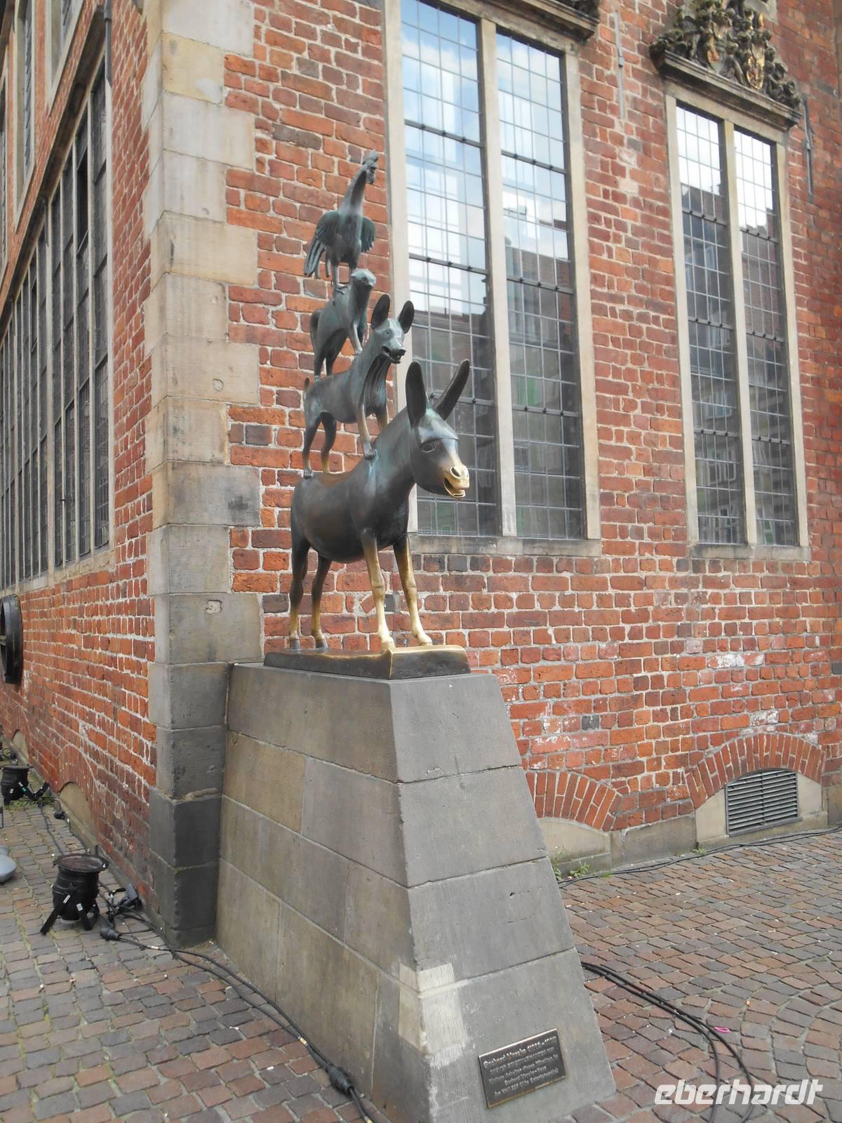 Der heutige Tag stand ganz im Zeichen der Hansestadt Bremen. Unsere Stadtführerin Helga Hauf erwartete uns im Zentrum der Stadt. Wir unternahmen zunächst eine kleine orientierende Rundfahrt durch die zu beiden Seiten der Weser gelegene Stadt und gewannen dadurch erste Eindrücke. Später spazierten wir gemeinsam durch das legendäre Schnoor-Viertel, wo die kleinen Häuser aus dem 15. und 16. Jahrhundert wie Perlen auf einer Schnur in Bremens ältestem Viertel dicht aneinander gereiht sind. Weiter ging es zum Marktplatz, welcher die „Gute Stube" in Bremen ist. Ein Platz, der übrigens trotz - oder gerade wegen - der 1.200-jährigen Geschichte besonders lebendig ist! Das prächtigste Gebäude am Marktplatz ist sicher das Rathaus, davor zeugt der stolze Roland für den Freiheitswillen der Stadt. Beide gehören zum UNESCO-Welterbe. Dreht man sich auf dem Hanseatenkreuz beim Roland einmal im Uhrzeigersinn, dann sieht man den St. Petri Dom, die Bürgerschaft und den Schütting. Natürlich durfte auch ein Besuch bei der bekanntesten Darstellung der Stadtmusikanten an der Westseite des Rathauses nicht fehlen - es ist die Bronzeplastik des Künstlers Gerhard Marcks von 1951. Die Ursprünge des Märchens liegen bereits im Mittelalter. Bei allen Fassungen blieb der Kern der Handlung, dass sich die Schwachen („niedere Tiere", Alte etc.) durch ein solidarisches Handeln erfolgreich gegen die Starken (früher beispielsweise Wappentiere der Adligen) durchsetzten. Anfang des 19. Jahrhunderts haben die Brüder Grimm die Geschichte aufgeschrieben. Offensichtlich beruht diese auf dem Hintergrund, dass seit 1339 die in der Hansestadt bekannten „Stadt- und Raths-Musici" vom Turm der Kirche „Unser Lieben Frauen" bliesen oder bei Festen spielten. Diese „Stadtmusikanten" nahmen - wie im Märchen - immer wieder fahrende Musikanten auf. Die Bekanntheit des Märchens drückt sich auch durch die Denkmäler aus, die den vier Tieren Esel, Hund, Katze und Hahn weltweit gesetzt wurden. Abschließend gelangten wir in die nahe gelegene Böttcherstraße. Früher lebten in der Böttcherstraße die Fassmacher, deren Berufsbezeichnung sich vom Ausdruck „Bottich" für Fass herleitet. Heute sind in der kleinen Gasse Kunst und Kunsthandwerk zuhause. Anfang des 20. Jahrhunderts begann der Bremer Kaffeekaufmann Ludwig Roselius damit, nach und nach die Häuser der verfallenen Straße anzukaufen. Er ließ sie zu einem architektonisch außergewöhnlichen und gleichzeitig einheitlichen Straßenzug neu erbauen. Auch für einen individuellen Stadtbummel blieb etwas Zeit und so konnten wir uns die ein oder andere Bremer Sehenswürdigkeit noch etwas näher anschauen. Im Hotel zurück, erwartete uns heute ein Bauernabend mit regionalen Spezialitäten - sehr lecker! Auch musikalisch wurden wir durch den Abend begleitet - 3 Akkordeon-Spieler luden zum Mitsingen ein!
