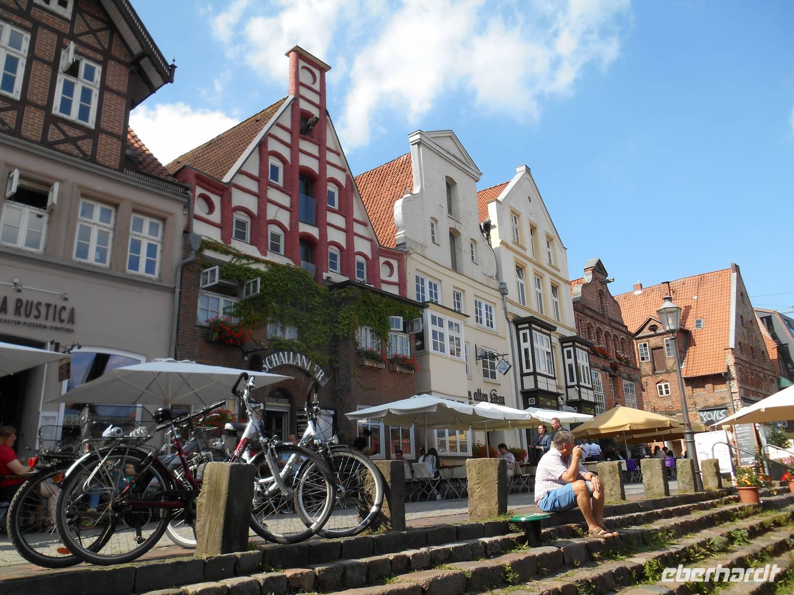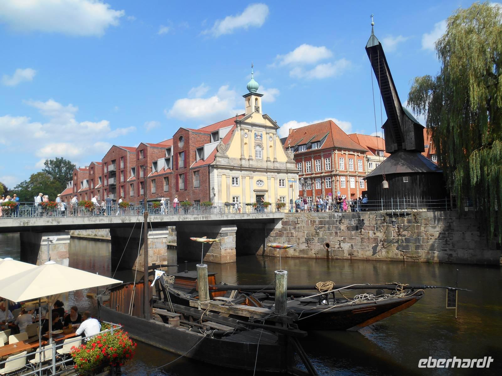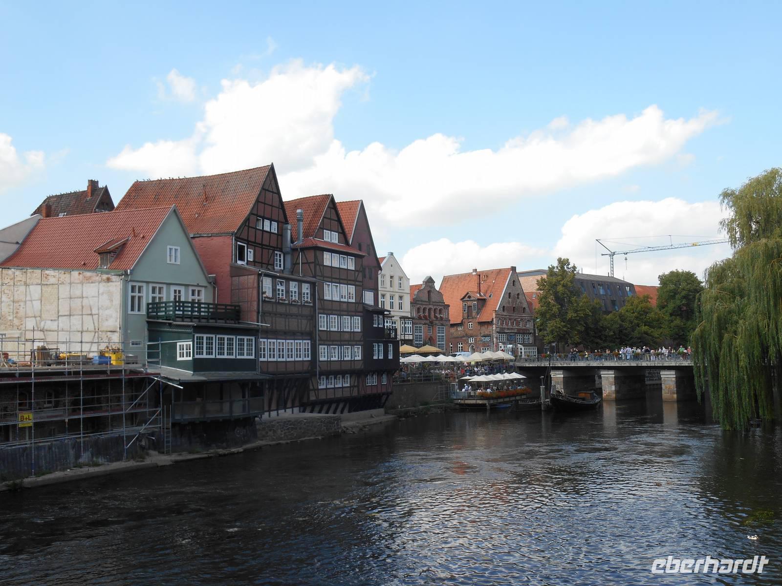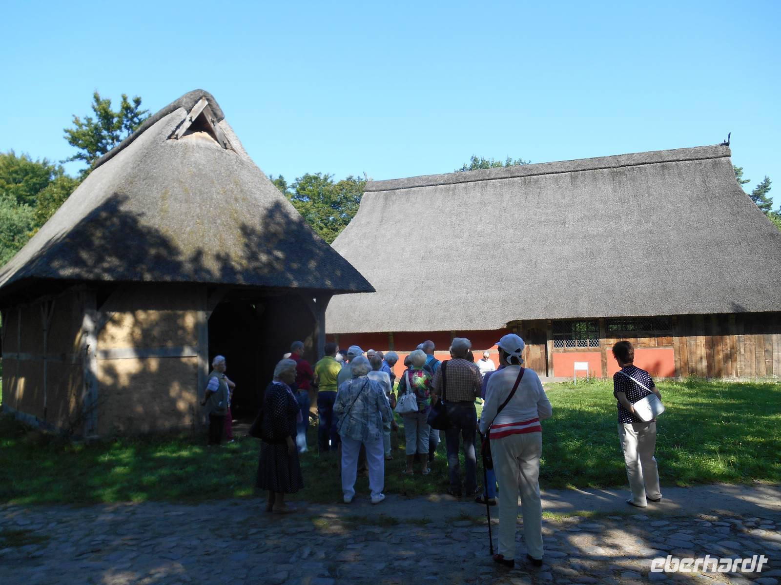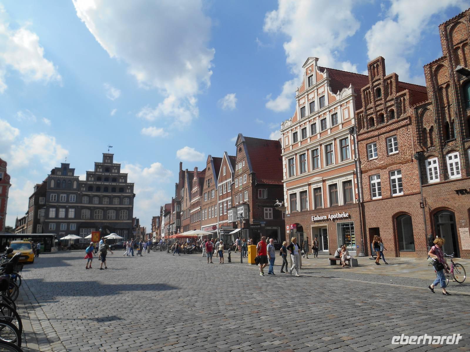 Viel Sonnenschein sollte unser heutiger Begleiter sein! Das Freilichtmuseum Hösseringen war das erste Ziel des Tages. Wir betraten das 1975 eröffnete Museumsdorf durch eine moderne Eingangshalle mit einem großzügigen Museumsshop. Es ist das größte Freilichtmuseum der Heide und hier wurden wir zu einer interessanten Führung erwartet, wo wir uns immerhin einen Eindruck darüber verschaffen konnten, wie die Heidjer früher lebten. Die hierher versetzten historischen Hof- und Wirtschaftsgebäude stehen in hügeliger Landschaft mit Wald- und Heidefläche und werden von Schafen und Schweinen belebt. Auch ein Schmied zeigt seine Handwerkskünste! Gegen Mittag mussten wir dann leider schon wieder weiter - der Besuch von Lüneburg stand an! Die Stadt, die der Heide ihren Namen gab, ist eine der schönsten des Nordens, denn die Lüneburger Innenstadt ist mit ihren historischen Gebäuden und mittelalterlichem Charme überregional attraktiv! Salz machte Lüneburg im Mittelalter zu einer reichen Stadt. Dazu gibt es auch eine Sage: Vor mehr als tausend Jahren, als noch unermessliche Wälder das Lüneburger Land bedeckten, trug es sich zu, dass mehrere Jäger der Spur eines Wildschweins folgten, die durch Sümpfe und Brüche an der Ilmenau entlang führte. Es währte nicht lange, da lenkte die Spur seitwärts in eine hügelige und trockene Gegend. Wie staunten die Jäger, als sie bald an einem sonnigen Hang eine mächtige Salzsau schlafend fanden, wie sie bisher noch keine gesehen hatten; denn sie war nicht schwarz, sondern hatte schneeweiße Borsten! Sie erlegten das seltsame Tier und forschten mit Eifer nach der Ursache solcher Färbung. Als sie mit der Hand durch die Borsten strichen, merkten sie, dass Salzkörnchen an ihnen klebten - so dicht, als wäre das Tier mit weißen Borsten bedeckt. Sie folgten der Fährte des Tieres zurück und fanden einen Tümpel, in dem das Schwein gesuhlt hatte. Das Wasser des Sumpfes war von salzigem Geschmack und man wusste jetzt, wie die Sau zu den weißen Borsten gekommen war. So zeigte eine wilde Sau den Lüneburgern eine Quelle unerschöpflichen Reichtums. Die Salzsau wurde weit und breit bekannt, und die Bürger der Stadt ehrten sie, indem sie zum Andenken einen Schinkenknochen des Tieres in einen Glaskasten im Rathaus verwahrten.