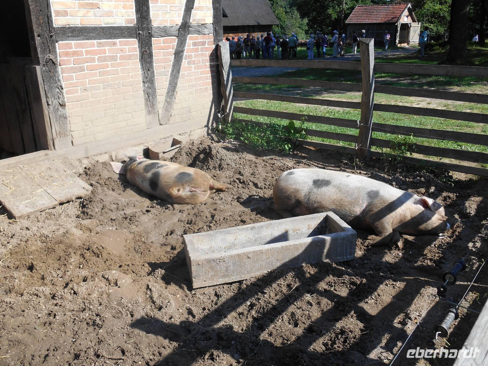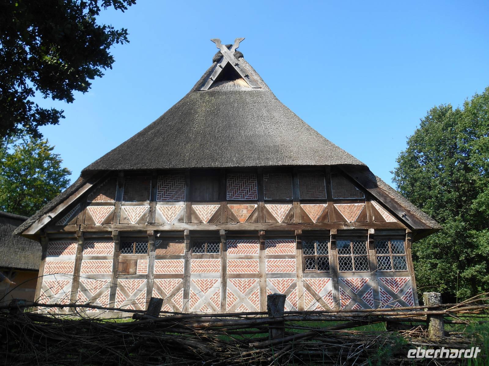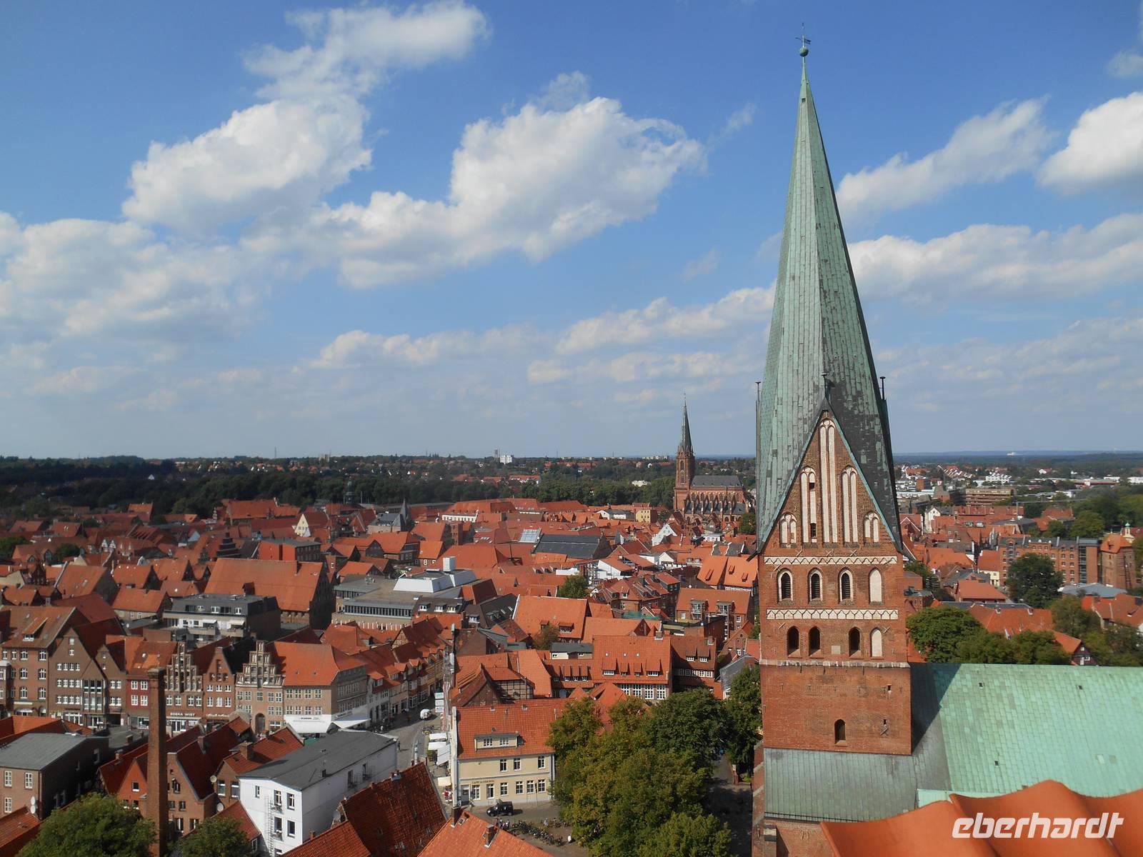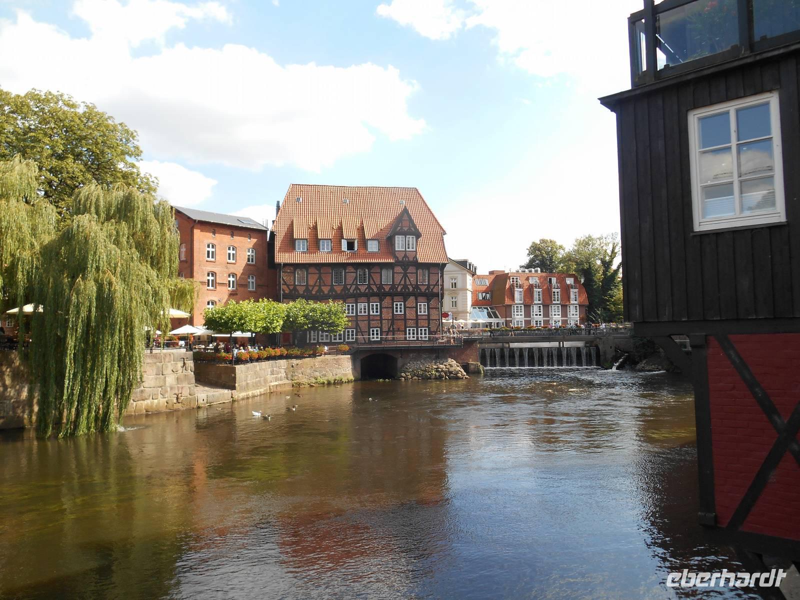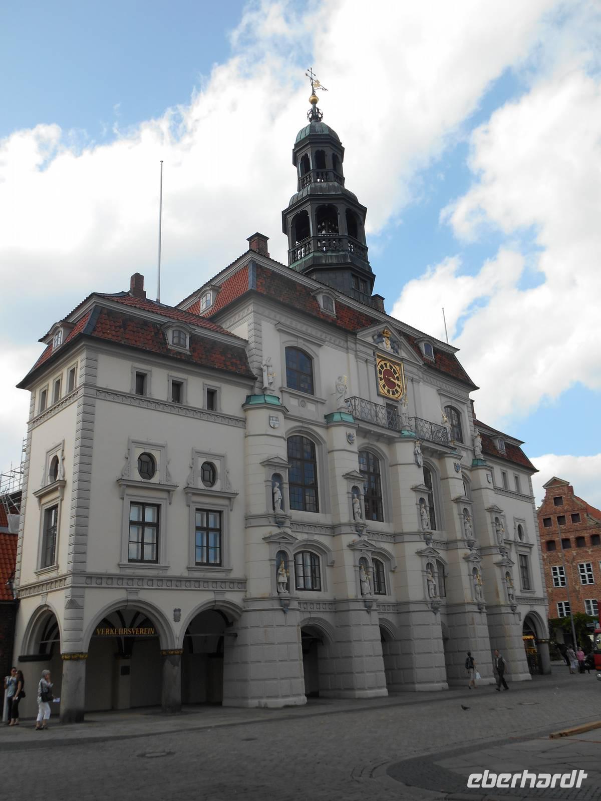 Viel Sonnenschein sollte unser heutiger Begleiter sein! Das Freilichtmuseum Hösseringen war das erste Ziel des Tages. Wir betraten das 1975 eröffnete Museumsdorf durch eine moderne Eingangshalle mit einem großzügigen Museumsshop. Es ist das größte Freilichtmuseum der Heide und hier wurden wir zu einer interessanten Führung erwartet, wo wir uns immerhin einen Eindruck darüber verschaffen konnten, wie die Heidjer früher lebten. Die hierher versetzten historischen Hof- und Wirtschaftsgebäude stehen in hügeliger Landschaft mit Wald- und Heidefläche und werden von Schafen und Schweinen belebt. Auch ein Schmied zeigt seine Handwerkskünste! Gegen Mittag mussten wir dann leider schon wieder weiter - der Besuch von Lüneburg stand an! Die Stadt, die der Heide ihren Namen gab, ist eine der schönsten des Nordens, denn die Lüneburger Innenstadt ist mit ihren historischen Gebäuden und mittelalterlichem Charme überregional attraktiv! Salz machte Lüneburg im Mittelalter zu einer reichen Stadt. Dazu gibt es auch eine Sage: Vor mehr als tausend Jahren, als noch unermessliche Wälder das Lüneburger Land bedeckten, trug es sich zu, dass mehrere Jäger der Spur eines Wildschweins folgten, die durch Sümpfe und Brüche an der Ilmenau entlang führte. Es währte nicht lange, da lenkte die Spur seitwärts in eine hügelige und trockene Gegend. Wie staunten die Jäger, als sie bald an einem sonnigen Hang eine mächtige Salzsau schlafend fanden, wie sie bisher noch keine gesehen hatten; denn sie war nicht schwarz, sondern hatte schneeweiße Borsten! Sie erlegten das seltsame Tier und forschten mit Eifer nach der Ursache solcher Färbung. Als sie mit der Hand durch die Borsten strichen, merkten sie, dass Salzkörnchen an ihnen klebten - so dicht, als wäre das Tier mit weißen Borsten bedeckt. Sie folgten der Fährte des Tieres zurück und fanden einen Tümpel, in dem das Schwein gesuhlt hatte. Das Wasser des Sumpfes war von salzigem Geschmack und man wusste jetzt, wie die Sau zu den weißen Borsten gekommen war. So zeigte eine wilde Sau den Lüneburgern eine Quelle unerschöpflichen Reichtums. Die Salzsau wurde weit und breit bekannt, und die Bürger der Stadt ehrten sie, indem sie zum Andenken einen Schinkenknochen des Tieres in einen Glaskasten im Rathaus verwahrten.