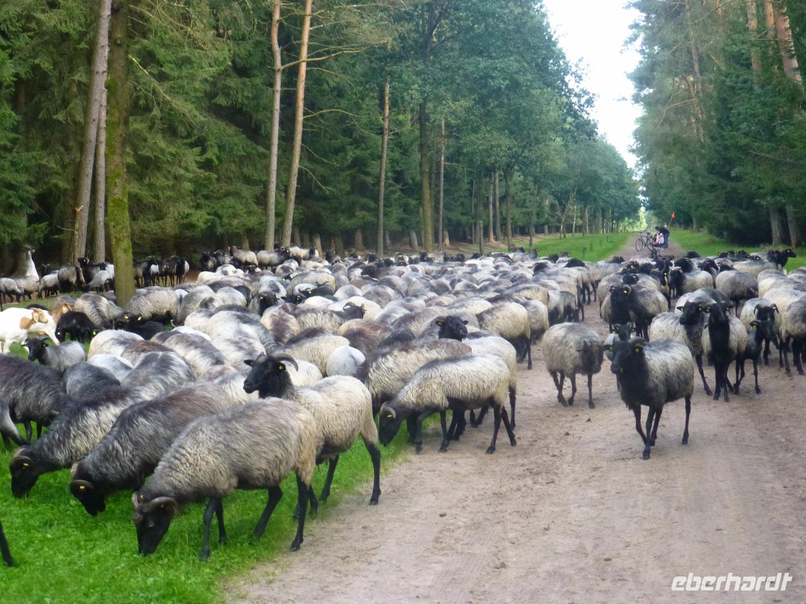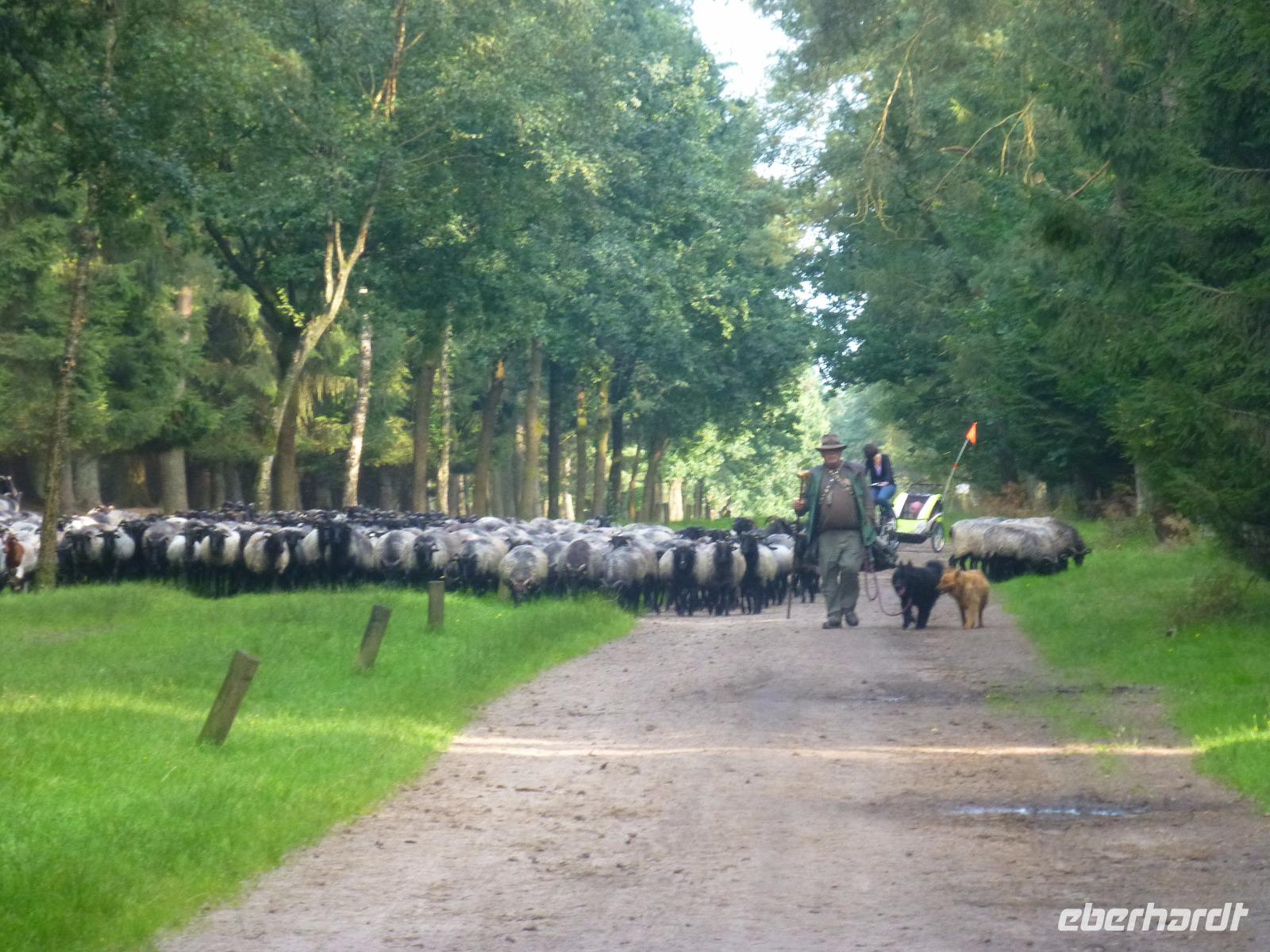 Den ganzen Tag verbrachten wir in der Lüneburger Heide. Wir fuhren nach Schnevedingen zum Heidekiosk Höpen. Am Schäferhof konnten wir beobachten wie die Heidschnucken aus dem Stall getrieben wurden. Sie machten sich auf in die Heide. Denn ohne diese Herden würde die Heideflächen nicht mehr existieren. Anschließend unternahmen einige einen Spaziergang durch die Heide oder besuchten den einmaligen Heidegarten. Dieser verfügt über 150 verschiedene Arten und blüht das ganze Jahr. In Niederhaverbeck warteten schon die Pferdekutschen auf uns. Direkt durch die Heide führte unser Weg in das kleine Heidedorf Wilsede. Dort hatten wir einen kleinen Aufenthalt, zu einem Spaziergang durch das Dorf, einen Besuch im Heimatmuseum oder zum Kaffeetrinken. Durch den Steinernen Grund und vorbei am Wilseder Berg sahen wir besonders schön die Heideblühte. Weiter fuhren wir nach Neuenkirchen zum Schäferhof. Frau Timm zeigte uns den Hof und wir erfuhren interessantes über die Heidschnucken und über die verschiedenen Getreidesorten. Wir liefen dem Schäfer entgegen der mit seiner Herde aus dem Wald kam um die Heidschnucken ins „Bett" zu bringen. Ein tolles Erlebnis als die Herde auf uns zu kam. Jetzt war es doch schon etwas spät und wir freuten uns auf das Abendessen.