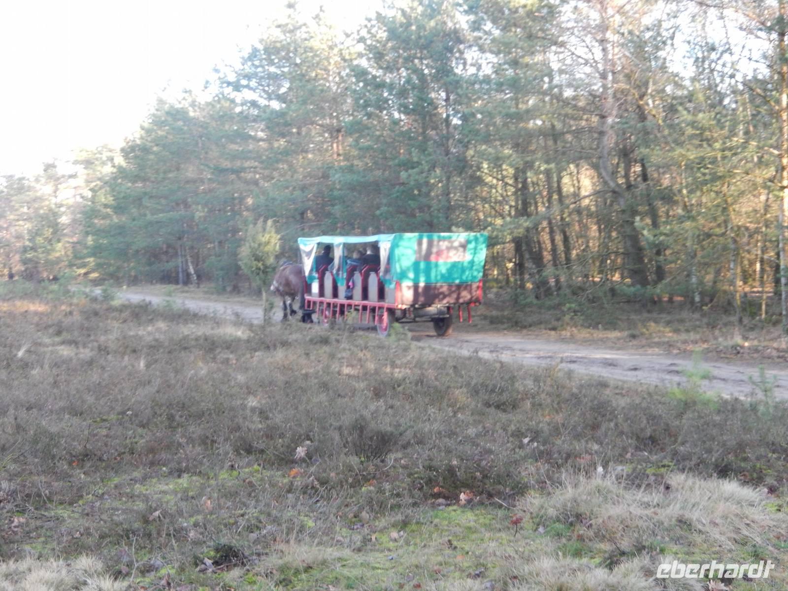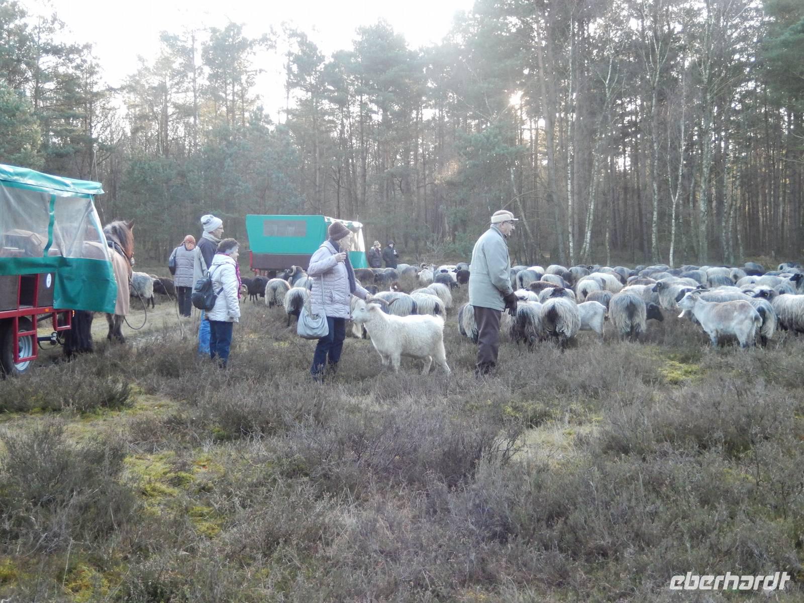 In allen Büchern und Museen wird immer wieder betont, dass die Heide eine Kulturlandschaft ist, die durch den Mensch entstand und auch von ihm erhalten werden muss. Wir wollten heute auch das Naturschutzgebiet Lüneburger Heide näher kennenlernen. Durch Hodenhagen, Walsrode und Visselhövede hindurch führte uns der Weg in die Stadt Schneverdingen, die vor allem durch das jährlich stattfindende Heideblütenfest Bekanntheit erlangt hat. Im Heidegarten, wo sich rund 150 verschiedene Heidesorten befinden, ist auch im Winter immer etwas zu sehen. Mit der Pferdekutsche fuhren wir dann 2 Stunden durch den schönen Naturpark. Als kleine Überraschung zum Neujahrstag trafen wir im Wald auf den Schäfer mit seiner Heidschnuckenherde, der auch schon einen heißen Glühwein für uns vorbereitet hatte. Gut gelaunt ging es über Stock und Stein weiter durch den Wald bis zurück nach Schneverdingen.