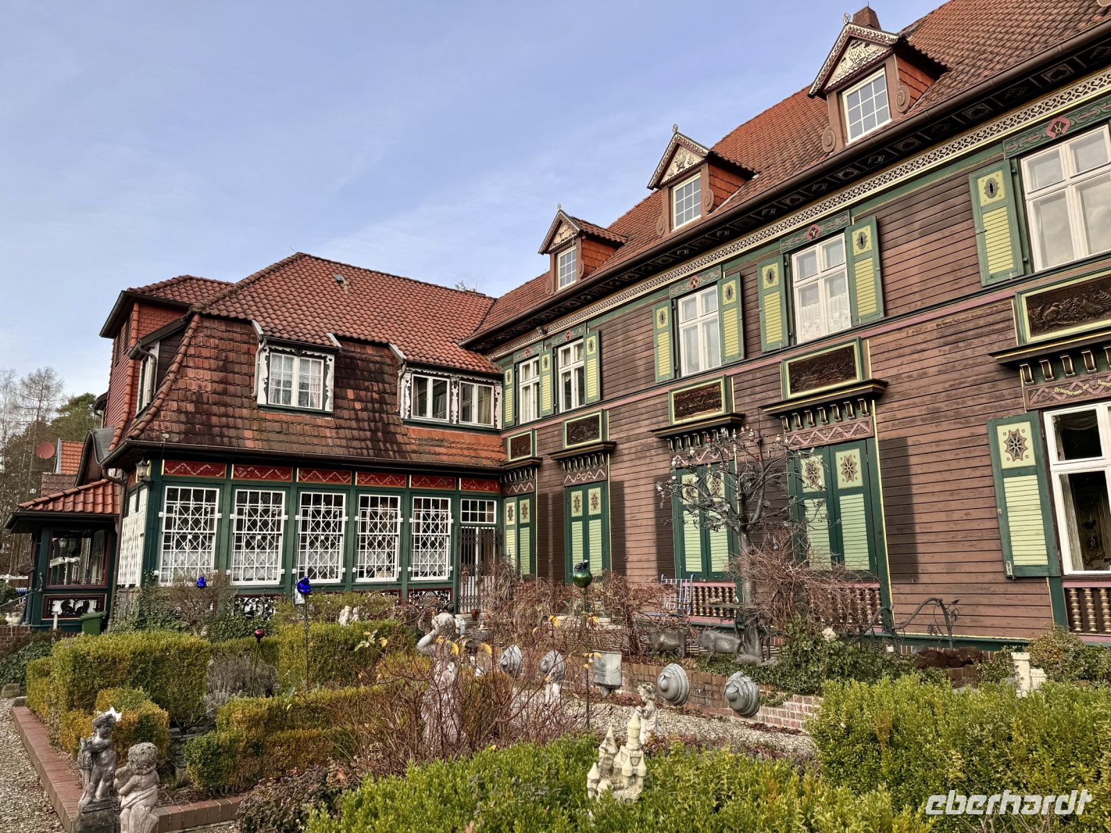 Nach einem ausgiebigen Frühstück begeben wir uns am Vormittag auf den Weg nach Lüneburg, die Stadt der die Heide ihren Namen zu verdanken hat. Anders als in Celle erwartet uns hier eine faszinierende Backsteinarchitektur, die wir bei einem sehr interessanten Stadtspaziergang ganz intensiv bestaunen können. Um die Mittagszeit bleibt uns dann auch noch Zeit um die Stadt mit Blick auf unsere eigenen Interessen zu erkunden bevor wir am frühen Nachmittag unsere Fahrt nach Bispingen fortsetzen. Hier angekommen besuchen wir die wohl faszinierendste Sehenswürdigkeit die sich in der Heide finden lässt – den Landschaftspark und das Heide-Kastell Iserhatsche. Es fällt sehr schwer genau zu beschreiben was genau wir in der Iserhatsche vorfinden, denn sie ist Kunstwerk, Wohnung, Museum und Tempel in einem. Neben dem Jagdschloss im schwedischen Holzbaustiel, dem philosophisch-barocken Eisenpark, der Arche Noah und einem künstlichen Berg (Montagnetto) mit Wasserfall, haben wir auch die Möglichkeit uns die größte Bierflaschen-Sorten-Sammlung der Welt anzugucken. Überwältigt von diesem Gemisch aus Vision und etwas Wahnsinn verlassen wir am späten Nachmittag dieses Spektakel des Berliner Malermeisters Uwe Schulz-Ebschbach wieder - aber nicht, bevor wir uns am Bus mit einem heißen Glühwein gewärmt haben - und treten unseren Rückweg zum Hotel an.