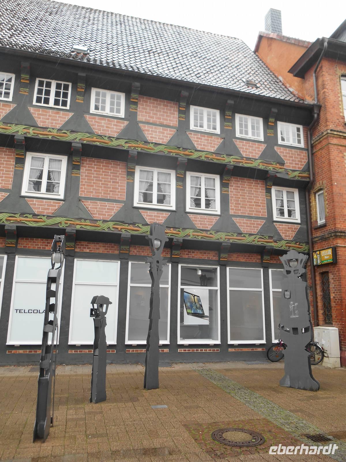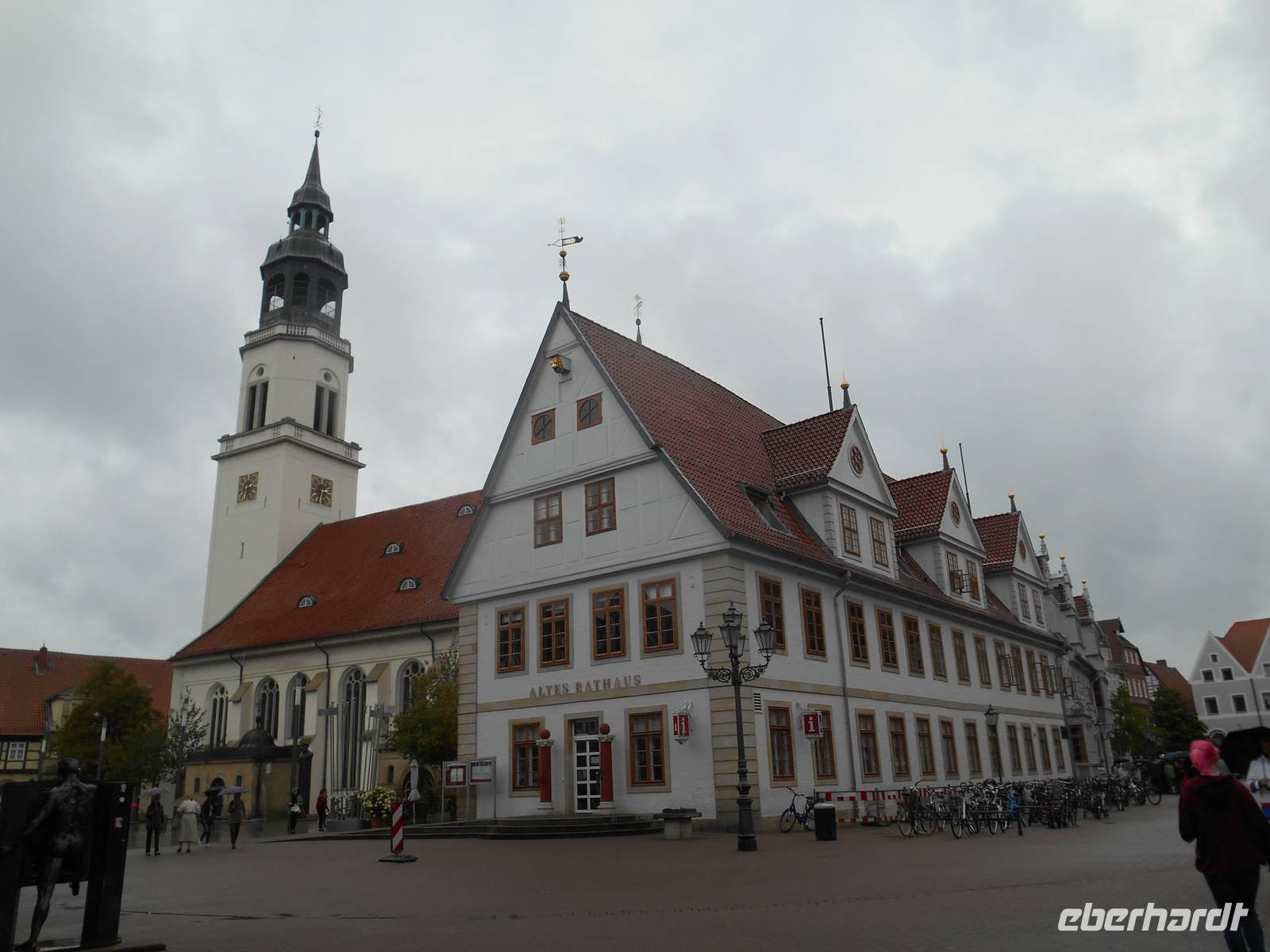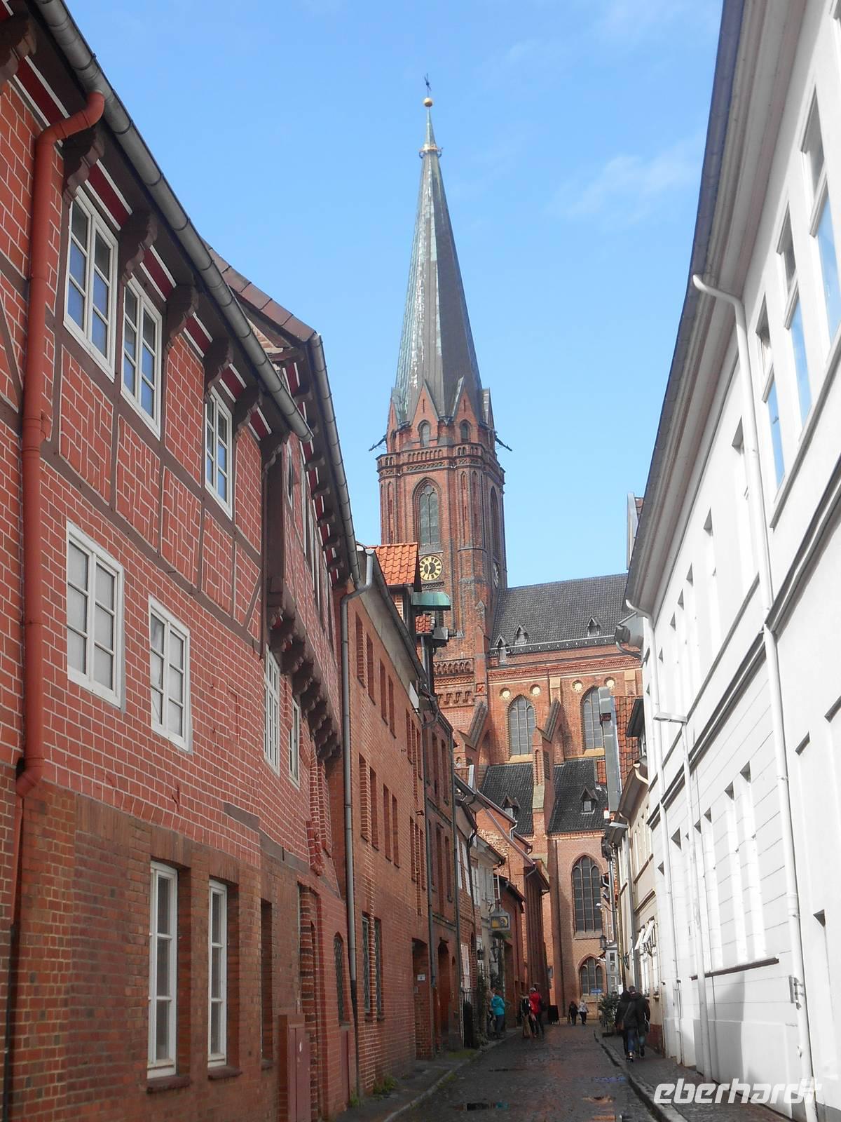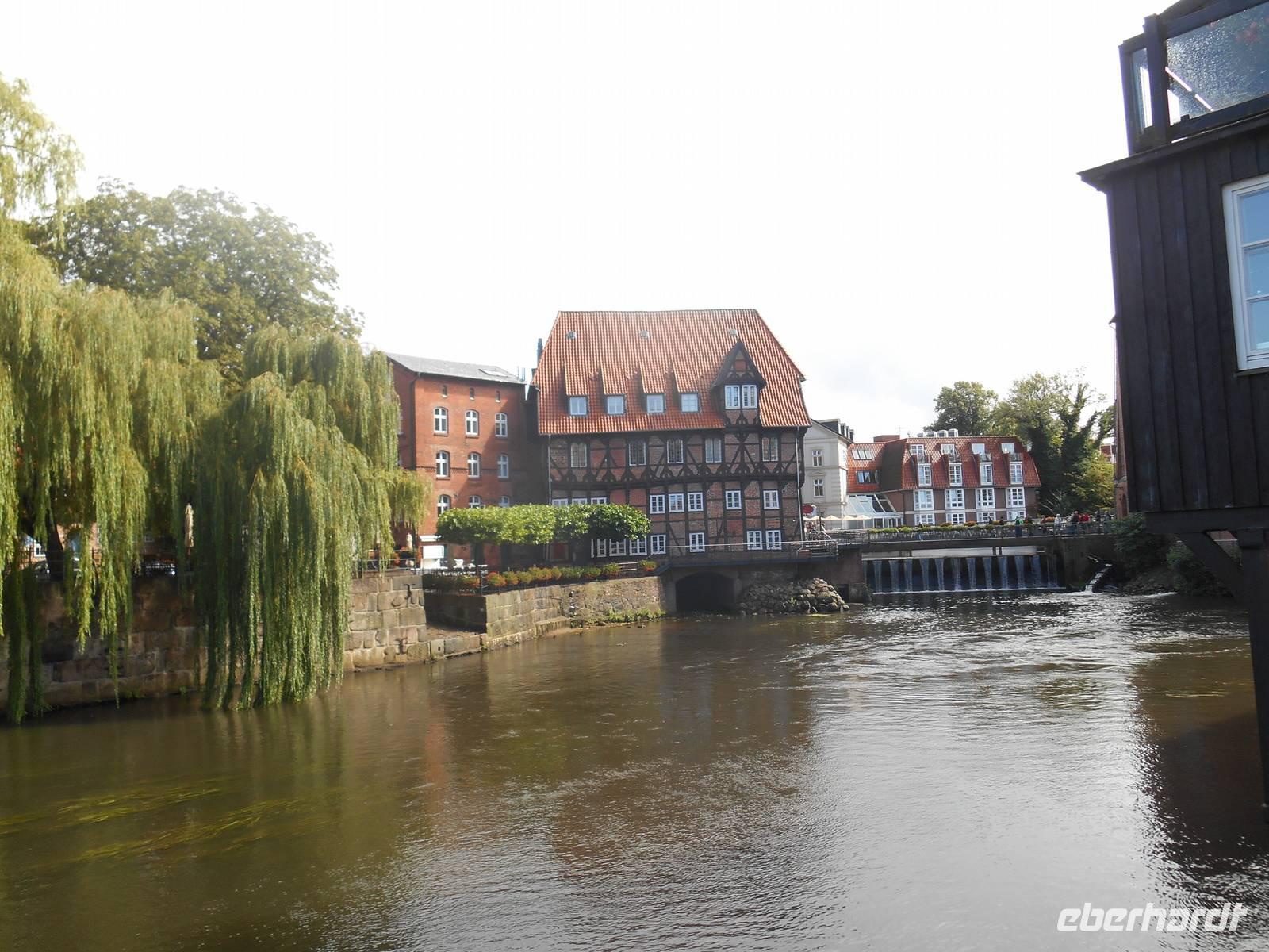 Das Freilichtmuseum Hösseringen war das erste Ziel des heutigen Tages. Wir betraten das 1975 eröffnete Museumsdorf durch eine moderne Eingangshalle mit einem großzügigen Museumsshop. Es ist das größte Freilichtmuseum der Heide und hier wurden wir zu einer interessanten Führung erwartet, wo wir uns immerhin einen Eindruck darüber verschaffen konnten, wie die Heidjer früher lebten. Die hierher versetzten historischen Hof- und Wirtschaftsgebäude stehen in hügeliger Landschaft mit Wald- und Heidefläche und werden von Schafen und Schweinen belebt. Auch ein Schmied zeigt seine Handwerkskünste! Gegen Mittag mussten wir dann leider schon wieder weiter - der Besuch von Lüneburg stand an! Die Stadt, die der Heide ihren Namen gab, ist eine der schönsten des Nordens, denn die Lüneburger Innenstadt ist mit ihren historischen Gebäuden und mittelalterlichem Charme überregional attraktiv! Salz machte Lüneburg im Mittelalter zu einer reichen Stadt. Dazu gibt es auch eine Sage: Vor mehr als tausend Jahren, als noch unermessliche Wälder das Lüneburger Land bedeckten, trug es sich zu, dass mehrere Jäger der Spur eines Wildschweins folgten, die durch Sümpfe und Brüche an der Ilmenau entlang führte. Es währte nicht lange, da lenkte die Spur seitwärts in eine hügelige und trockene Gegend. Wie staunten die Jäger, als sie bald an einem sonnigen Hang eine mächtige Salzsau schlafend fanden, wie sie bisher noch keine gesehen hatten; denn sie war nicht schwarz, sondern hatte schneeweiße Borsten! Sie erlegten das seltsame Tier und forschten mit Eifer nach der Ursache solcher Färbung. Als sie mit der Hand durch die Borsten strichen, merkten sie, dass Salzkörnchen an ihnen klebten - so dicht, als wäre das Tier mit weißen Borsten bedeckt. Sie folgten der Fährte des Tieres zurück und fanden einen Tümpel, in dem das Schwein gesuhlt hatte. Das Wasser des Sumpfes war von salzigem Geschmack und man wusste jetzt, wie die Sau zu den weißen Borsten gekommen war. So zeigte eine wilde Sau den Lüneburgern eine Quelle unerschöpflichen Reichtums. Die Salzsau wurde weit und breit bekannt, und die Bürger der Stadt ehrten sie, indem sie zum Andenken einen Schinkenknochen des Tieres in einen Glaskasten im Rathaus verwahrten.