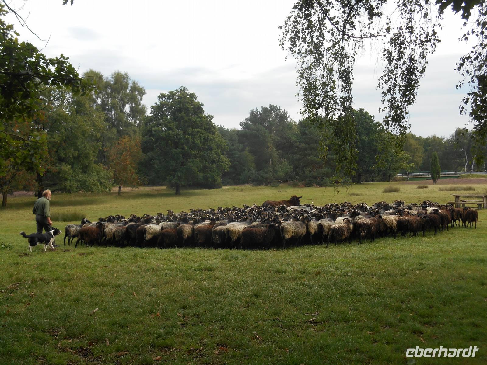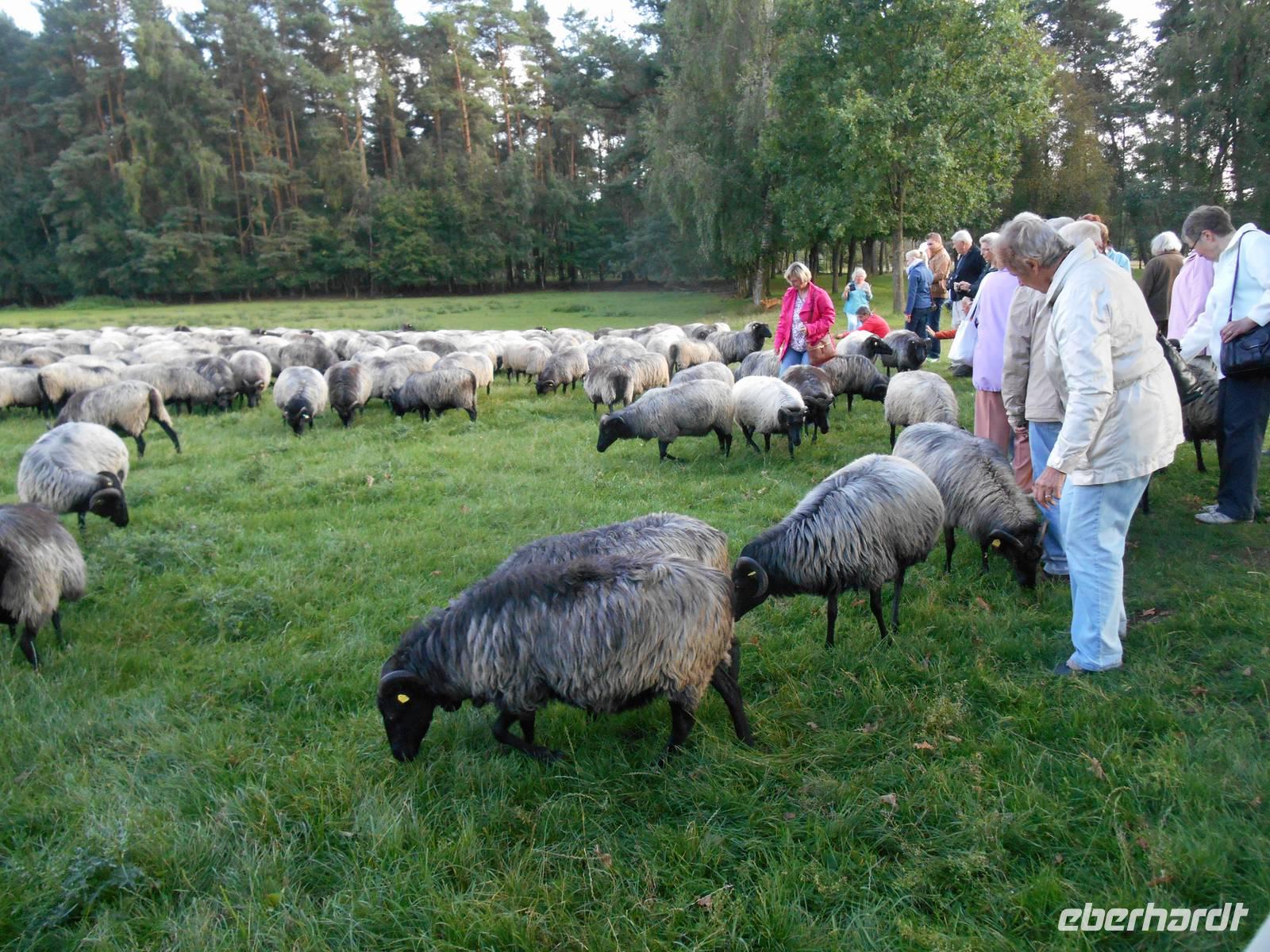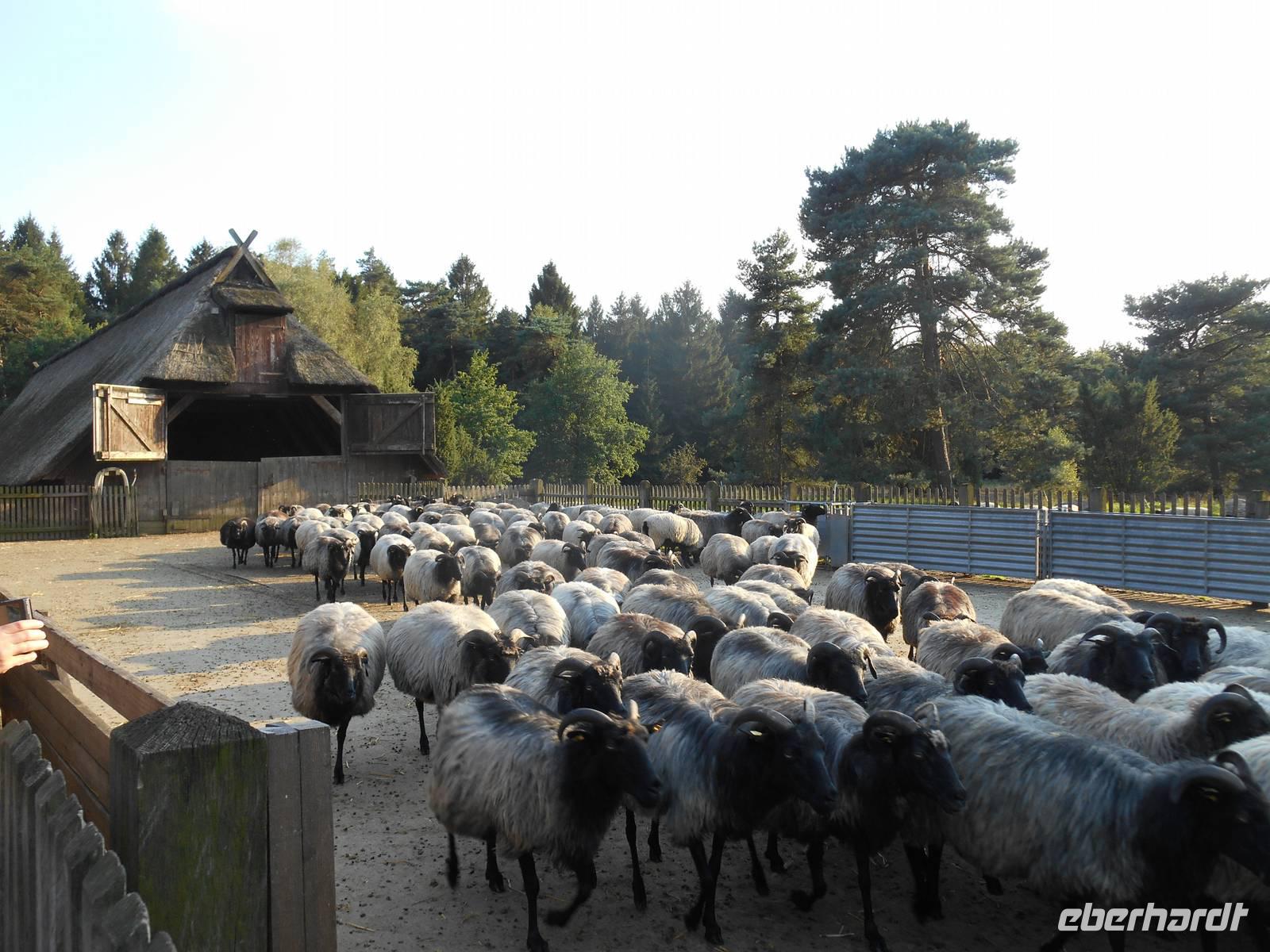 Gut gestärkt vom reichhaltigen Frühstücksbuffet und bei bester Laune fuhren wir am Vormittag in Richtung Schneverdingen. Dort befindet sich das Landschaftsschutzgebiet „Höpen", ein nettes Areal für Wald- und Heidespaziergänge. Am unteren Schafstall erlebten wir zuerst einen sogenannten „Heidschnucken-Austrieb", denn hier verbringt im Sommer eine Heidschnuckenherde die Nächte und der Schäfer treibt seine Herde somit täglich gegen 10.30 Uhr aus dem Übernachtungsquartier aus und gegen 17 Uhr wieder ein - dieses „Spektakel" muss man erlebt haben! Ein gemütlicher Heidespaziergang stand anschließend auf dem Programm! Vom oberen Schafstall gelangten wir innerhalb von nur etwa 20 Gehminuten zum berühmten Heidegarten. 120.000 Exemplare von mehr als 130 verschiedenen Heidesorten bilden hier auf dem Höpen ein eindrucksvolles Ziffernblatt und zeigen darin auch das Schneverdinger Wappen. Von einem niedrigen Aussichtsturm konnten wir die Heide-Uhr am besten überblicken, die Heide stand schließlich mit etwa 80% in der Blüte - eine Wohltat für unsere Augen und ein grandioser Farbteppich! Gegen Mittag erreichten wir Niederhaverbeck, wo wir zu einer entspannten Kutschfahrt rund um den Wilseder Berg erwartet wurden. Die Tour führte uns durch Wald und auch vorbei an ausgedehnten Heideflächen mit wilden Wacholderbüschen. In Wilsede, einem typischen kleinen Heidedorf des Naturschutzparks, legten wir einen Aufenthalt ein und ein Bummel durch den nur knapp 40 Einwohner zählenden Ort gewährte uns einen Einblick über das urig-rustikale Leben hier in der Heide. Wir waren uns alle einig - eine Kutschfahrt durch die Lüneburger Heide muss man erleben! Ach so, der Wettergott meinte es übrigens heute auch sehr gut mit uns! So einen sonnigen Tag mussten wir voll ausnutzen und somit ging es gleich weiter zum „Schäferhof" bei Neuenkirchen. In der historischen Hofanlage des Schäferhofs sind heute noch ein Schäfer, seine Herde und seine Hütehunde zu Hause. Betrieben wird der Hof von einem gemeinnützigen Verein und dieser finanziert sich wiederum u. a. durch den Verkauf von Schnuckenwurst, -fleisch und -schinken. Eine Mitarbeiterin führte uns über den Hof und erklärte uns einige interessante Dinge über die Heidschnucken - u. a. auch, dass den Kern der Herde etwa 400 Mutterschafe und einige Böcke bilden und dass mitsamt der schlachtreifen einjährigen Lämmer die Herdengröße bis zu 1.200 Köpfe erreicht! Der Höhepunkt war für uns allerdings der „Schnuckeneintrieb" am Abend. Ein erlebnisreicher, aber auch langer Tag endete mit einem wiederum sehr guten Abendessen im Hotel „Allerhof".