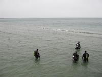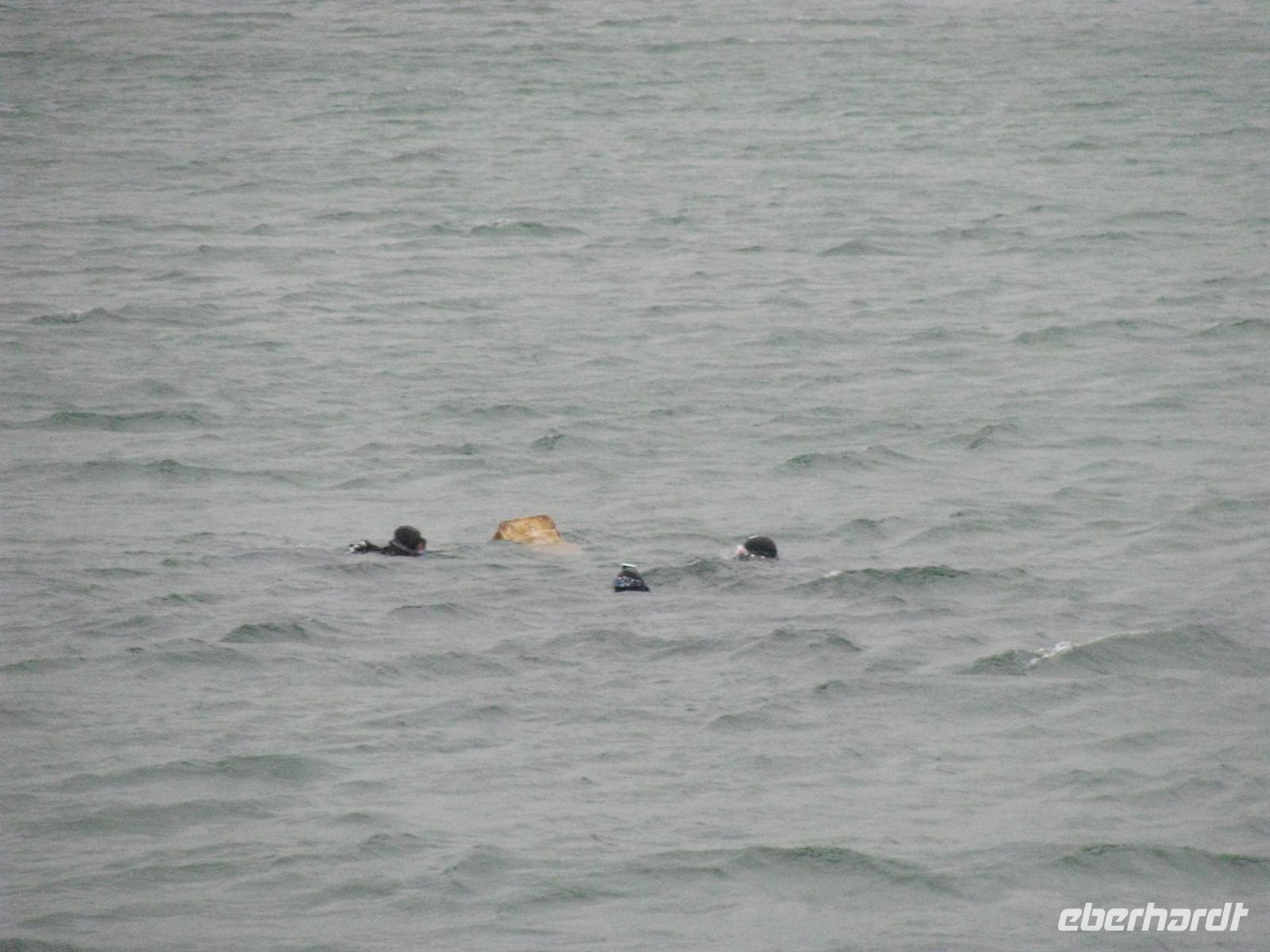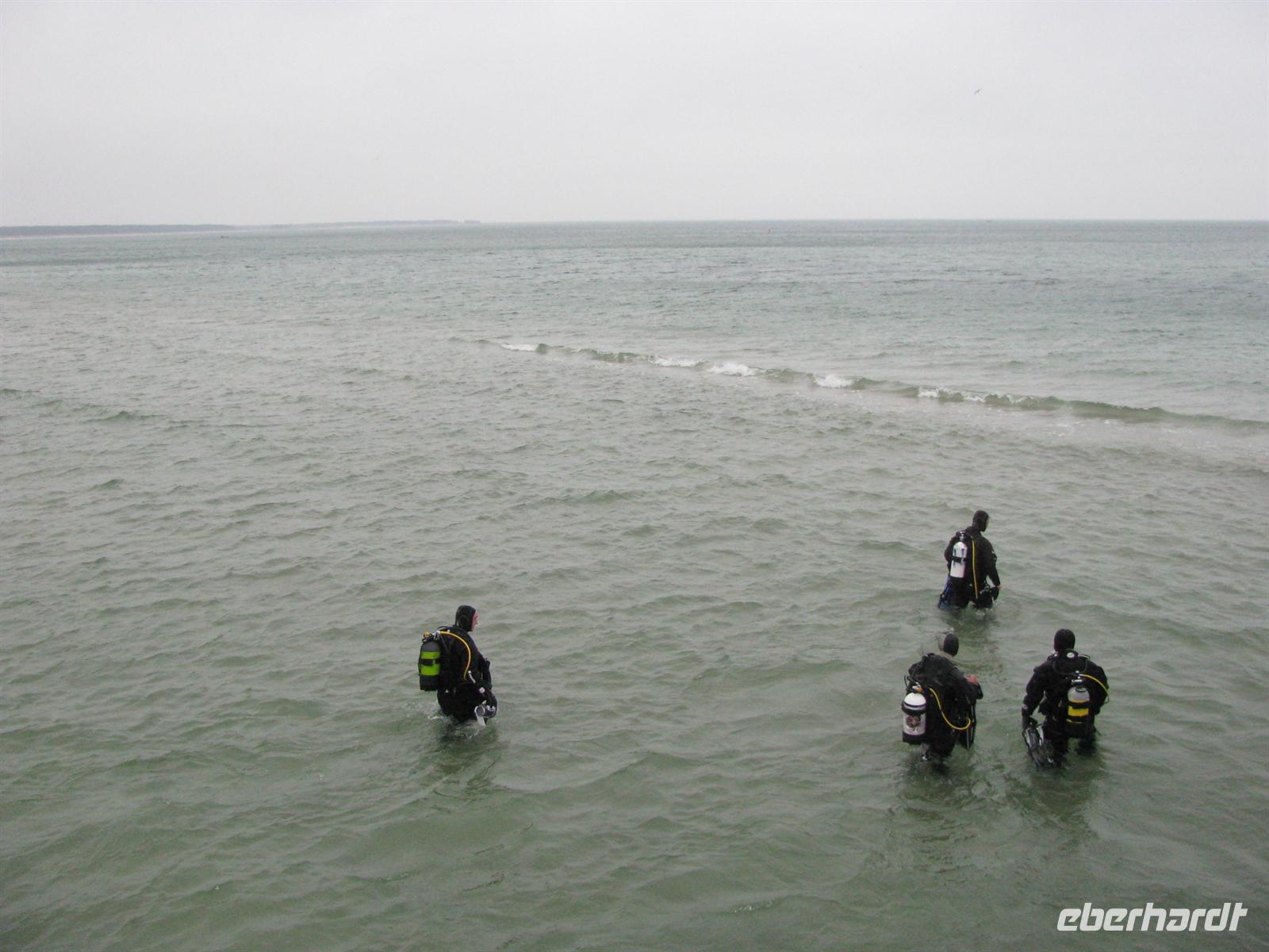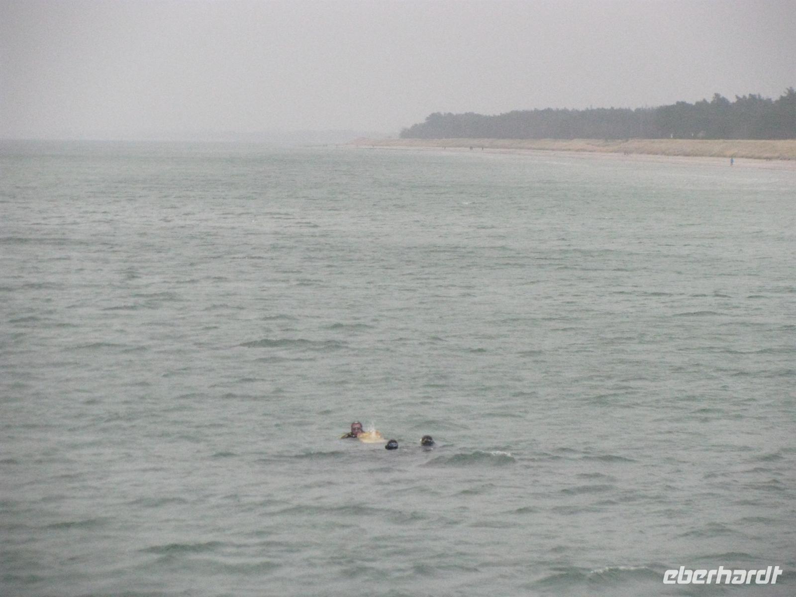 Genau rechtzeitig zum Weihnachtstauchen treffen wir in Prerow ein. Wir spazieren zunächst gemeinsam zur Seebrücke, wo wir auch gleich ein schönes Gruppenfoto "schießen". Dann heißt es: Fertig machen zum Tauchgang! Aber natürlich nicht für uns, sondern für die Profi-Taucher. Es ist Tradition, dass jedes Jahr eine Handvoll mutiger Männer mit Tauchanzügen in die Ostsee steigen, um einen Schatz zu bergen. Nach einiger Zeit unter Wasser und unter Blicken von mehreren hunderten Zuschauern, wird die Schatzkiste gefunden! Die Taucher ziehen die Kiste an den Strand und schon versammelt sich eine große Schar Kinder um die tropfenden Männer. In der Truhe befinden sich Spielsachen und andere Überraschungen für die Kleinen.