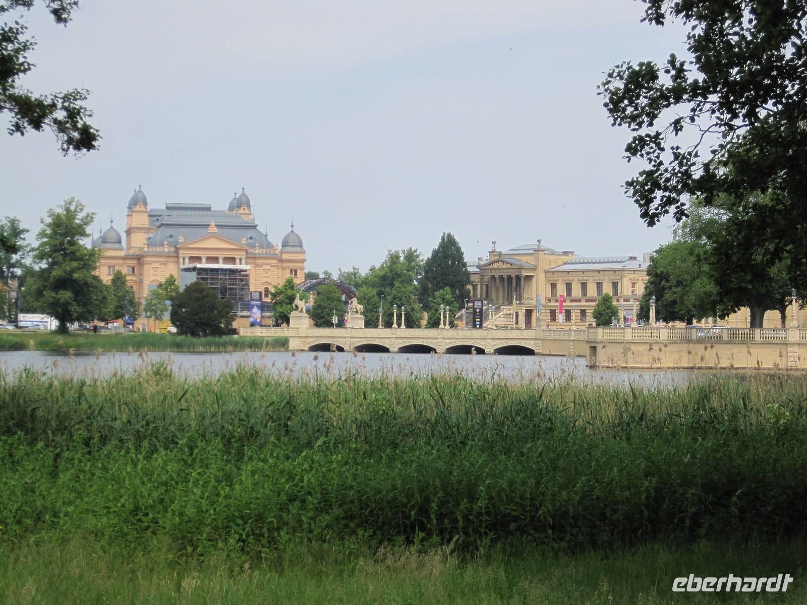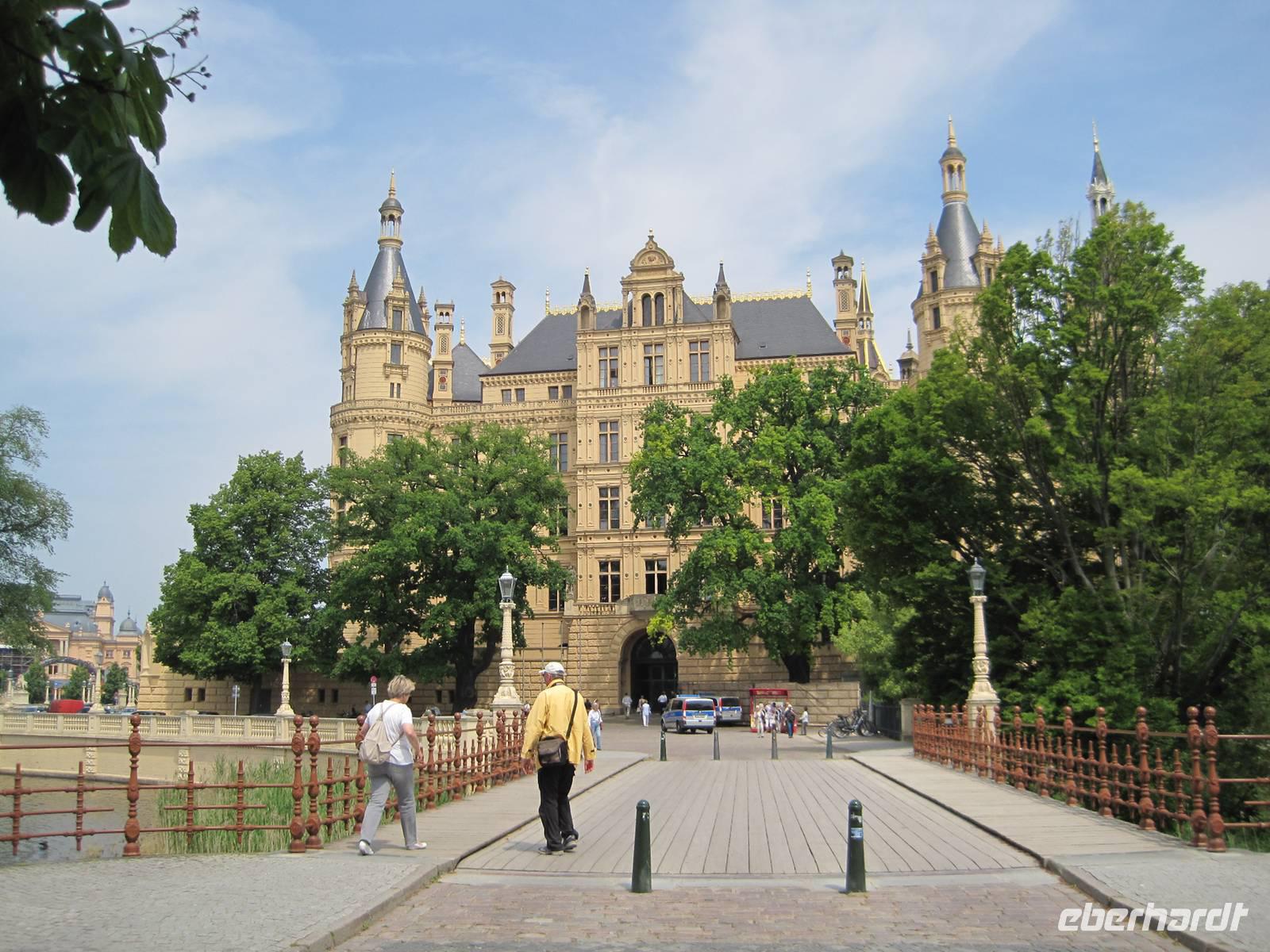 Der Mittwoch fing mit dem guten Buffetessen gegen 8.00 Uhr an und lief harmonisch bis zur Abfahrt um 9.00 Uhr zur Landeshauptstadt Schwerin. Die ca. 1 ½ stündige Anfahrt wurde durch die Einstimmung auf die Stadt- und Schlossführung Schwerin mit der Besonderheiten dieser Stadt verkürzt und damit ein Vorgeschmack auf die Altstadt und vor allem auf das „ Märchenschloss „ und den Burg- und Schlossgarten gegeben. 10.30 Uhr trafen wir unsere 2 Stadtführer. Wir mussten unsere große Reisegruppe teilen , um eine angenehme Stadtführung zu gewährleisten. Das zahlte sich total aus, indem jeder RG, der interessiert war, den Ausführungen von Herrn Völtz gut folgen konnte. Unser Weg führte uns zum Burggarten des Schlosses und dessen schönen Ausgestaltung. Ob die exotischen Bäume, die Grotte oder die Orangerie, bezeugen von einem einmaligem Ambiente um das Schloss. Weiter ging es zum alten Garten und dem beeindruckenden Gebäuden des Theaters und der Galerie. Die netten Straßen der Altstadt führten uns bis zum Markt und dem Dom von Schwerin mit seiner 117,5 m hohen Turmspitze. Am Brunnen der Schweriner verabschiedeten wir Herrn Völtz mit viel Beifall für den kurzweiligen Rundgang.