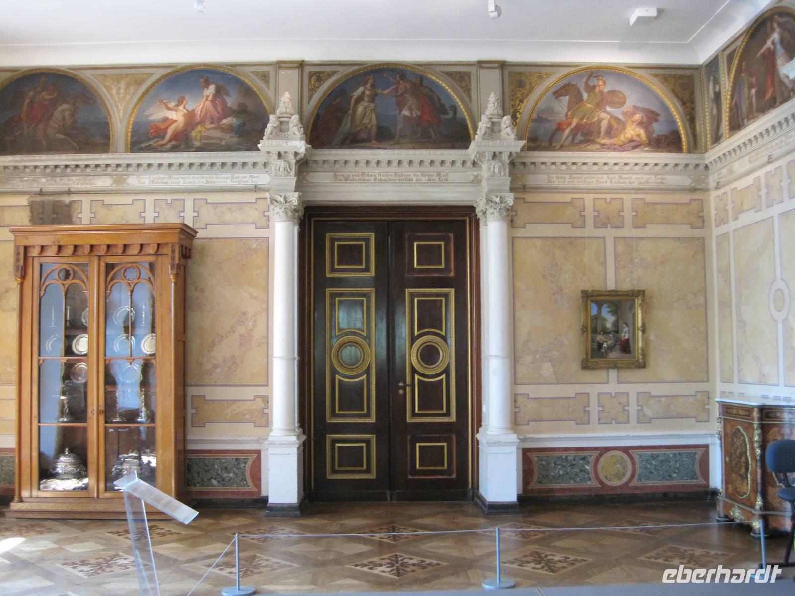 Die Freizeit in der Altstadt hatte natürlich viel im Angebot; von den Ständen des Marktes, den vielen Cafes und Restaurants bis zum Besuch des barocken Schlossgartens. Die Führung im Schloss selbst erfolgte logischerweise ebenfalls in 2 Gruppen und hatte einiges an Bemerkenswerten Details der Schlossinnenräume zu bieten. Die Techniken zur Gestaltung der Räume war überraschend. Original aussehende Deckengestaltung aus Pappmaschê erstaunte alle unsere RG.Nach diesen zwei anstrengenden aber sehr schönen Rundgängen, waren sich alle einig, nach Güstrow zurück zu fahren, da fast alle RG „ Pflastermüde „ waren.