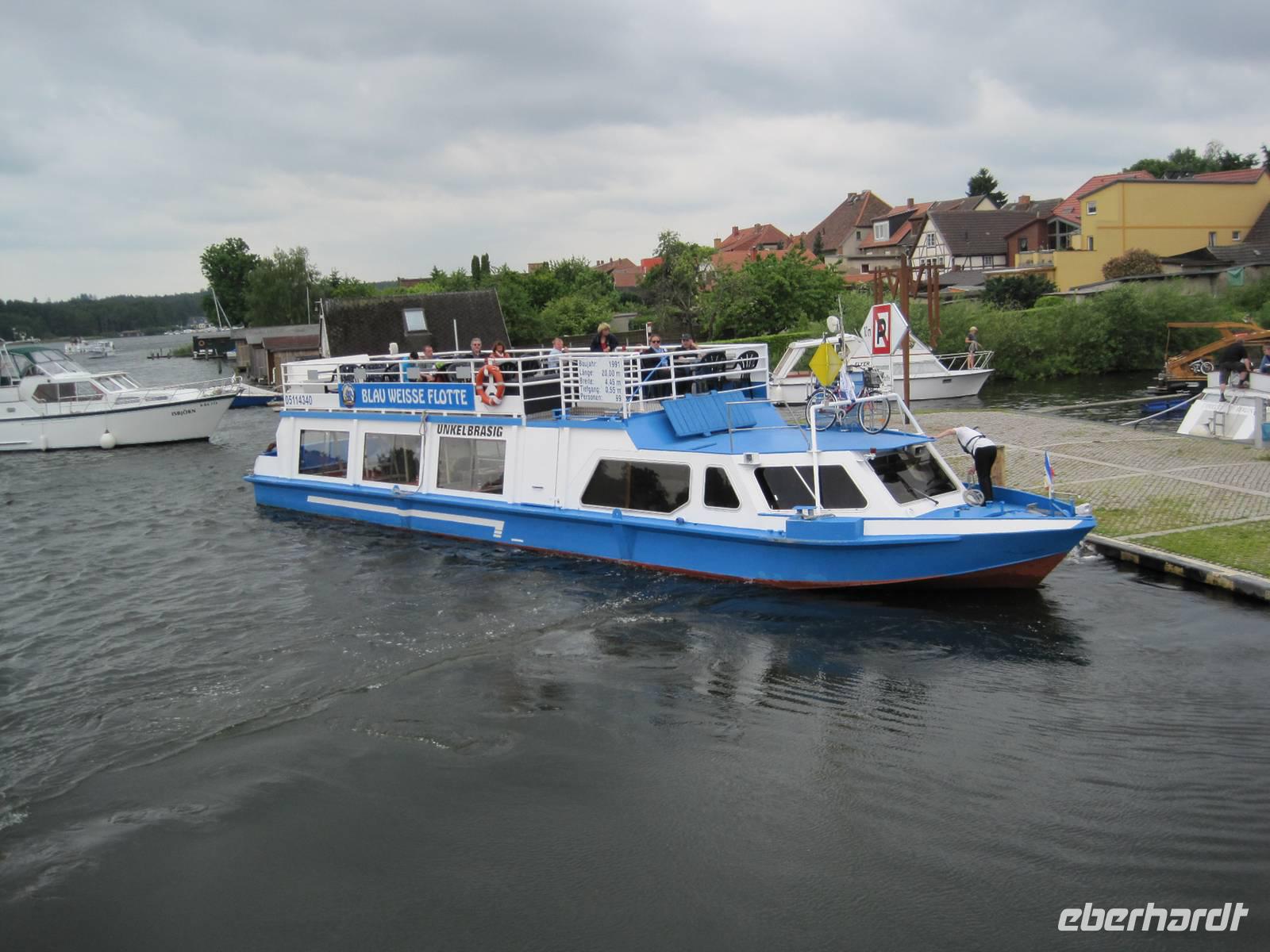 Zuerst fuhren wir in den den Fleesensee in östlicher Richtung bis zur Station Göhren-Lebbin. Nach dem Übergang zum Kölpinsee fuhren wir durch den Jabelkanal in den Jabelschen See, einem kleinen, schönen See, der an der Ostseite das Wisentgehege ist. Nach passieren des Kölpinsees durchquerten wir den Elde-Kanal in die Binnenmüritz. Zur Überraschung unserer RG machte der Käpt'n eine Schleife durch den Hals des Müritzsees, so dass alle Passagiere die Weiten des großen Müritzsees erleben konnten - sehr beeindruckend.