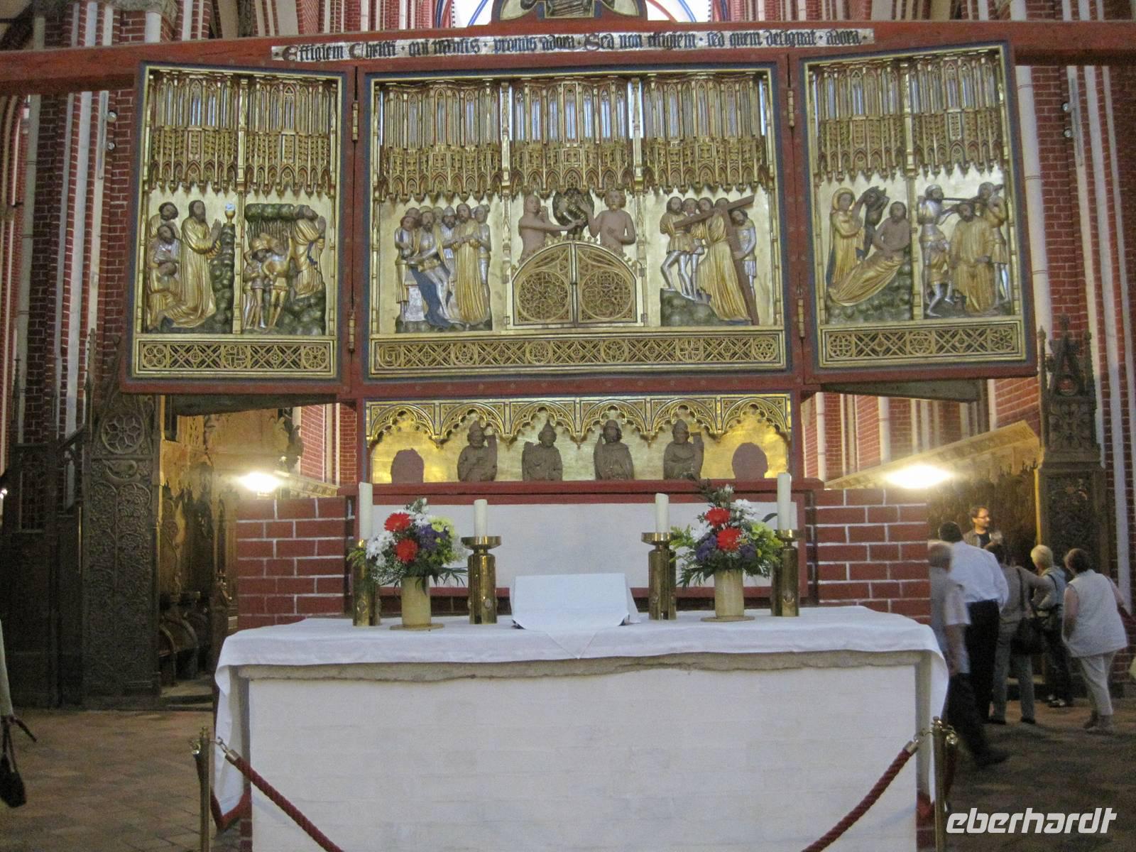 Der Sonnabend führte uns nach dem mondänen Badeort Bad Doberan, erneut an die Ostsee. Ab 10.00 Uhr genossen wir eine einstündige Führung durch das Münster von Bad Doberan, dem Vorzeigeobjekt der norddeutschen Backsteingotik. Das ehemalige Zisterziensterkloster hat einen Ruf, das einzige Münster des Mittelalters zu sein, dass noch originale Requisiten der damaligen Zeit hat.