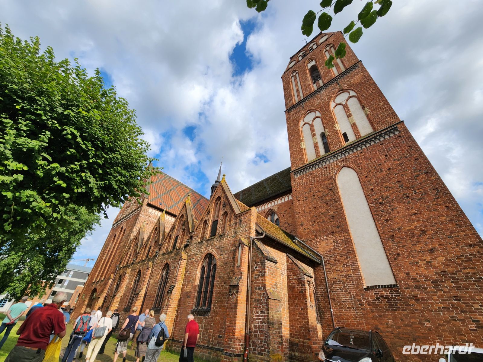Pünktlich zur Stadtführung sind alle eingetroffen. Beim Rundgang durch Güstrow lernen wir verschiedene Sehenswürdigkeiten der Stadt kennen. Zum Abschluss trinken wir im Hof des Weinhauses noch ein Glas Rose-Wein und stoßen auf die kommende Woche an !
