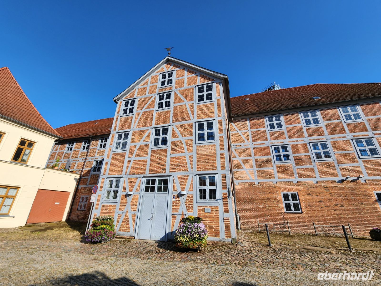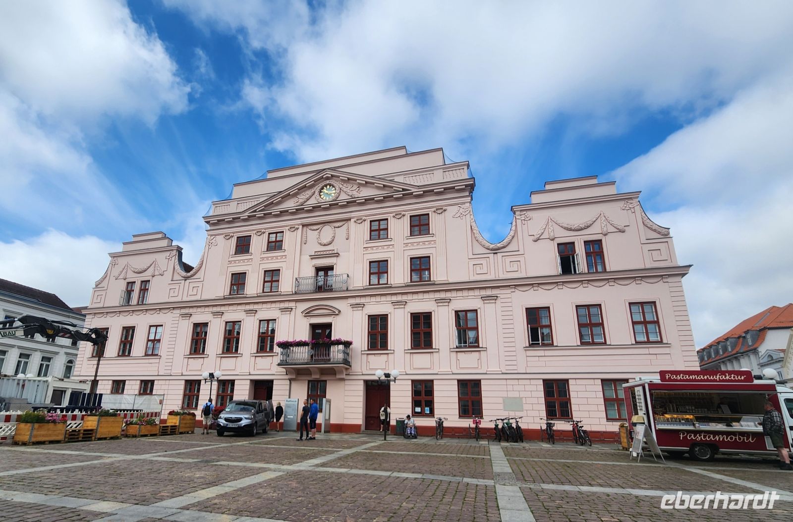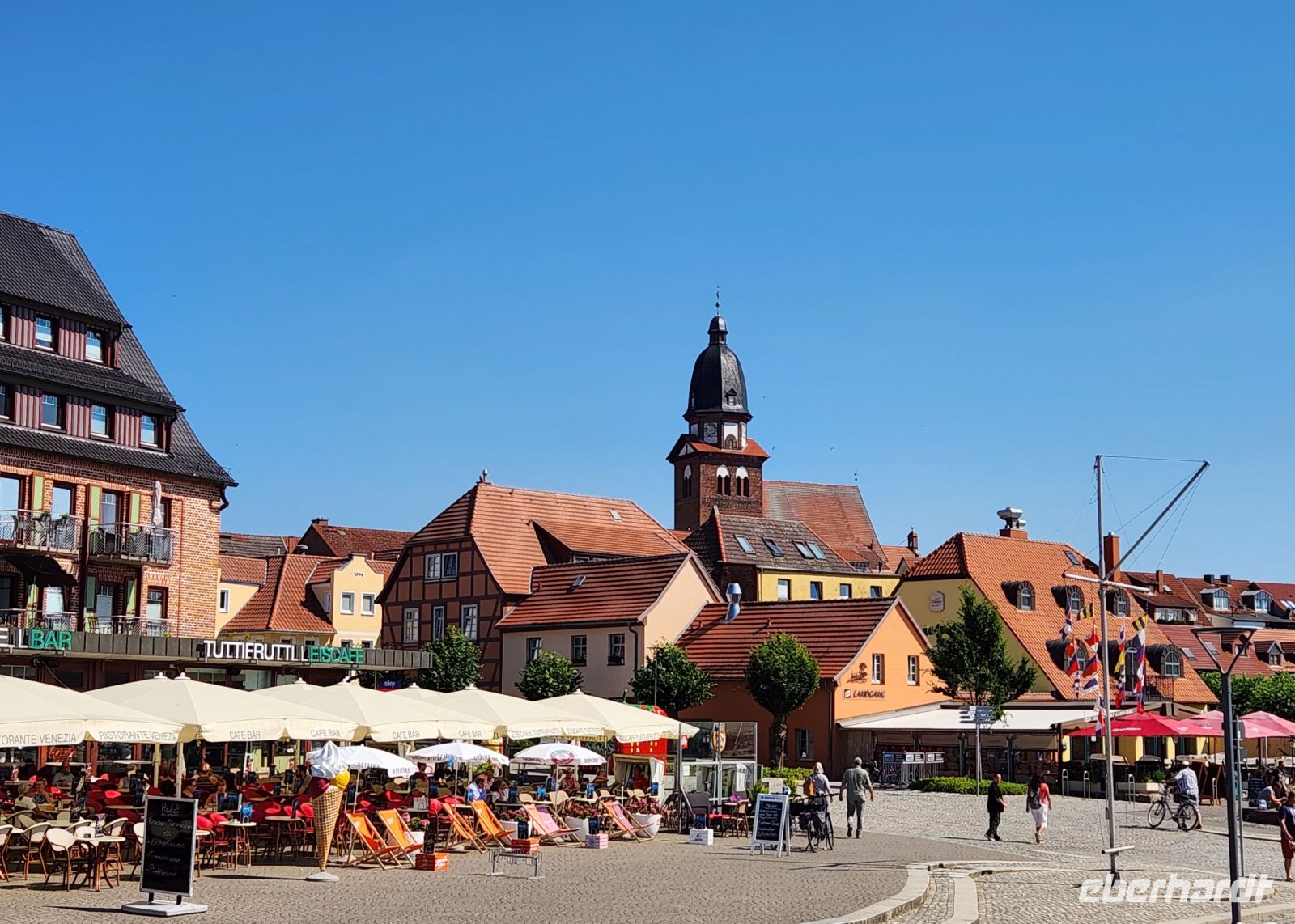 Zunächst fahren wir in die Altstadt von Güstrow und kaufen uns noch frisches Obst an einen der Marktstände.