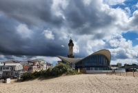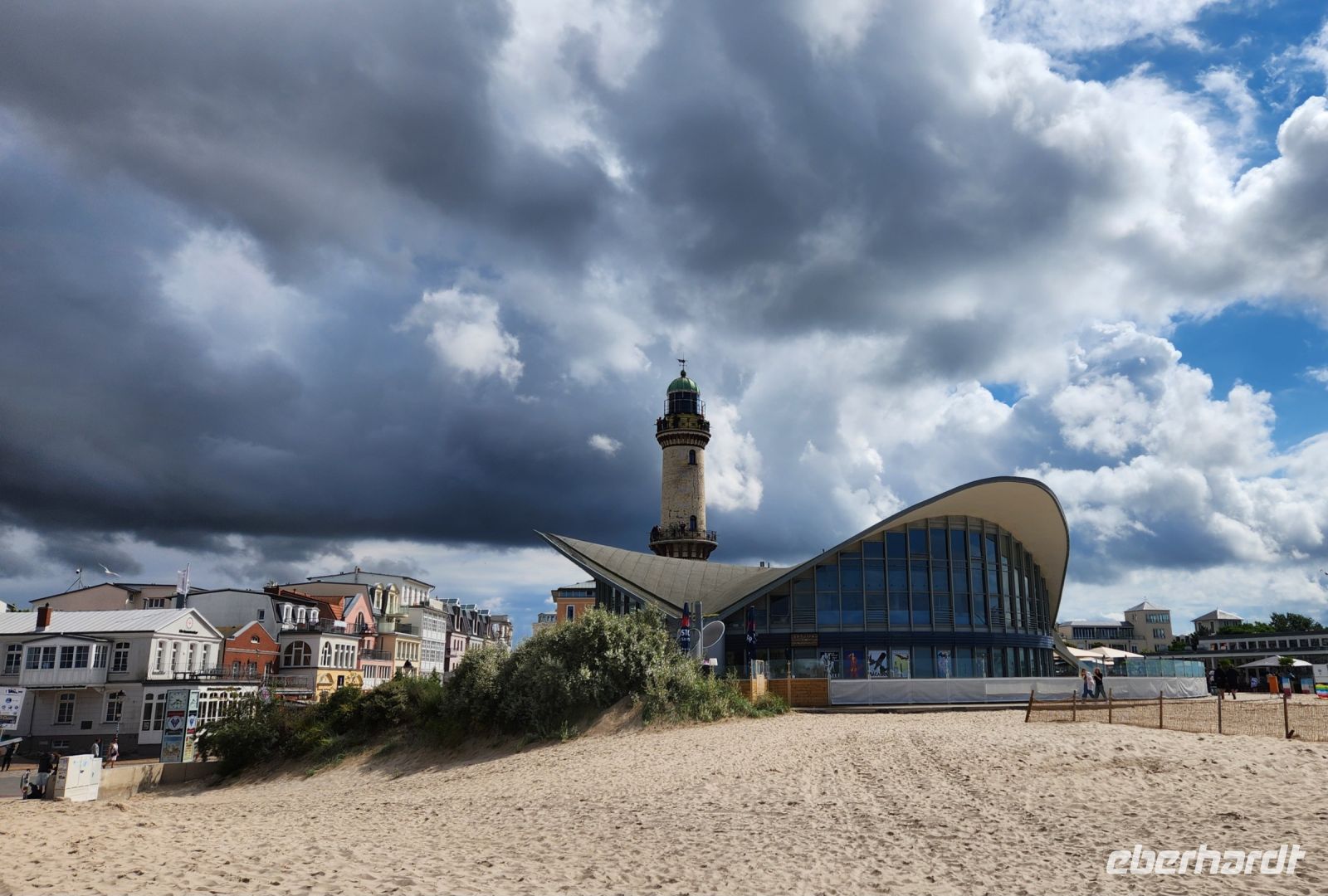 Von dort starten wir unsere Strandwanderung zurück nach Warnemünde. Es ist ziemlich windig, die Wellen kommen weit an den Strand. Da heisst es Zähne zusammenbeissen und kraftvoll durch den tiefen Sand laufen. Einige stürzen sich in die Wellen, als wir eine kleine Pause einlegen und genießen das kühle Bad in der Ostsee sehr. Wir sind alle sehr stolz über unsere tolle Leistung, als wir die Hohe Düne mit ihrem hübschen Yachthafen und die kleine Fähre erreichen, die uns über den neuen Strom wieder ins Zentrum von Warnemünde bringen wird.