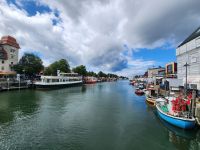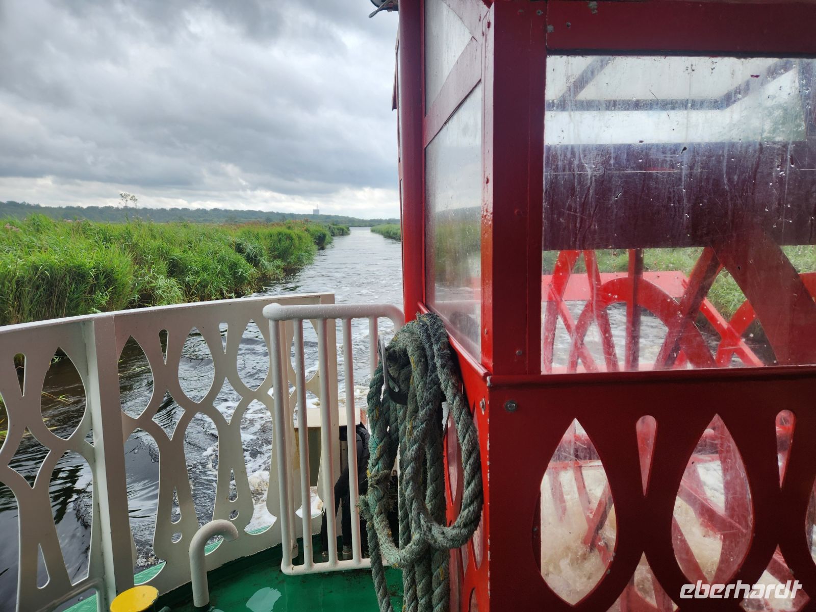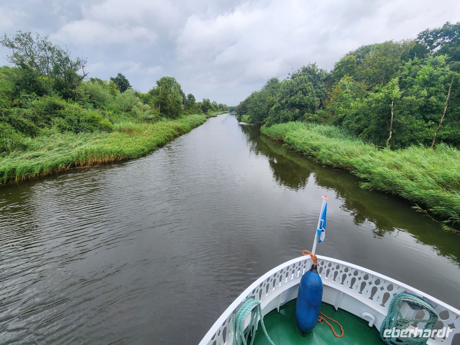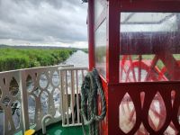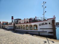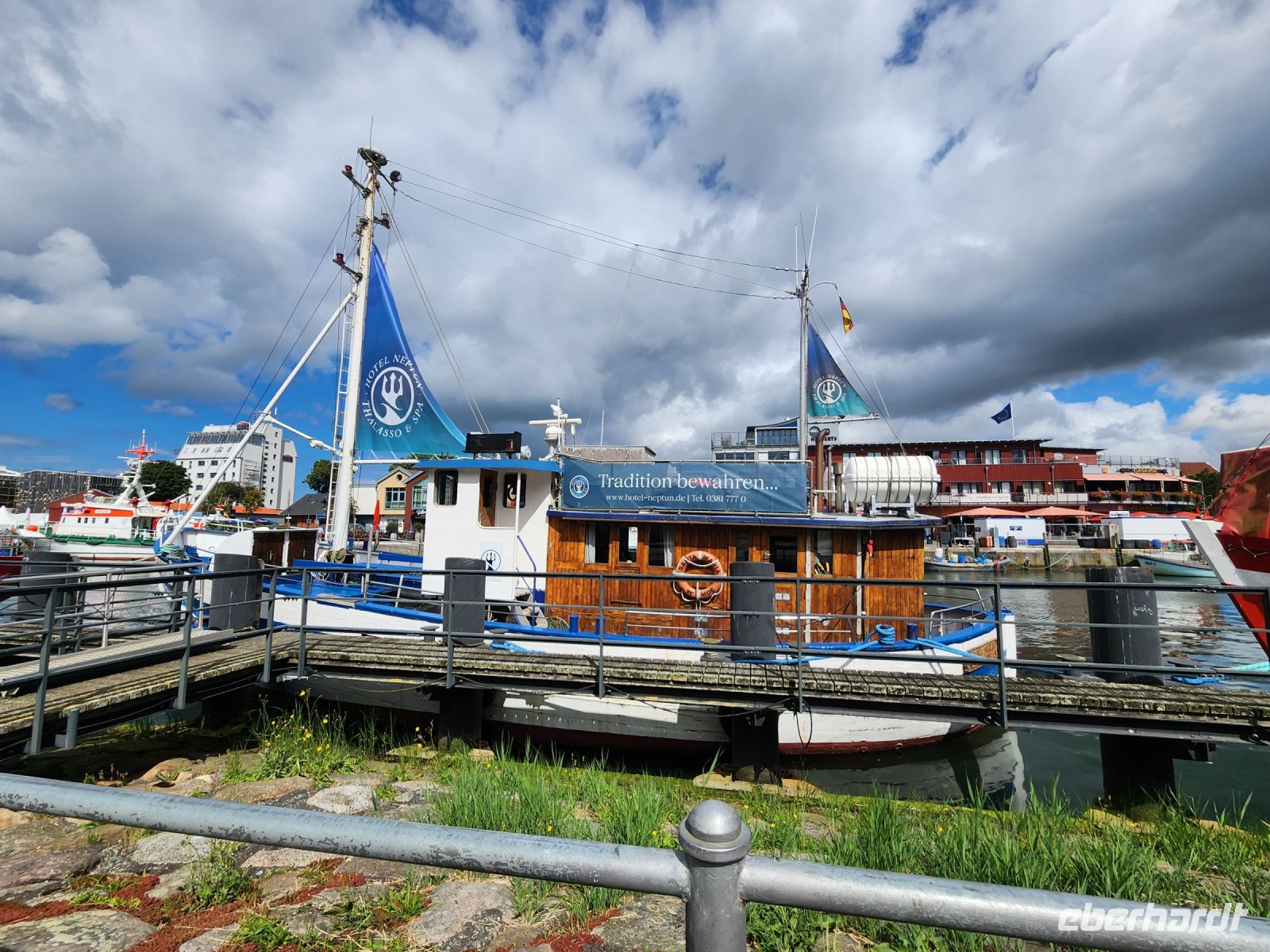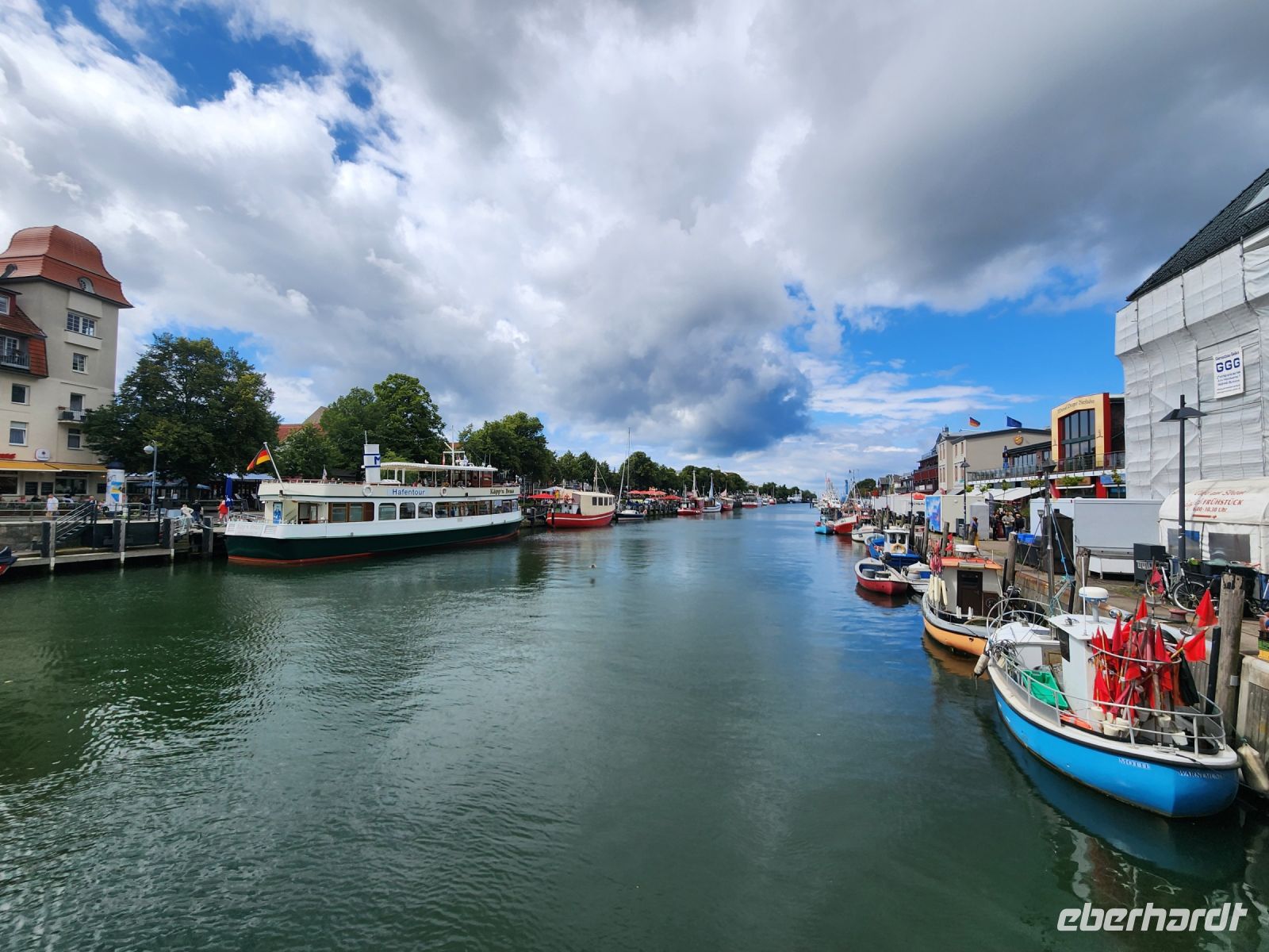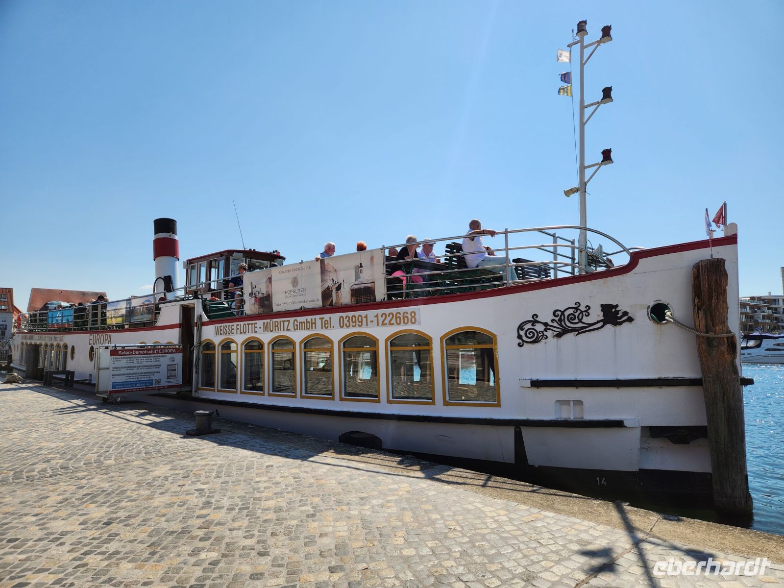 Nach einem gemütlichen Frühstück spazieren wir zum Bahnhof von Güstrow. Der Zug bringt uns direkt bis Warnemünde. Wir freuen uns über das typische Bild wie Fischerboote und Ausflugsschiffe im alten Strom liegen. Bereits am Vormittag ist hier schon einiges los. Manche gönnen sich ein Fischbrötchen, manche machen einen Spaziergang zum Strand, bevor wir den "Schnatermann" besteigen, ein Heckraddampfer, der uns ganz gemütlich durch die Heidelandschaft bis Marktgrafenheide bringen wird.
