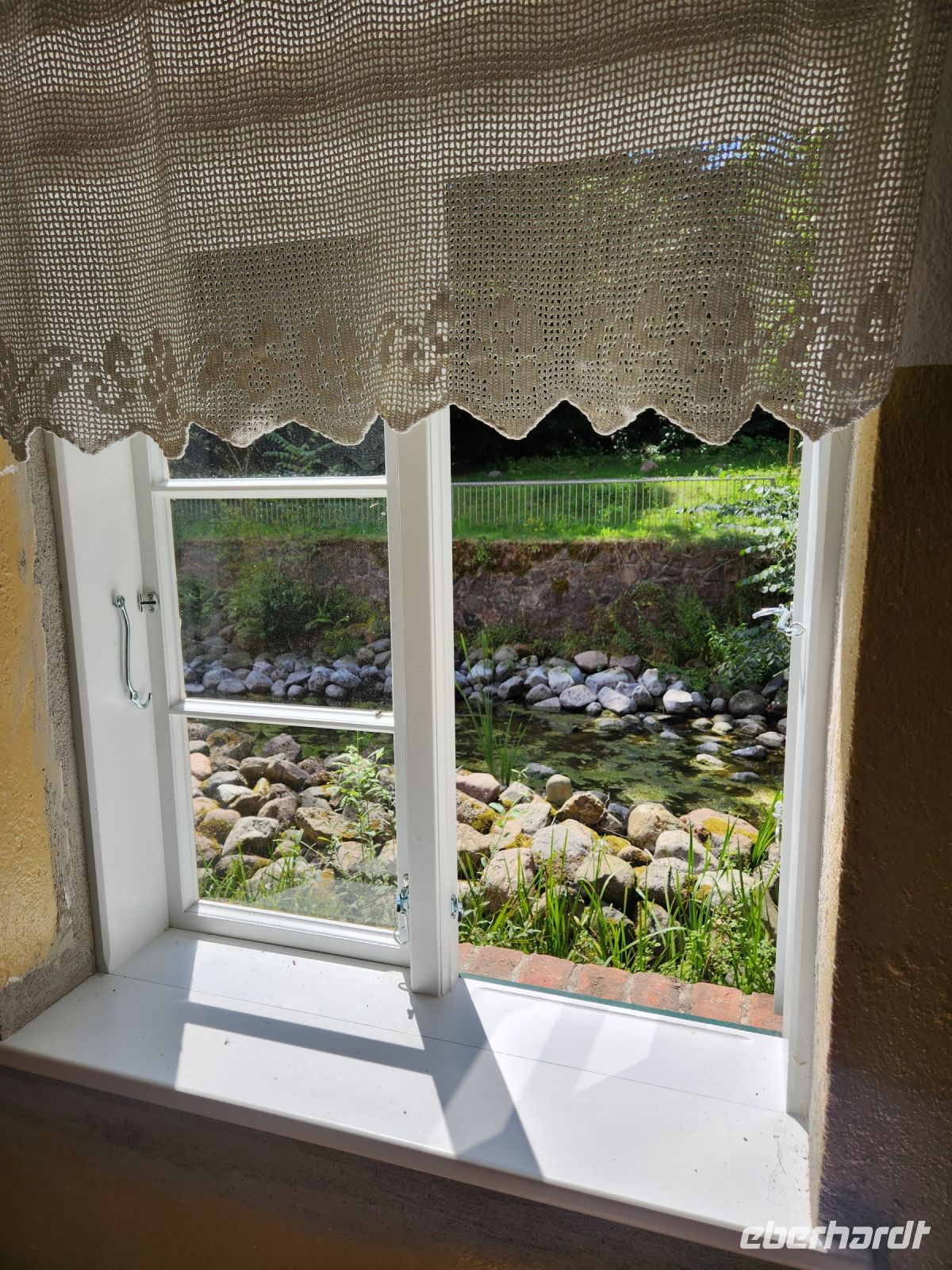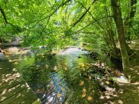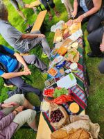 An der Wassermühle Kuchelmiß angekommen, wartet ein leckerer Mittagsimbiss auf uns...Wildknacker, Schmalzbrote, frischer Blattsalat und selbstgebackener Blechkuchen, alles mit Zutaten aus der Region! Wir sitzen im Garten vor der Mühle unter einem großen Baum, einfach herrlich.