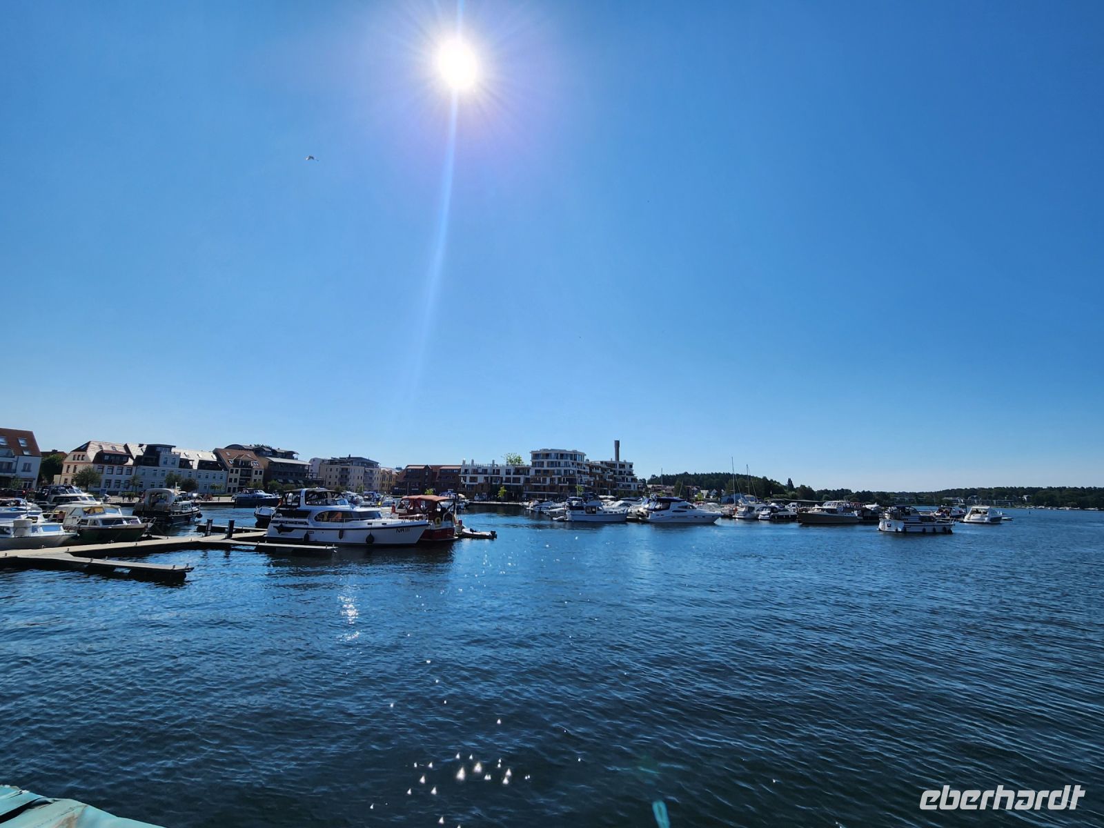 Am Morgen machen wir auf dem Inselsee, der keine 4 km von unserem Hotel entfernt liegt, eine Kuttertour. Heute wird es sehr warm werden ! Unser Kapitän weiss vieles über den See und den Wassersport hier zu erzählen. Wir fahren an schlichten, gemütlichen Bootshäusern vorbei, die als Ferienhäuser genutzt werden. Die Ufer sind schilfgesäumt, es ist ein wahres Paradies inmitten wunderschöner Natur.