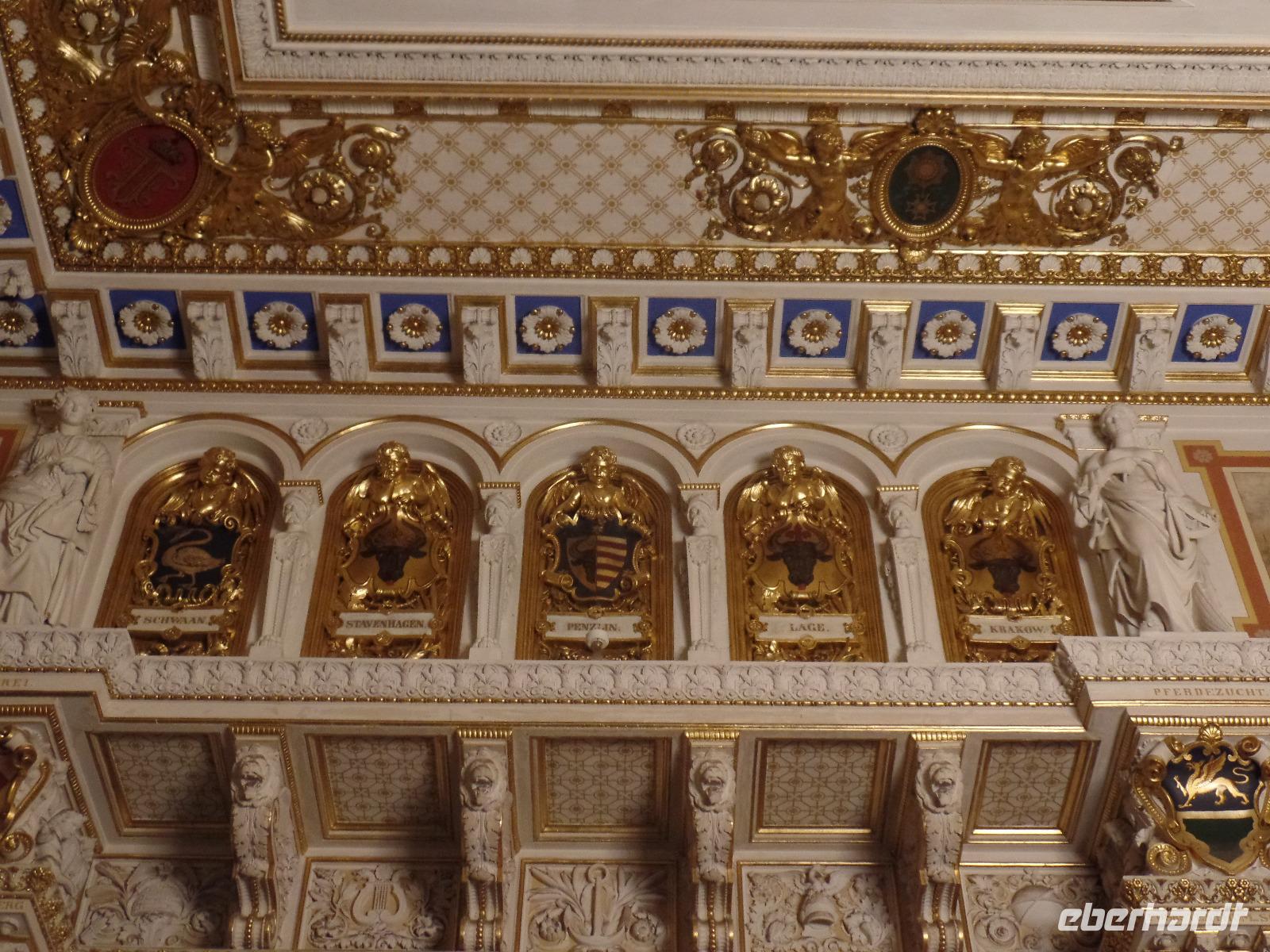 Zum Abschluss unserer Reise besichtigten wir das Schloss Ludwigslust. Nach der Restaurierung sind alle Räume wieder zugänglich. Das ehemalige Schloss der Mecklenburger Herzöge bestach durch seinen schönen Goldenen Saal. Während der Führung erfuhren wir das viele auch vergoldete Verzierungen aus Papmache, aus der Ludwigsluster Karton Fabrik, stammen.