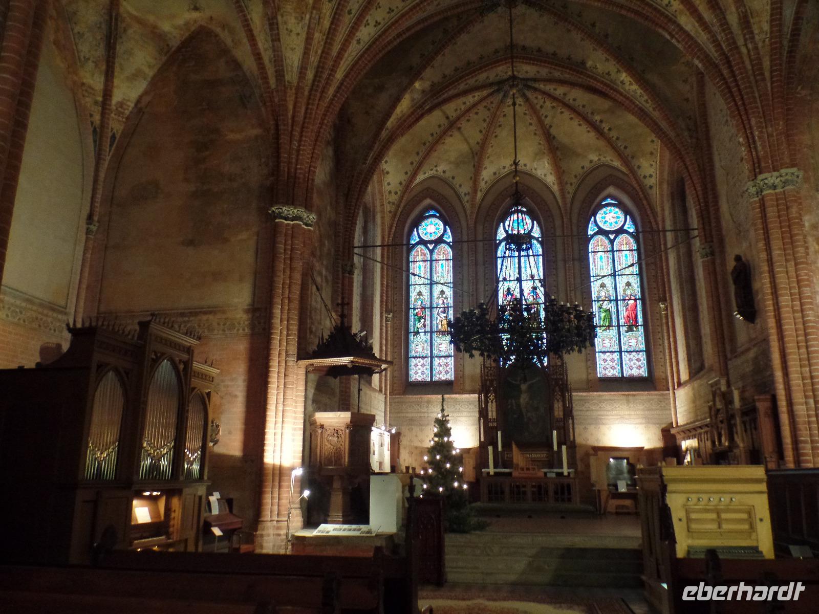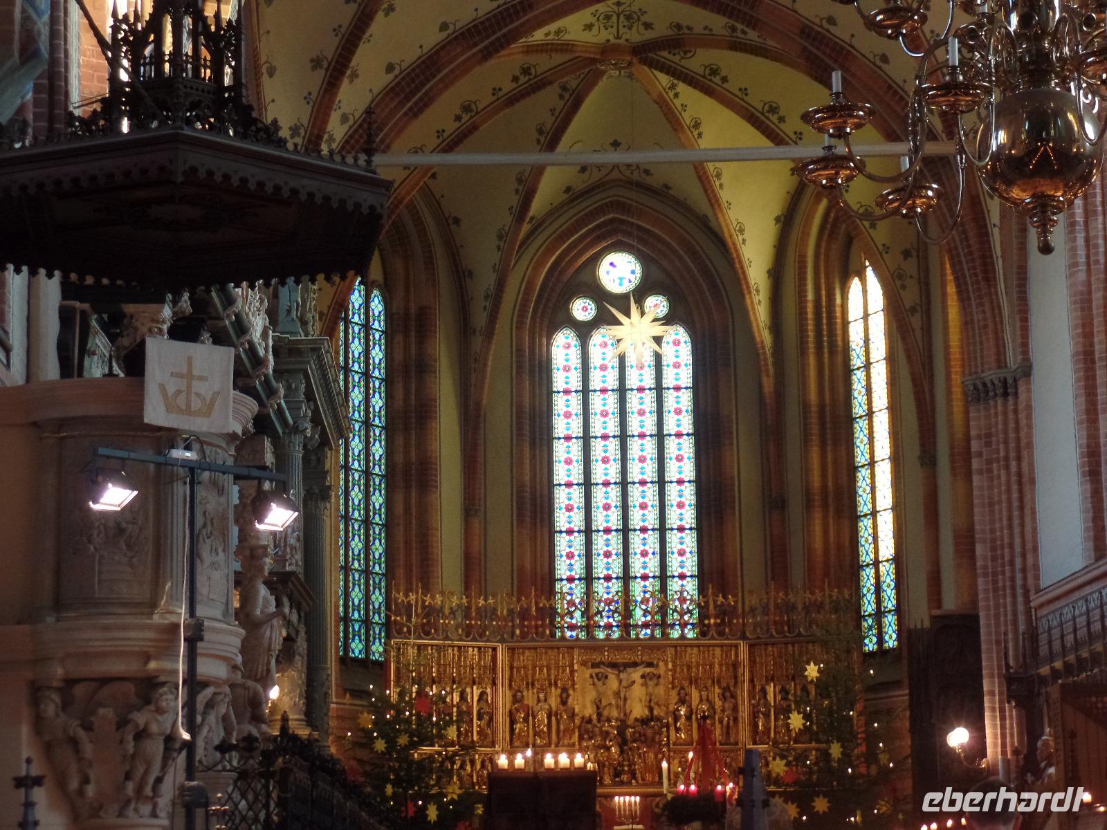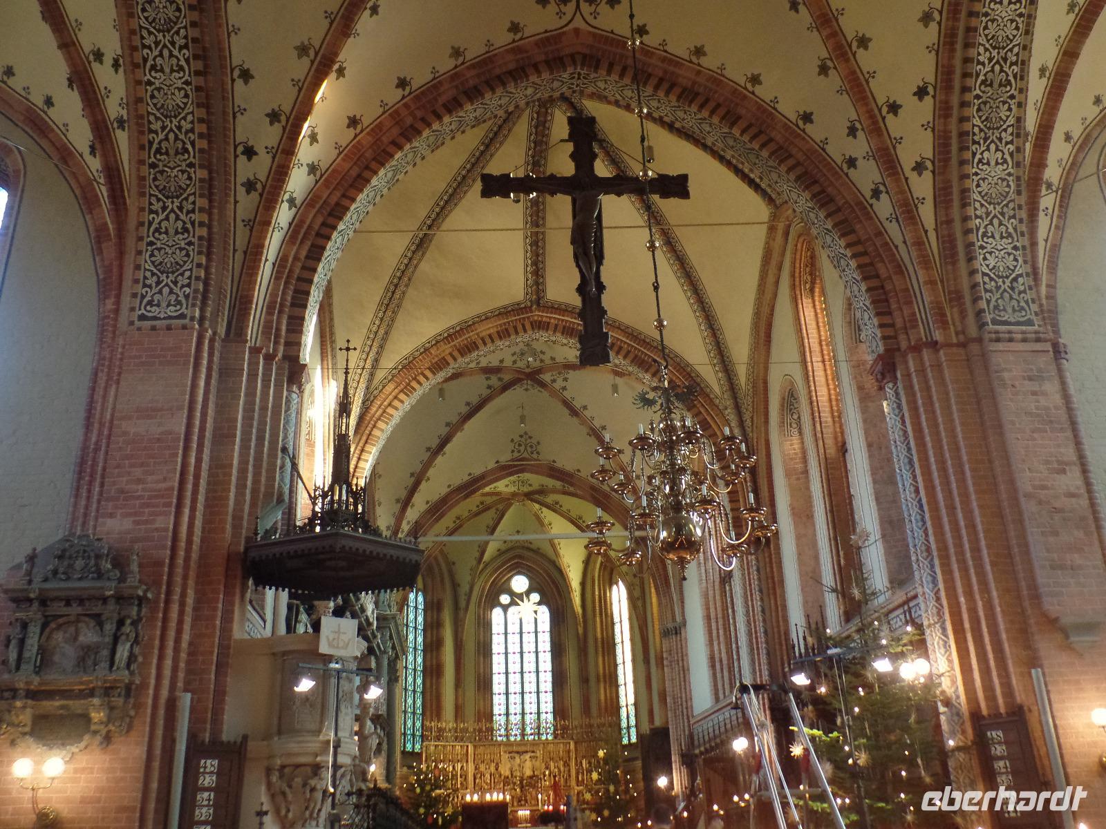 Im Güstrower Dom erwartete uns am 2. Feiertag ein Bläsergottesdienst. Der Dom war schön Weihnachtlich ausgeschmückt. Der Bläsergottesdienst war besonders durch die Akustik im Dom ein besonderes Erlebnis. Nach einem kleinen Mittagsimbiss im Hotel fuhren wir nach Gelbensande. Das ehemalige Jagdschloss wurde 1887 erbaut und hatte eine wechselvolle Geschichte. Ab 1945 wurde es als Lungenheilstätte genutzt und später als Krankenhaus. Im Jahre 2008 hat es ein Bauunternehmer gekauft und mit Hilfe eines Vereins restauriert. In der Eingangshalle loderte der Kamin und gab dem Raum eine anheimelnde Atmosphäre. Die Führung führte uns durch 12 Räume, die aber leider nicht mehr mit originial Möbeln ausgestattet sind. Heute finden viele Konzerte statt und es kann auch geheiratet werden. Anschließend kehrten wir im Schlossrestaurant zu Kaffee und Kuchen ein. In einer stimmungsvollen Atmosphäre ließen wir den schönen Tag ausklingen.