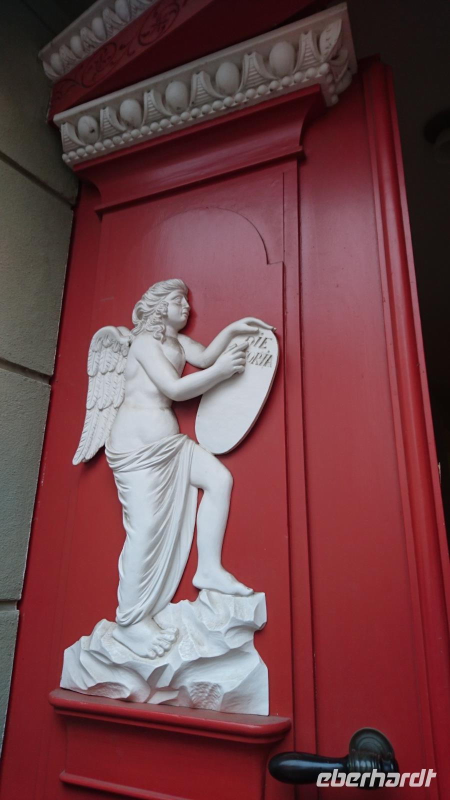 Am Morgen des Weihnachtstages wurden wir von 2 Stadtführerinnen am Hotel abgeholt und zu einer Führung durch das kleine aber feine Güstrow mitgenommen. Beginnend am Schloß, erfuhren wir viel über das Leben damals im Schloß, wir sahen auch die Aufsteighilfen aus Stein, die für die Herren in Rüstungen errichtet worden waren, damit sie so leichter auf ihre Rösser steigen konnten. Dann gingen wir weiter in die Stadt hinein. Am Dom suchten wir die Steine des Fundaments, wo die Menschen des Mittelalters Stücke aus den Ziegeln herausgeschabt hatten, um sie in ihr Essen zu mischen und so von Krankheiten geheilt zu werden. Wir bewunderten kunstvolle Klinken, geschnitzte Holztüren und herrliche Fensterdekorationen und endeten an unserem nächsten Programmpunkt: dem Krippenmuseum in Güstrow.