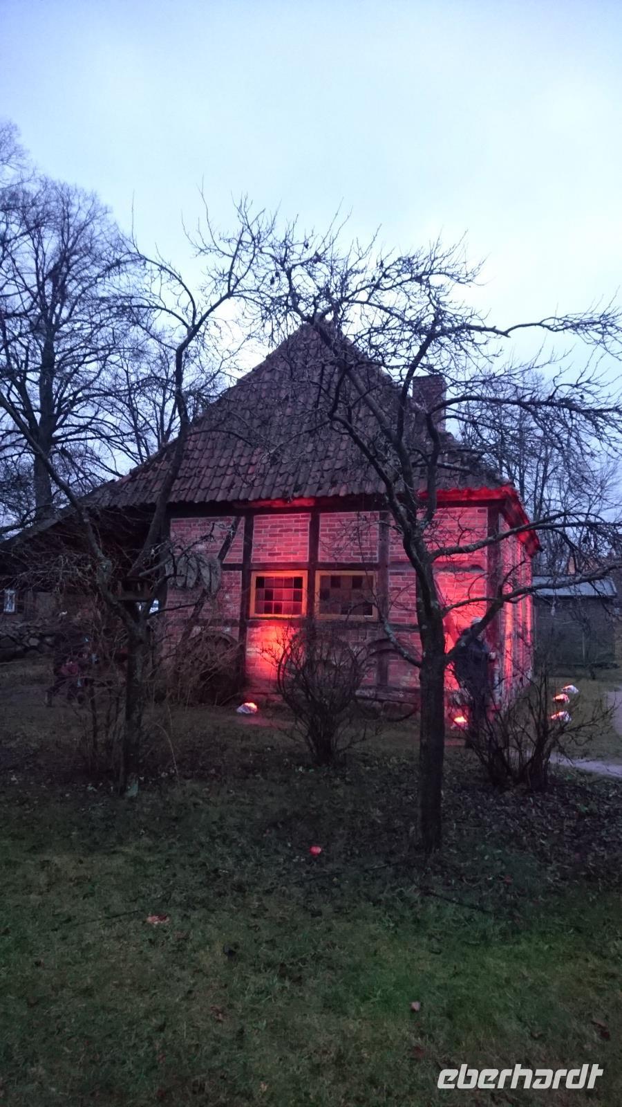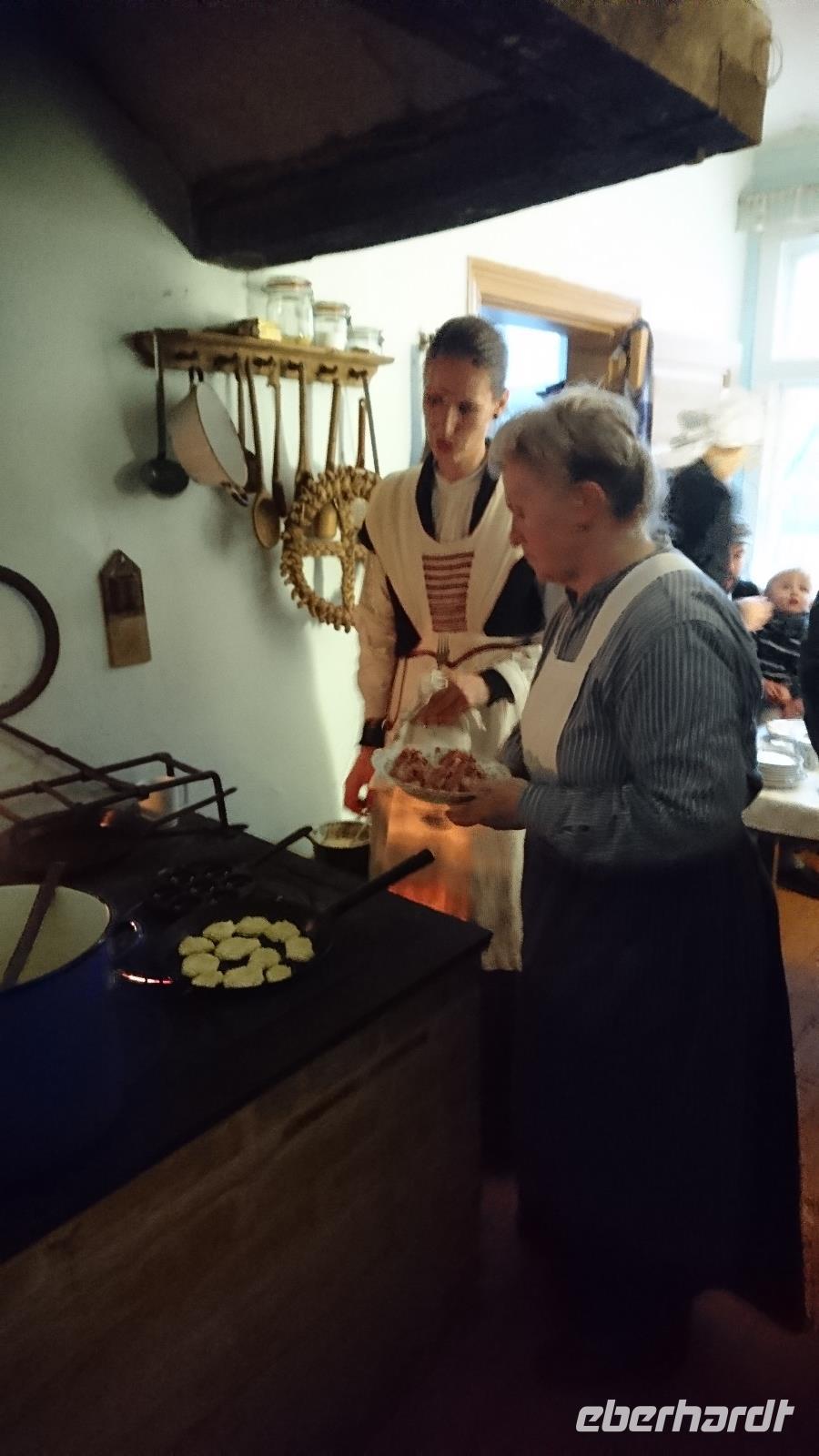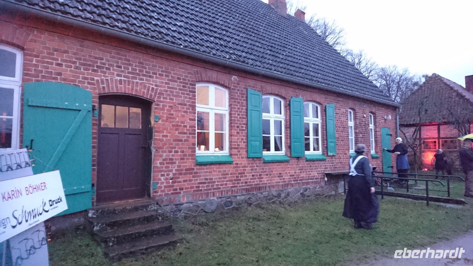 Dieses Museum besteht aus einem alten originalen Dorf, was dem Besucher das Leben im ländlichen Mecklenburg des 19. Jahrhunderts näher bringt. Kleine mit Ried gedeckte Fachwerkhäuser, wechseln sich mit einer Schmiede, einer Küche, einer Scheune und etlichen weiteren Räumlichkeiten ab und viele Mitarbeiter trugen die traditionelle Kleidung aus dem 19. Jahrhundert. So konnte man mecklenburgisches rohes Sauerkraut mit Kümmel, Sauerkrautsuppe, kleine Süßigkeiten und natürlich Glühwein probieren. Wer bei dem regnerischen Wetter Glück hatte, ergatterte schnell einen Platz im gemütlichen Café. Der Schmied des Dorfes war eine Frau und etliche Handwerksstände boten sehr geschmackvolle Handwerkskunst von Metall angefangen, hin zu Textilien und Papierkunst.