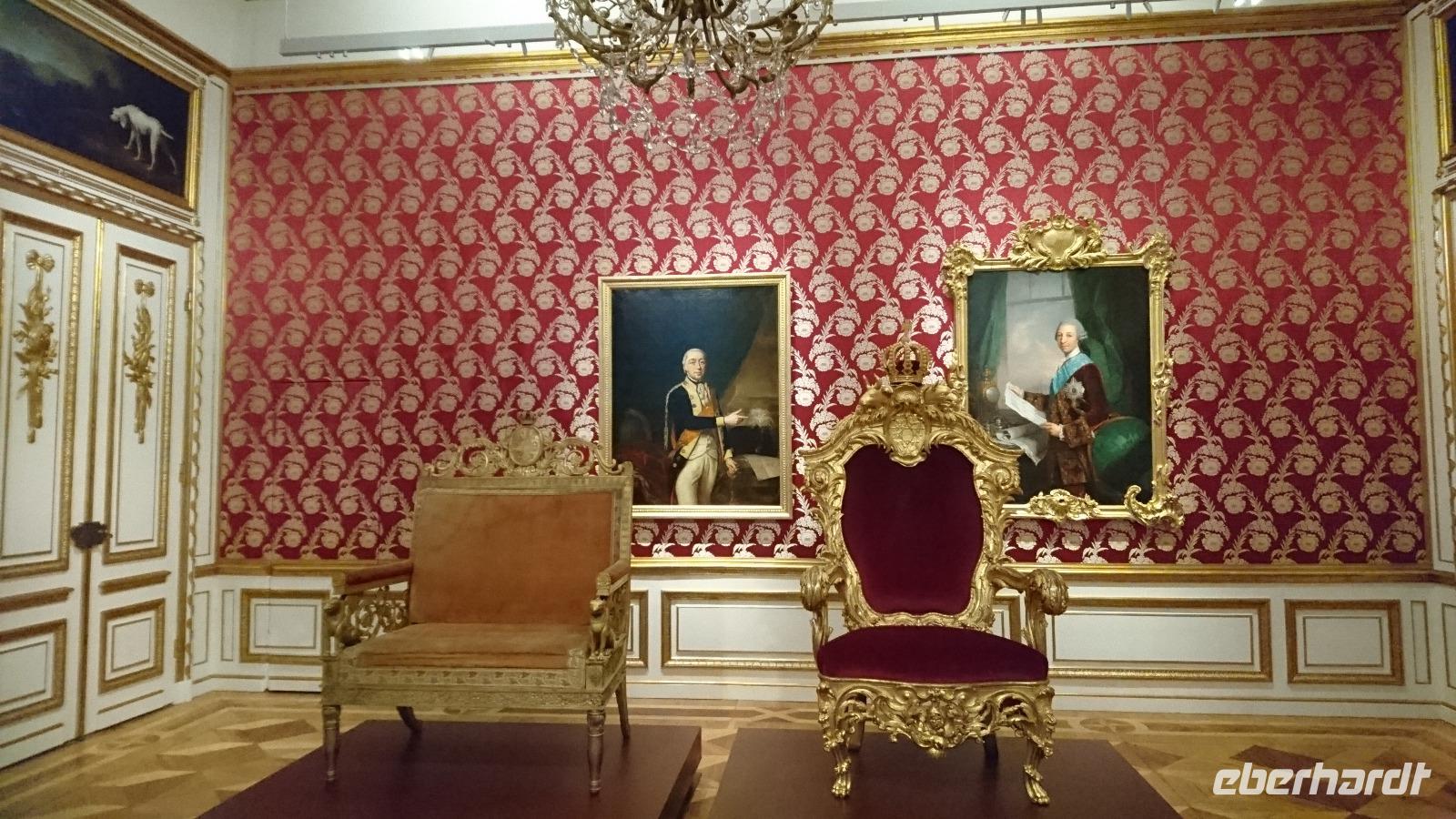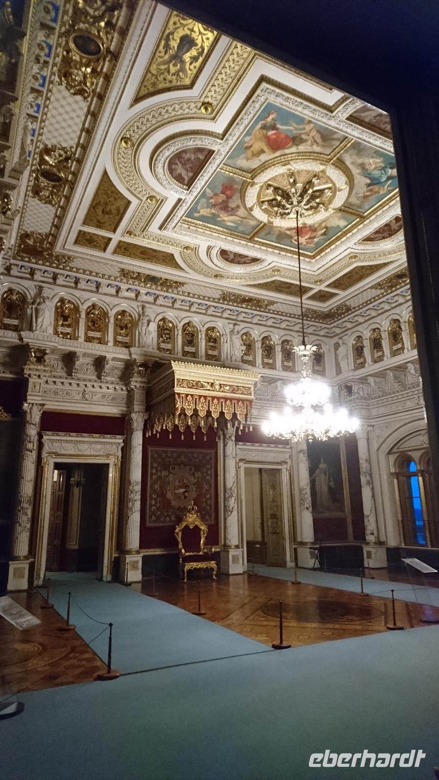 Wir staunten, was man aus Papier und Pappmaché so alles machen kann und im Ballsaal erkannten wir dank der Erklärungen des Schloßführers, daß eben doch nicht alles Gold ist, was glänzt.