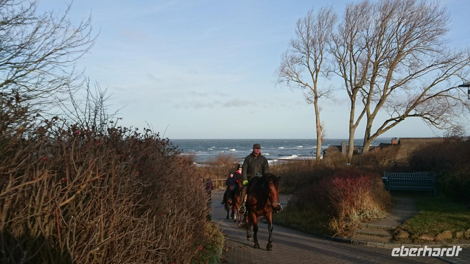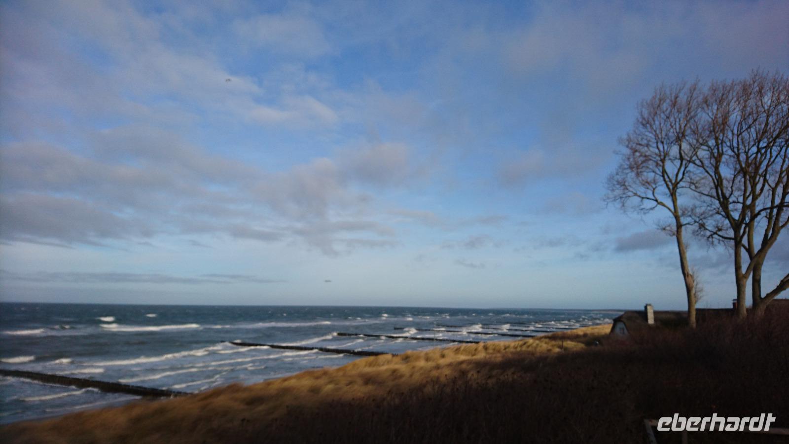 Wehmütig machten wir uns auf den Rückweg, die Ostsee ist eben magisch und der ein oder andere wäre sicher gern noch länger am Wasser geblieben. Aber es warteten ja schließlich Entenkeule, Klöße und Rotkraut auf uns und das konnten wir uns ja nicht entgehen lassen. Nach so einer Kalorienbombe mußten wir uns sportlich betätigen und das Hotel hatte bereits für uns die Eisstockbahn vorbereitet, so daß wir dann als Teams gegeneinander unser Geschick beweisen durften. Die Anfänge waren holprig, aber danach ging es steil bergauf mit den Fortschritten und so gewannen wir alle. Dazu gab es natürlich offenes Feuer und den zu Weihnachten unverzichtbaren Glühwein (jetzt aus der stilechten Eberhardttasse) und wer sich zu sehr verausgabt hatte, konnte sich durch die vom Hotel bereit gestellten Lebkuchen wieder stärken. So ging ein wunderschöner, erlebnisreicher Tag zur Neige.