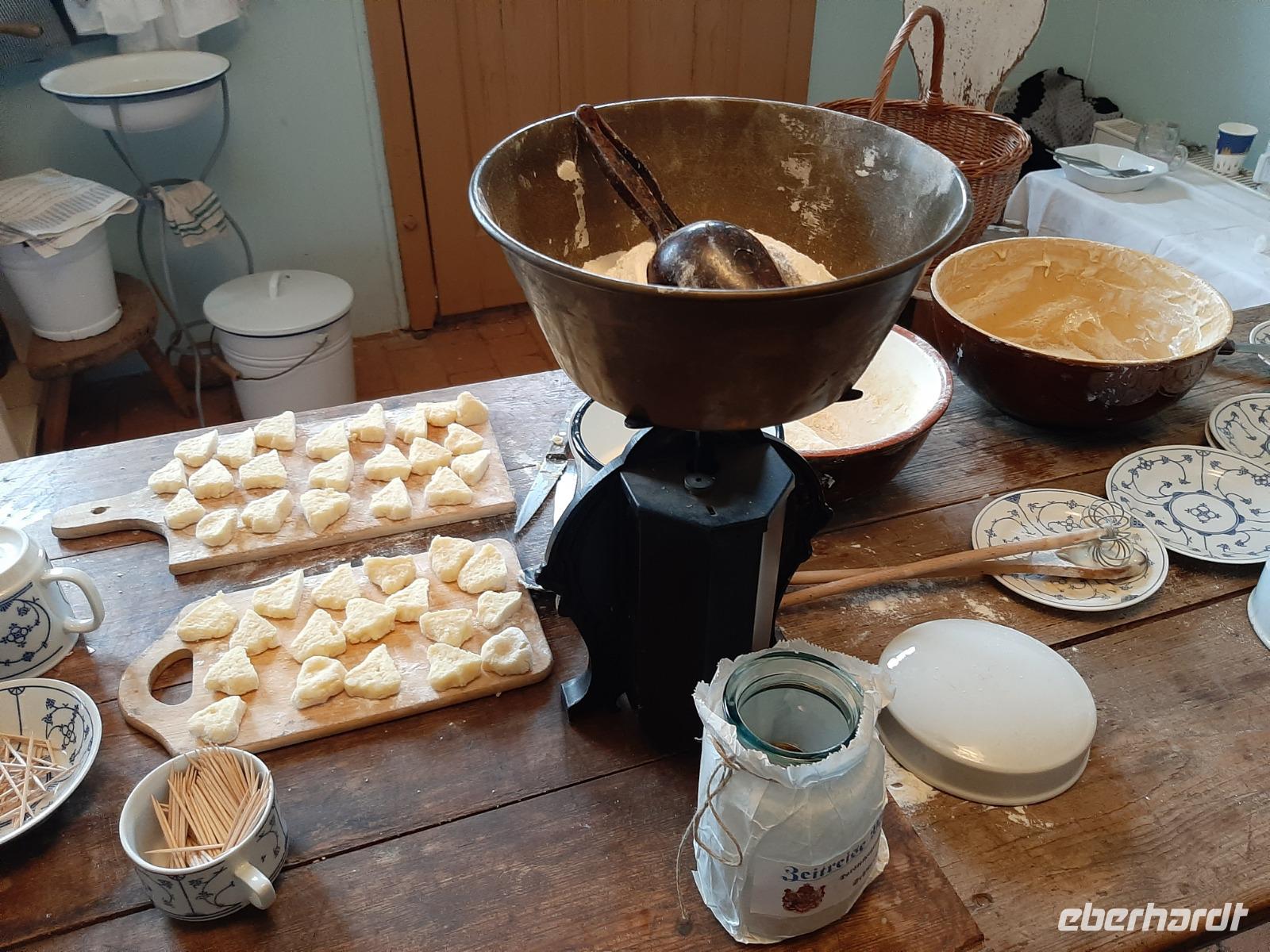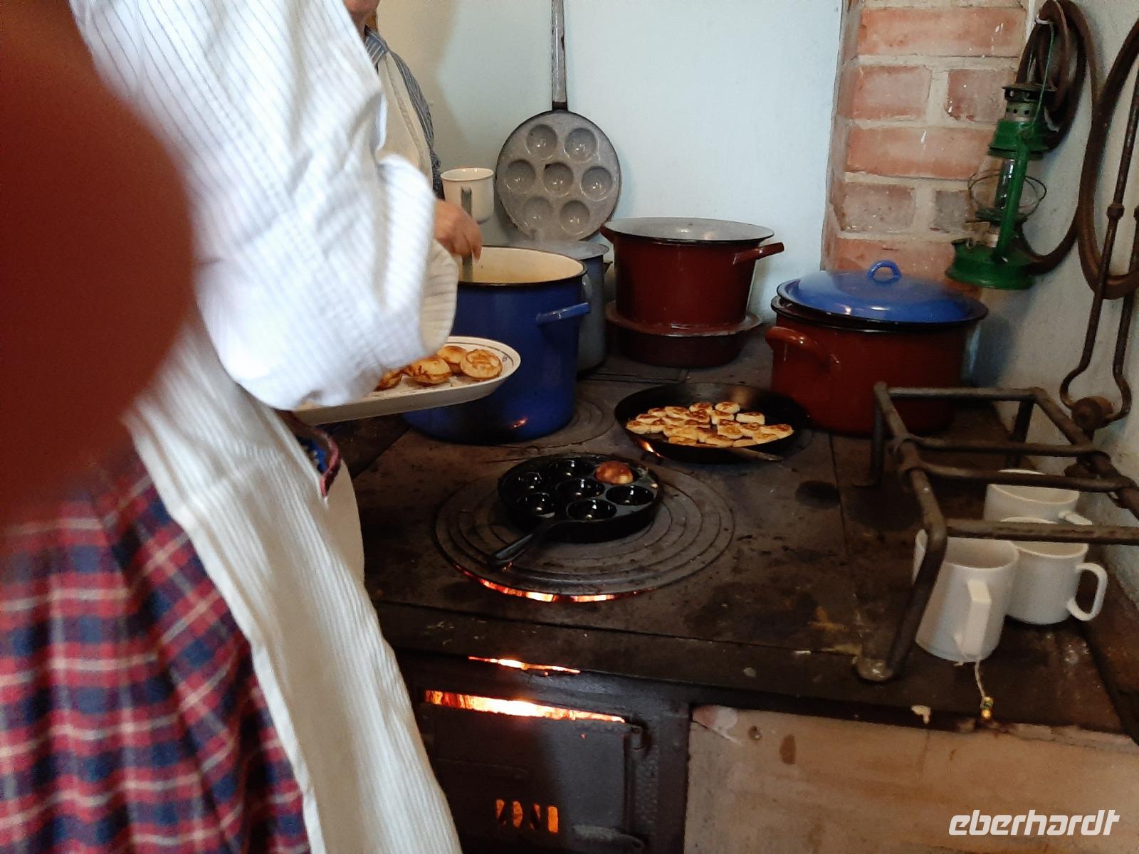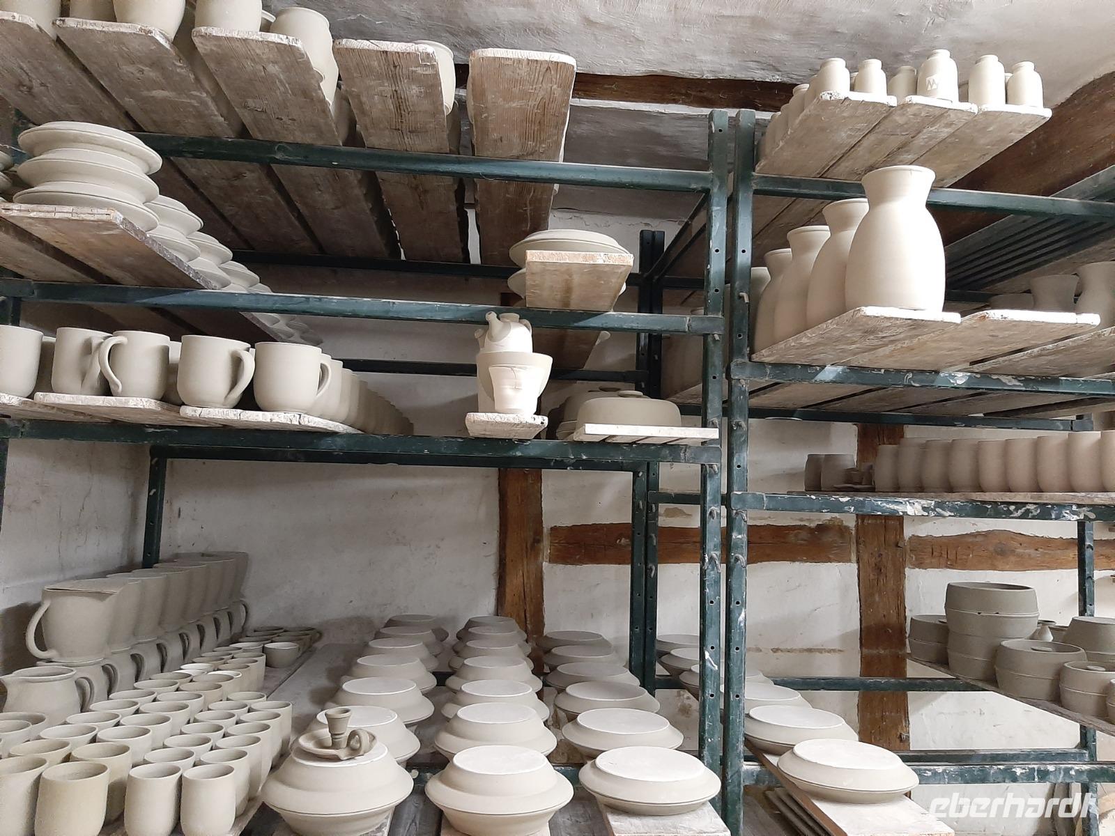 Nicht genug der Eindrücke bisher: am Nachmittag wird noch eins drauf gesetzt. Wir fahren nach Lenzen. Unterwegs gibt es als mittäglichen Imbiss Würstchen im Bus. Lenzen - das sind ein paar Häuser inmitten mecklenburgischer Natur, man könnte auch meinen: da, wo sich Fuchs und Hase Gute Nacht sagen. Genau dort, inmitten einfacher Natur, üben Töpfer ihr Handwerk aus. Wir besuchen zwei Töpfereien ganz unterschiedlicher „Philosophie" . Ist es in dem einem Töpferhof die denkbar einfachste Linie, die im Sortiment verfolgt wird und größte Funktionalität im Einklang mit zeitlosen Formen hervorbringt, geht in dem anderen das Holzfeuer eine zarte Symbiose mit dem Porzellan ein. Die Einfachheit der Natur und die herzliche Freundlichkeit der Gastgeber ziehen uns schnell in ihren Bann. Die Krönung ist, dass es noch dazu echte selbstgebackene köstlicche Plätzchen und einen wärmenden Punsch gibt. Was liegt näher, als Weihnachtslieder anzustimmen ... ? „Stille Nacht ...." Beeindruckt und mit dem ein oder anderen erstandenen Keramikteil im Gepäck fahren wir zu nserem Hotel zurück. Der Blick auf das erhabene Güstrower Schloss lässt uns wissen, dass wir da sind und die Vorfreude auf das abendliche Buffet beginnt spätestens jetzt.
