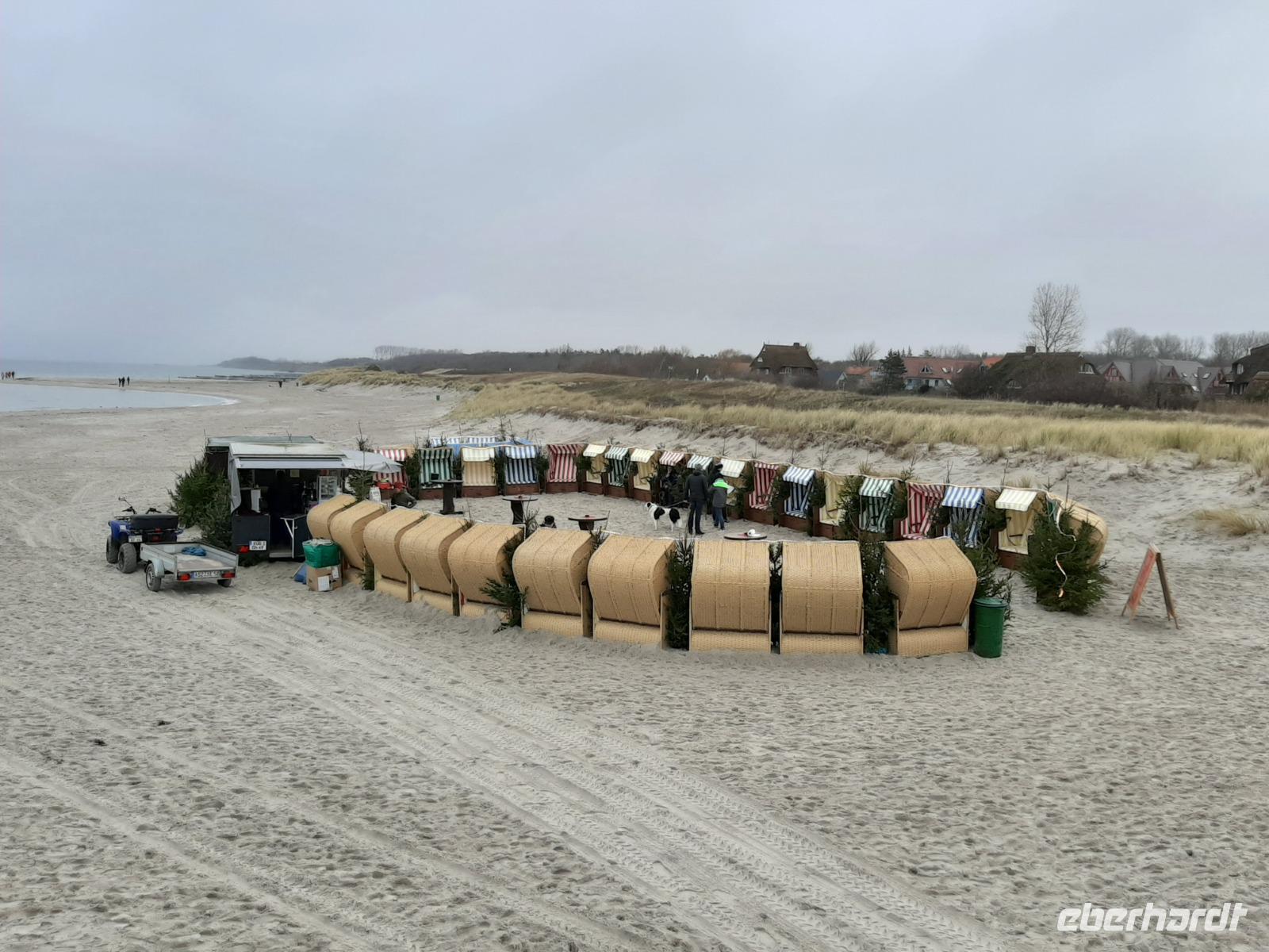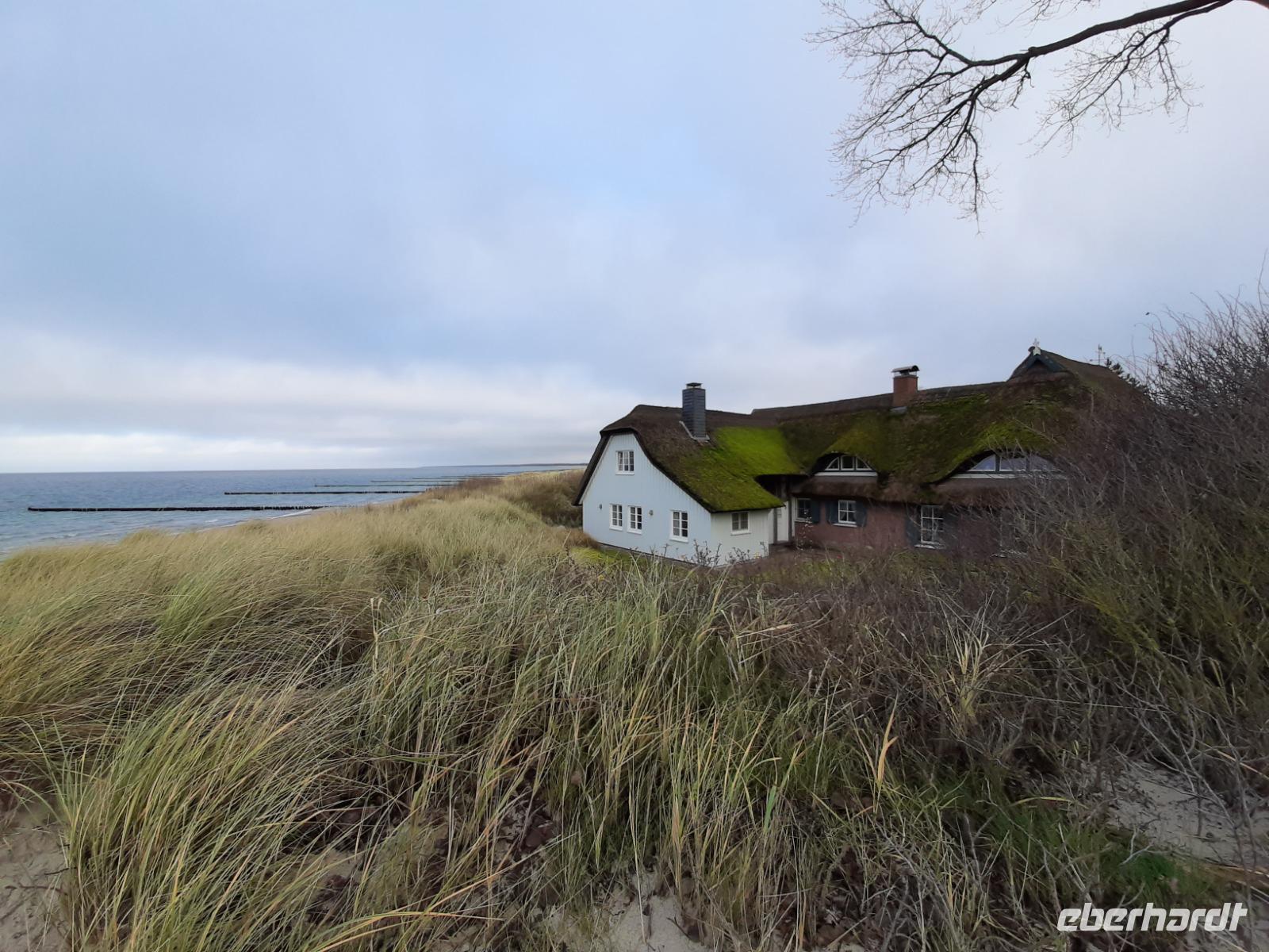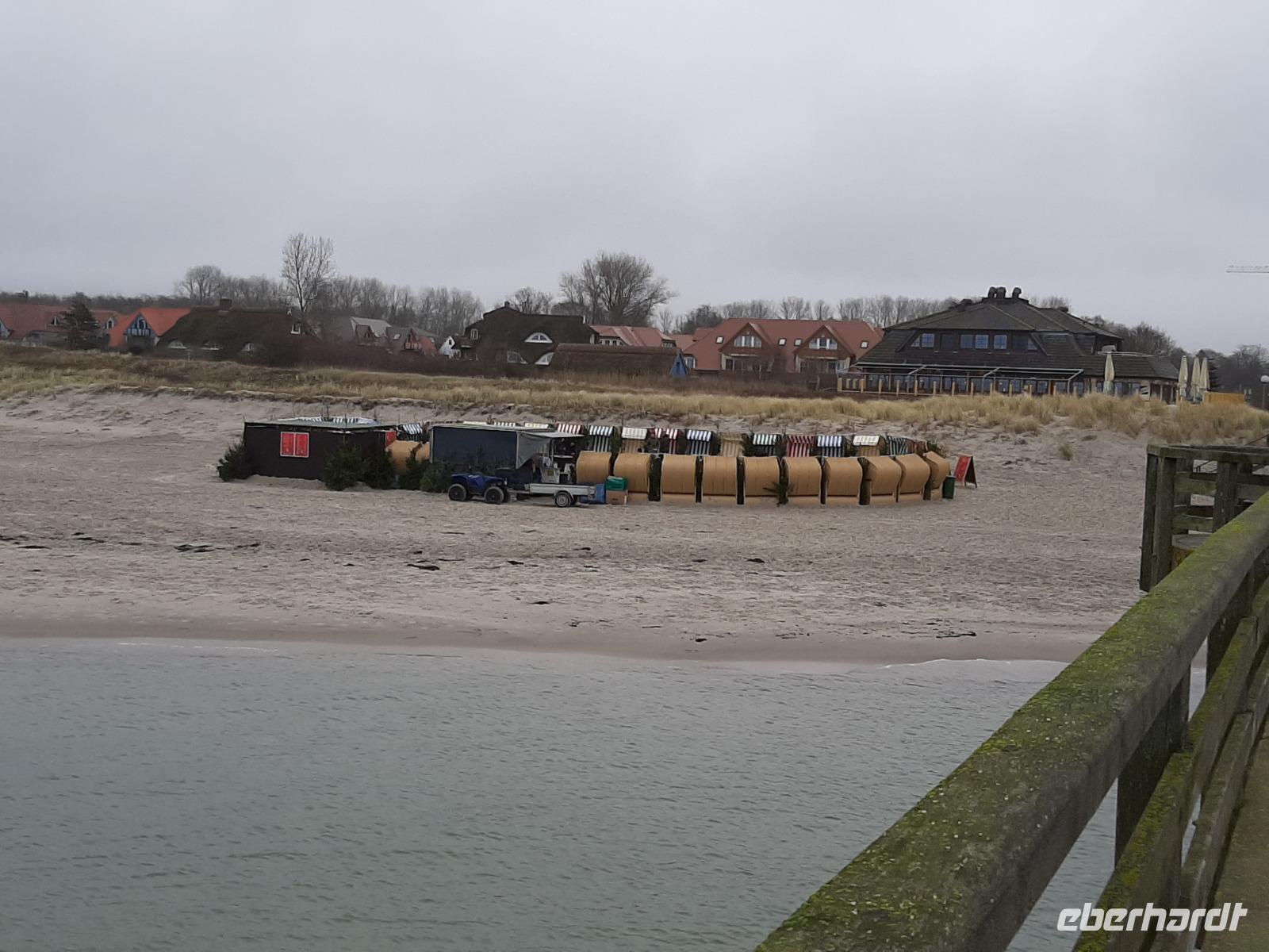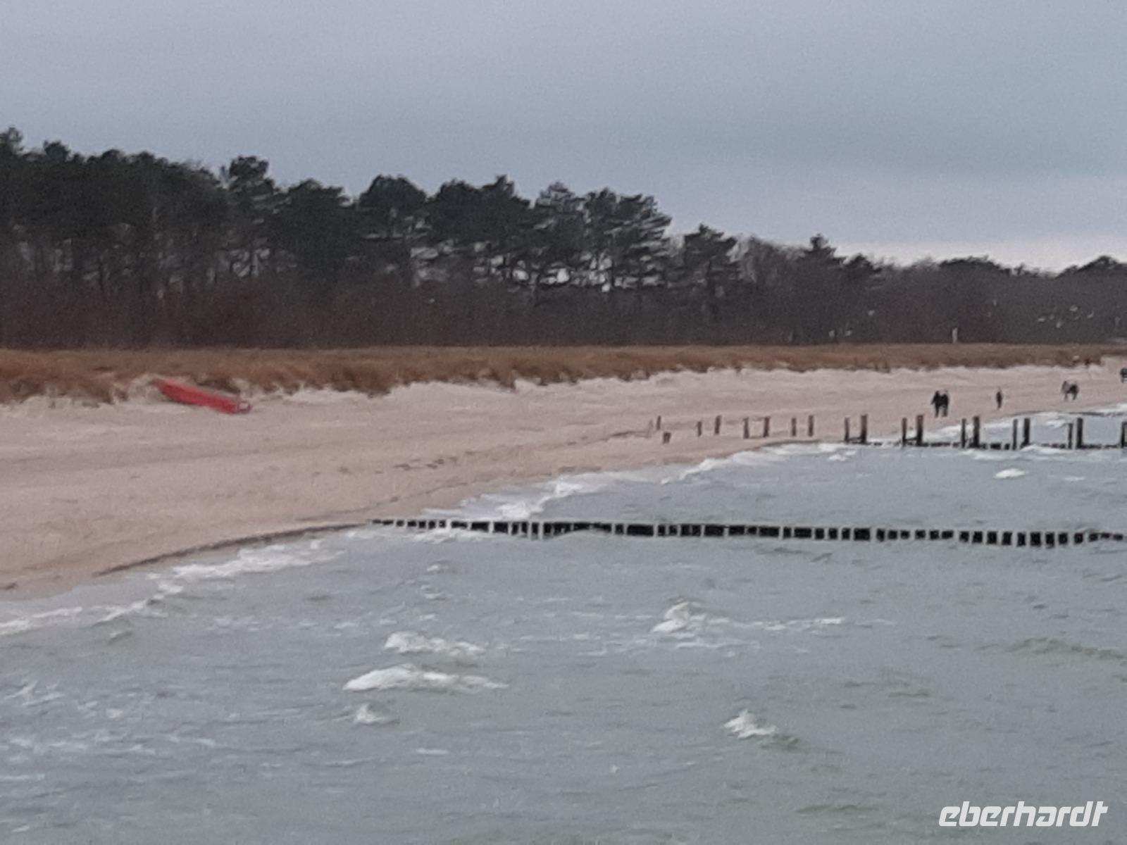 Es ist 1. Weihachtsfeiertag 2019. Guter Stimmung und gut gesättigt geht es heute gen Ostseeküste, nämlich auf die Halbinsel Fischland-Darß-Zingst. Die Halbinsel trennt Bodden und See. Wir freuen uns sehr darauf, sowohl die ruhige Boddenlandschaft sehen als auch richtige Ostseeluft schnuppern zu können. Begleitet werden wir heute von der örtlichen Reiseleiterin Birgit Blümer. Sie steigt in Altheide zu und sie kennt sich gut aus „hier oben" an der Küste. Den ersten Halt machen wir im Hafen des Ostseebads Wustrow und spazieren auf die Seebrücke. Sie führt den Besucher 240 m weit ins Meer hinaus. Vor der Seebrücke befindet sich eine Sandsteinskulptur namens "Swantewit-2000", die den vierköpfigen, mächtigen Hauptgott der Slawen repräsentiert. Einfach schön ist es, soweit übers Meer hinaus zu schlendern und dabei die frische salzhaltige Luft tief einzuatmen. An hübschen ehemaligen Kapitänshäusern vorbei fahren wir nun Richtung Ahrenshoop und untermehmen an der Steilküste entlang einen ausgiebigen Spaziergang. Kaum sattsehen kann man sich an den hübschen, häufig blau angestrichenen und reetgedeckten Häusern. Das Wetter meint es (noch) gut mit uns, windstill ist es und gar nicht kalt. Ganz entspannt spazieren wir entlang der Steiküste, vorbei an den typischen Häusern mit Blick auf die Ostsee. Mittagessen gibt es auf dem Gut Darß in Born, wo man uns einen köstlichen Bio-Rind-Gulasch mit Rotkohl und Klößen serviert. Wir fahren weiter durch Prerow, den Ort mit den bunten Haustüren, und nach Zingst. Ausgestiegen aus dem Bus spüren wir das Wetter an der Ostseeküste von ganz anderer Seite als am Vormittag - winndig, stürmisch, nass und feucht und kalt. Die fast 300 Meter lange Seebrücke lädt dennoch ein, Wind und Meer hautnah zu spüren, wenngleich der Aufenthalt auf der Brücke eher kurz ausfällt. Die Kraft der Natur zu spüren ist und bleibt eine wohltuende Erfahrung für Geist und Seele. Unsere Reise auf die Halbinsel Fischland-Darß-Zingst neigt sich ihrem Ende, als wir die Rückfahrt antreten und uns unterwags von Birgit, der örtlichen Reiseleiterin mit herzlichem Dank für den erlebnisreichen Tag samt ihren freundlich vermittelten Eindrücken zur hieisgen Landschaft und Natur sowie älterer und neuerer Geschichte und Lebensweise auf diesem Fleckchen Erde verabschieden. Da die Weihnachtsfeiertage in unserem Lande ja traditonell auch mit gutem Essen und Schlemmern überhaupt verbunden sind, lassen wir uns, obwohl wir schon das vorzügliche Mittagessen genossen haben, auch das abendliche Weihnachtsbuffet sehr munden. Und danach wird „Sport" getrieben,- keine Sorge, mehr im Sinne von leichter Bewegung und zur Unterhaltung. Eisstockschießen gleich nebenan ist angesagt, begleitet von Glühwein mit und ohne Alkohol und Knabbereien, und alles zusammen macht riesigen Spaß. Haben auch nur die wenigsten von uns jemals so einen Eisstock in der Hand gehabt und geht deshalb auch der ein oder andere Wurf daneben, - die Fanblöcke halten fest zusammen und tun ihr Bestes. Es werden Manschaften gebildet, man klügelt taktisch aus, ob man anfangen soll oder besser die andere Mannschaft, sogar werden die Ergebnisse notiert, und somit wird es ganz und gar ein Turnier, ein Eisstockschießen-Turnier. Meine Güte, welch ein Spaß das ist und so wird beschlossen, am nächsten Abend Revanche fordern.